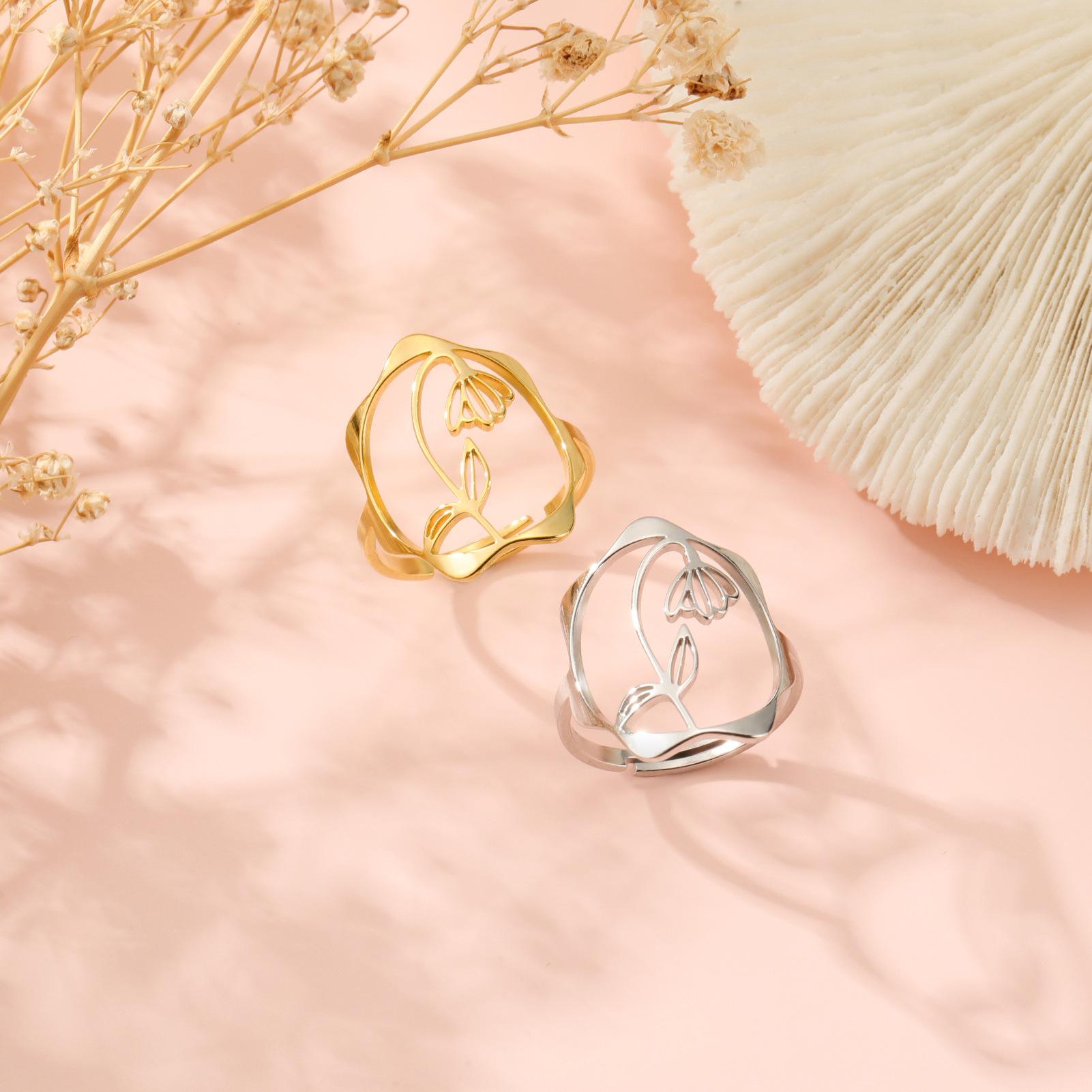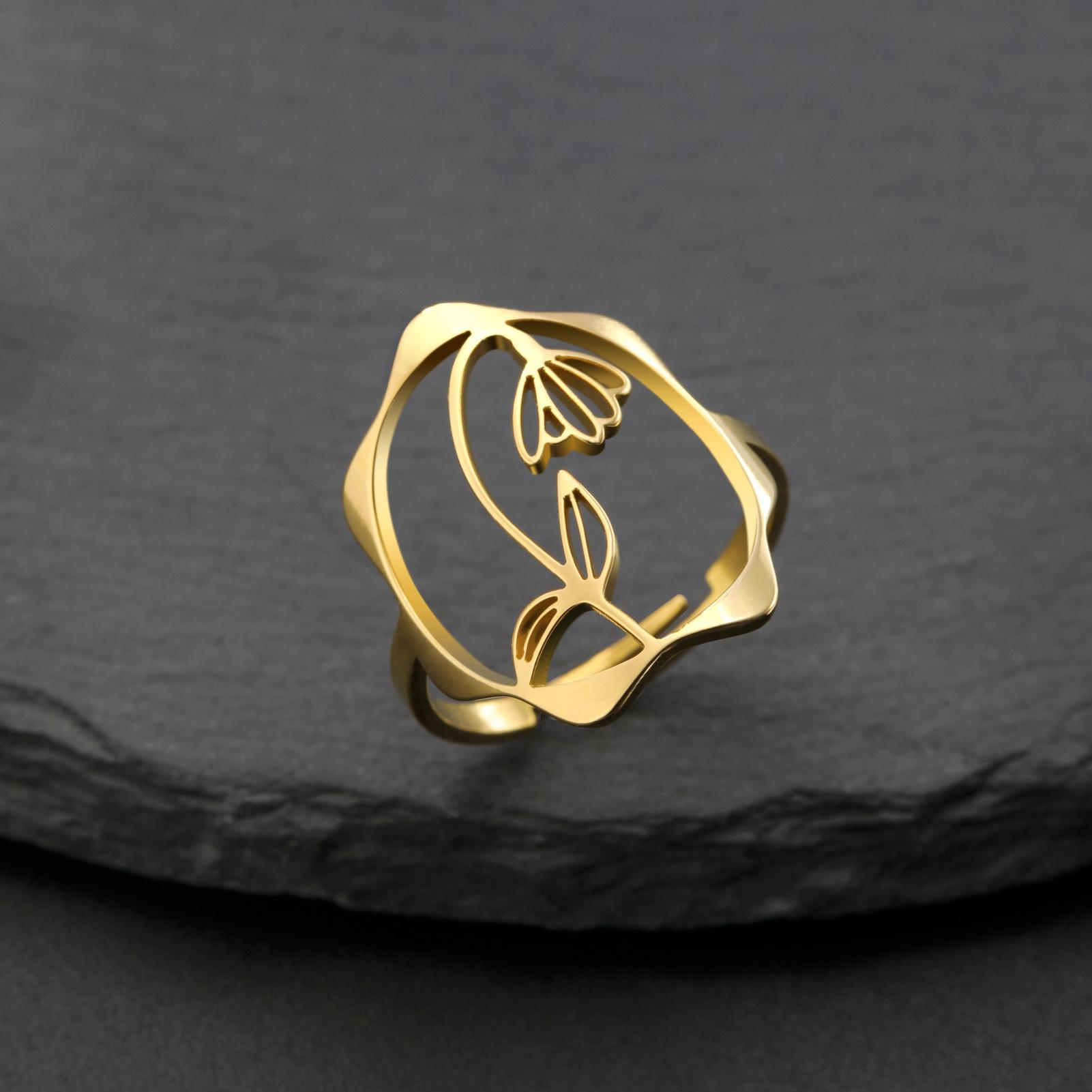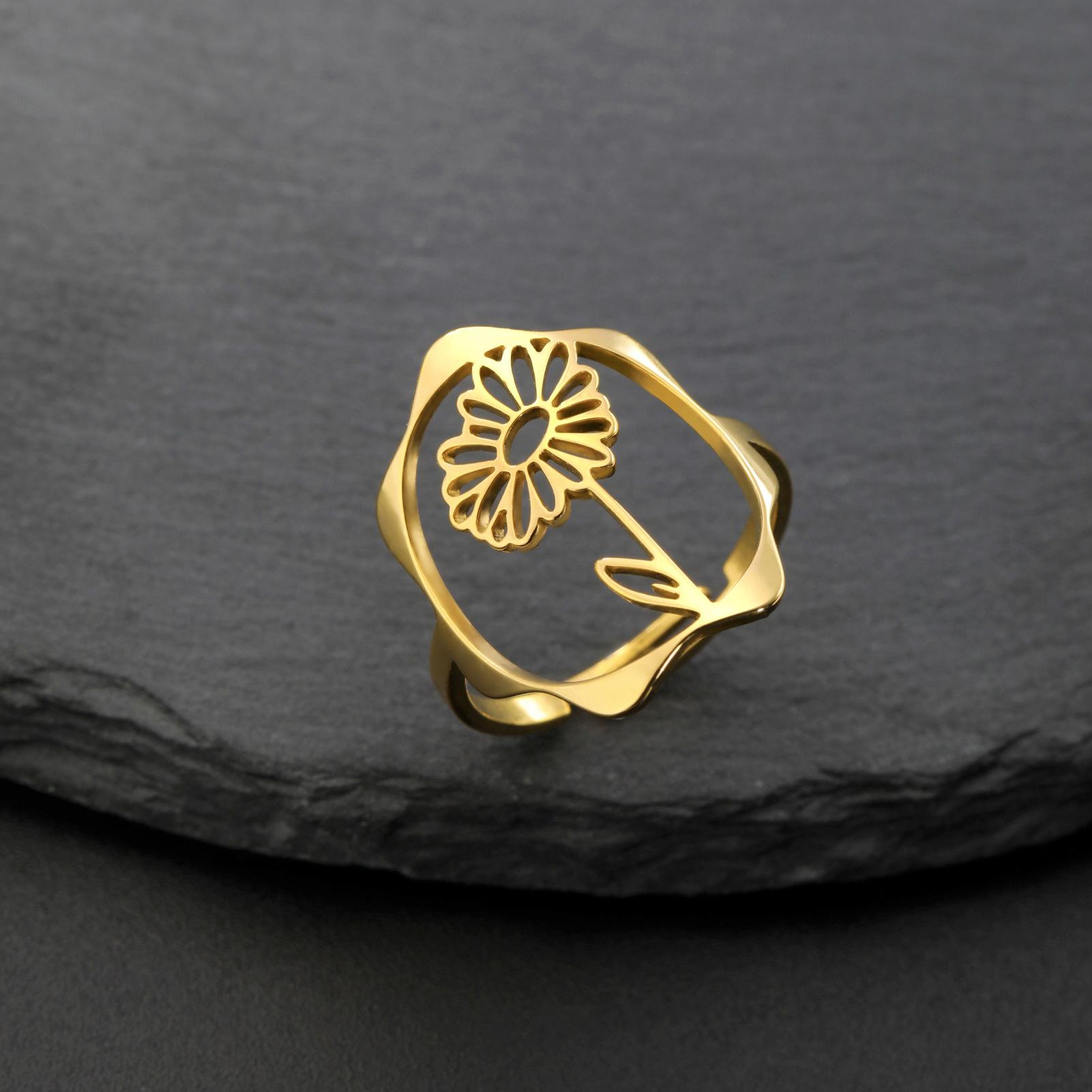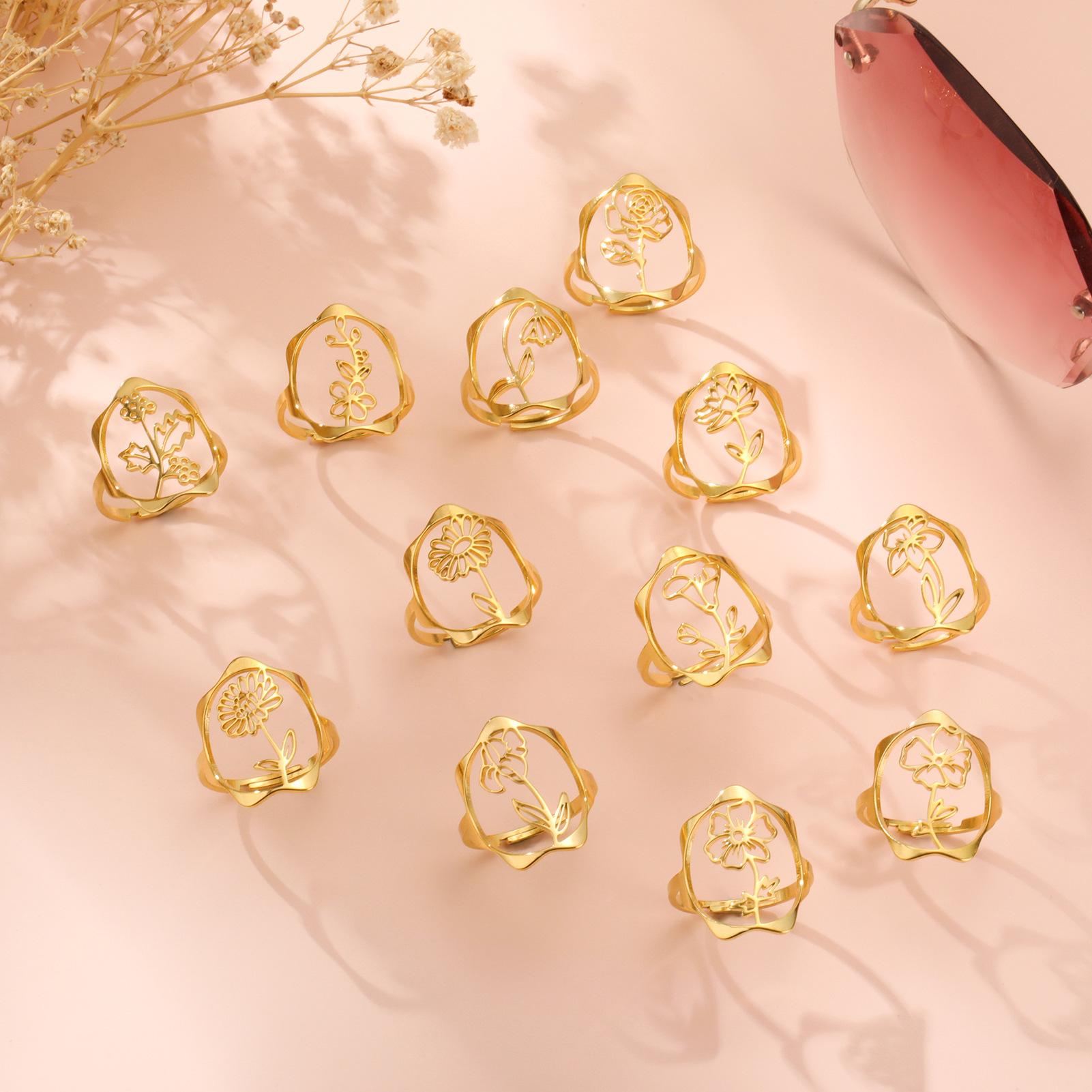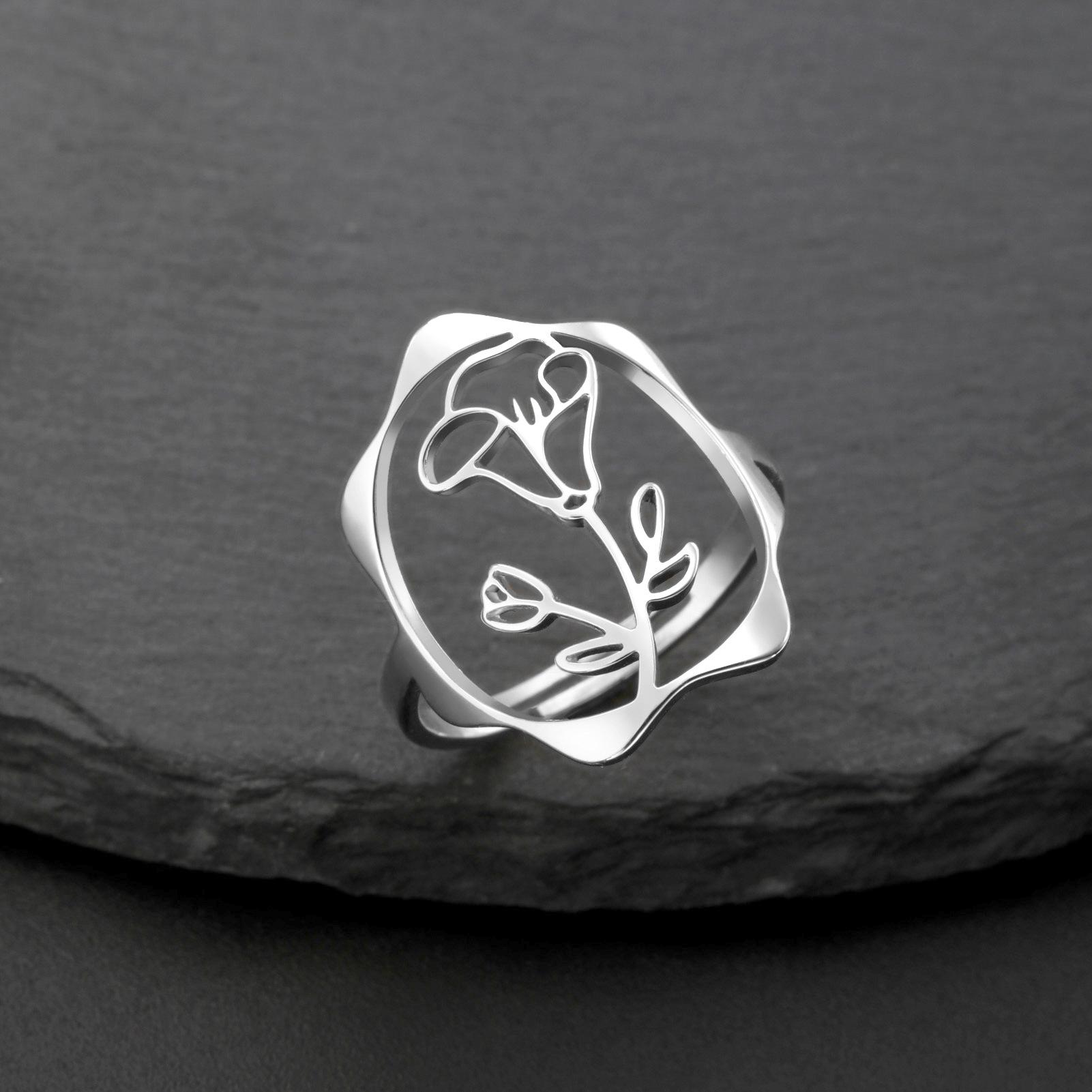 Anillo de flor joyería superventas moda simple estilo dulce acero inoxidable ajustable hueco anillo de flor de cumpleaños de diciembre