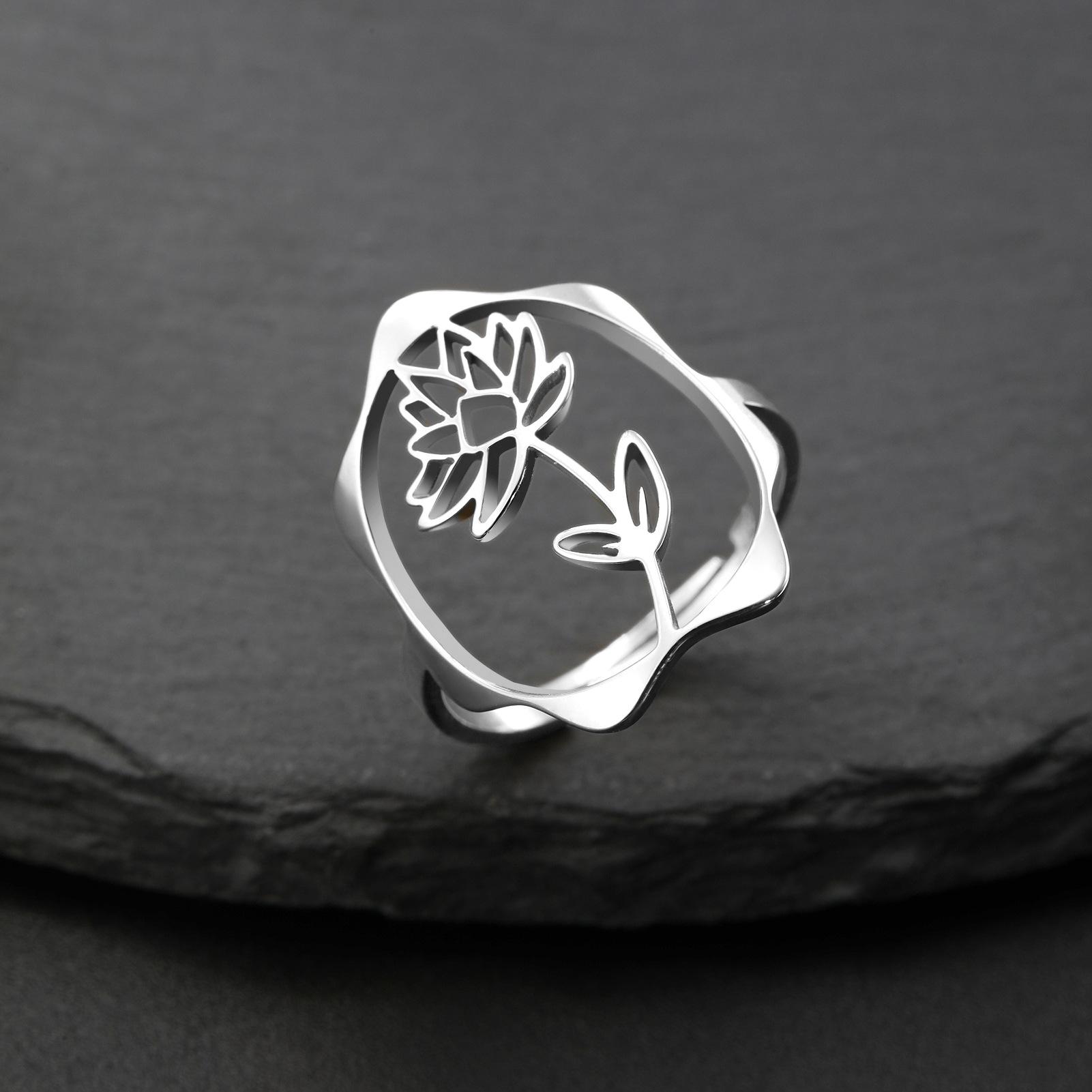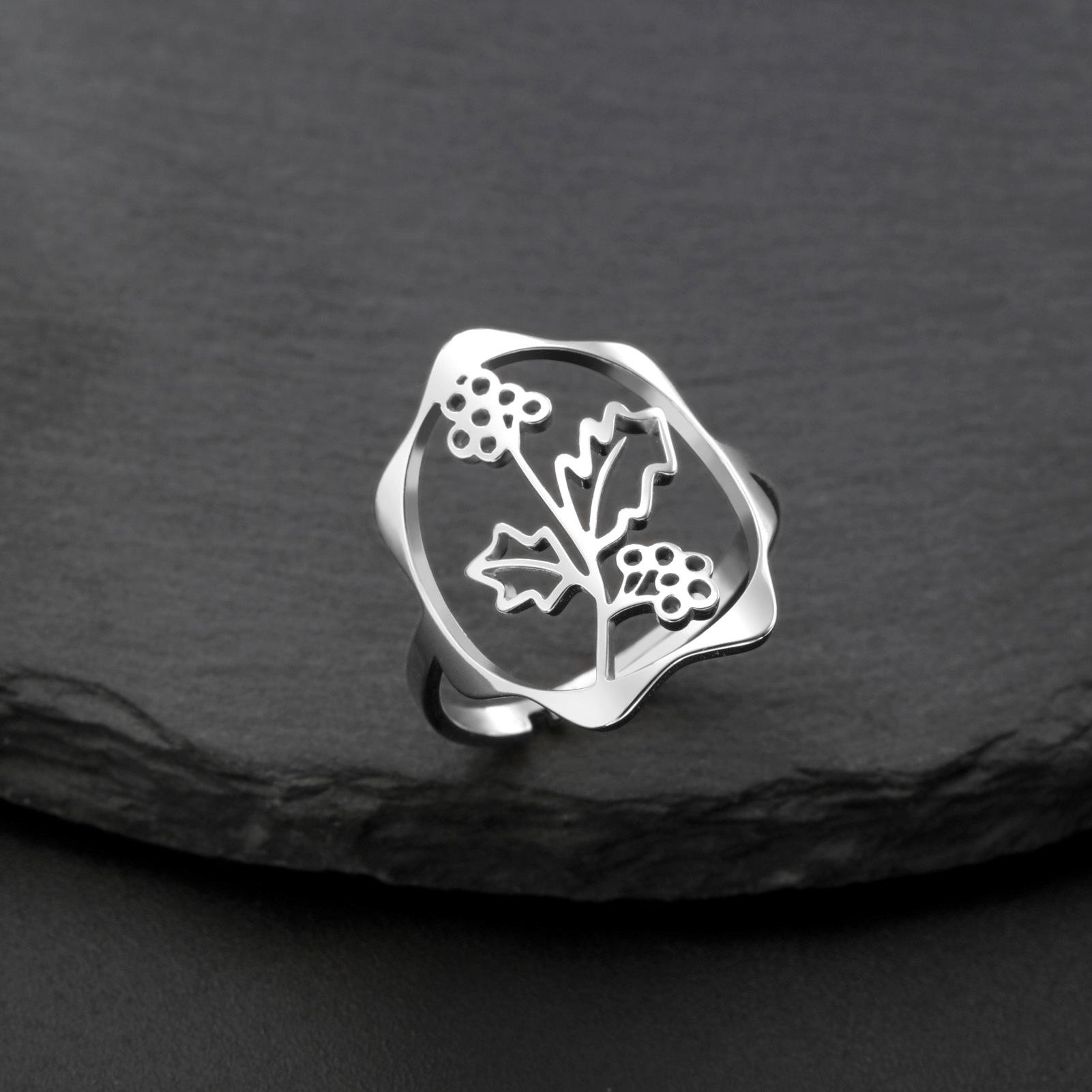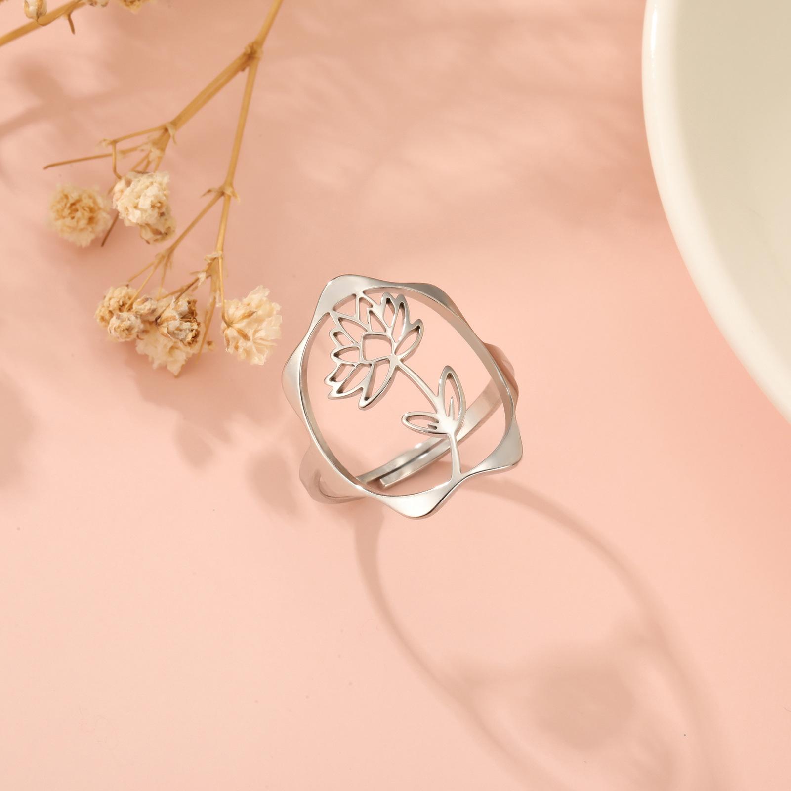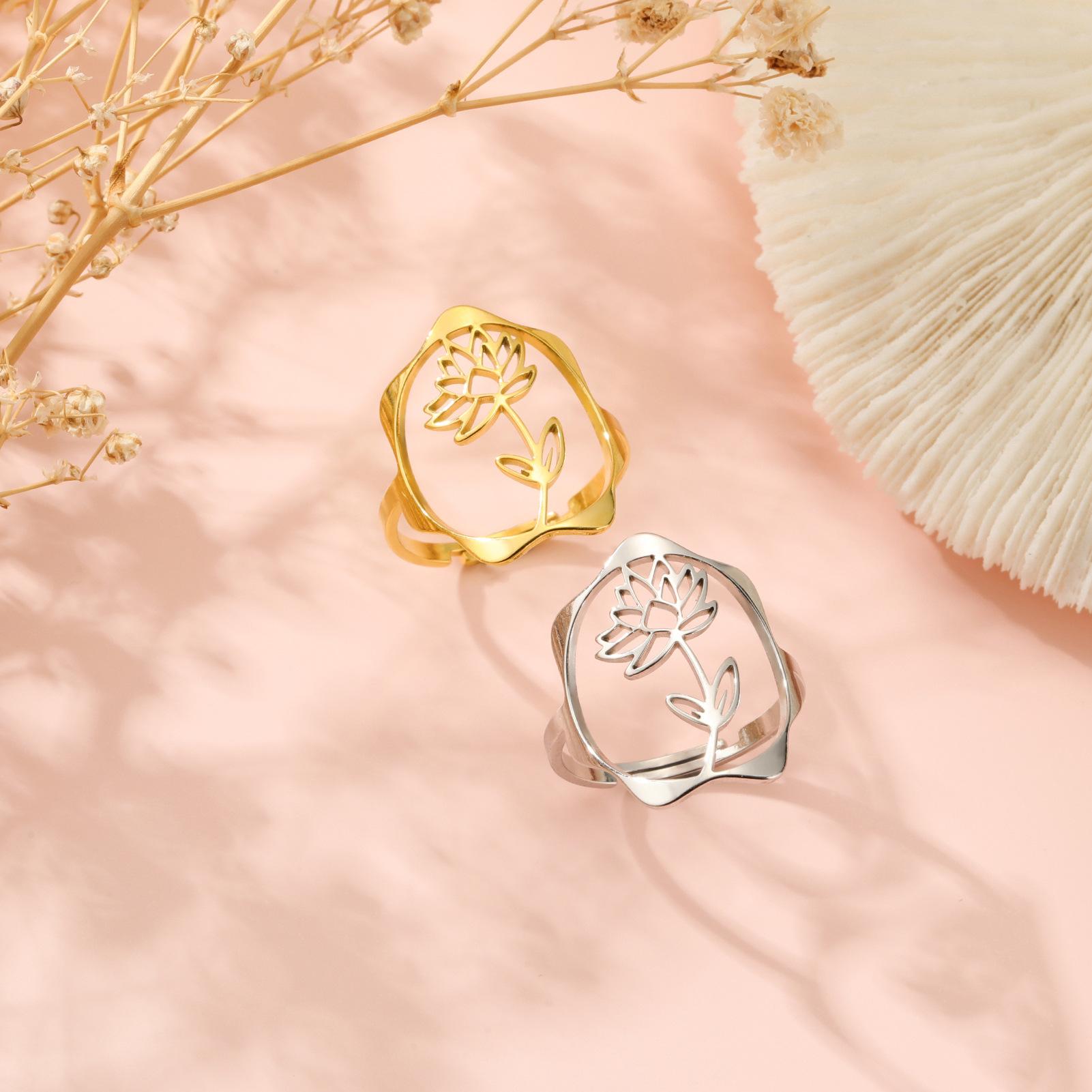 Anillo de flor joyería superventas moda simple estilo dulce acero inoxidable ajustable hueco anillo de flor de cumpleaños de diciembre