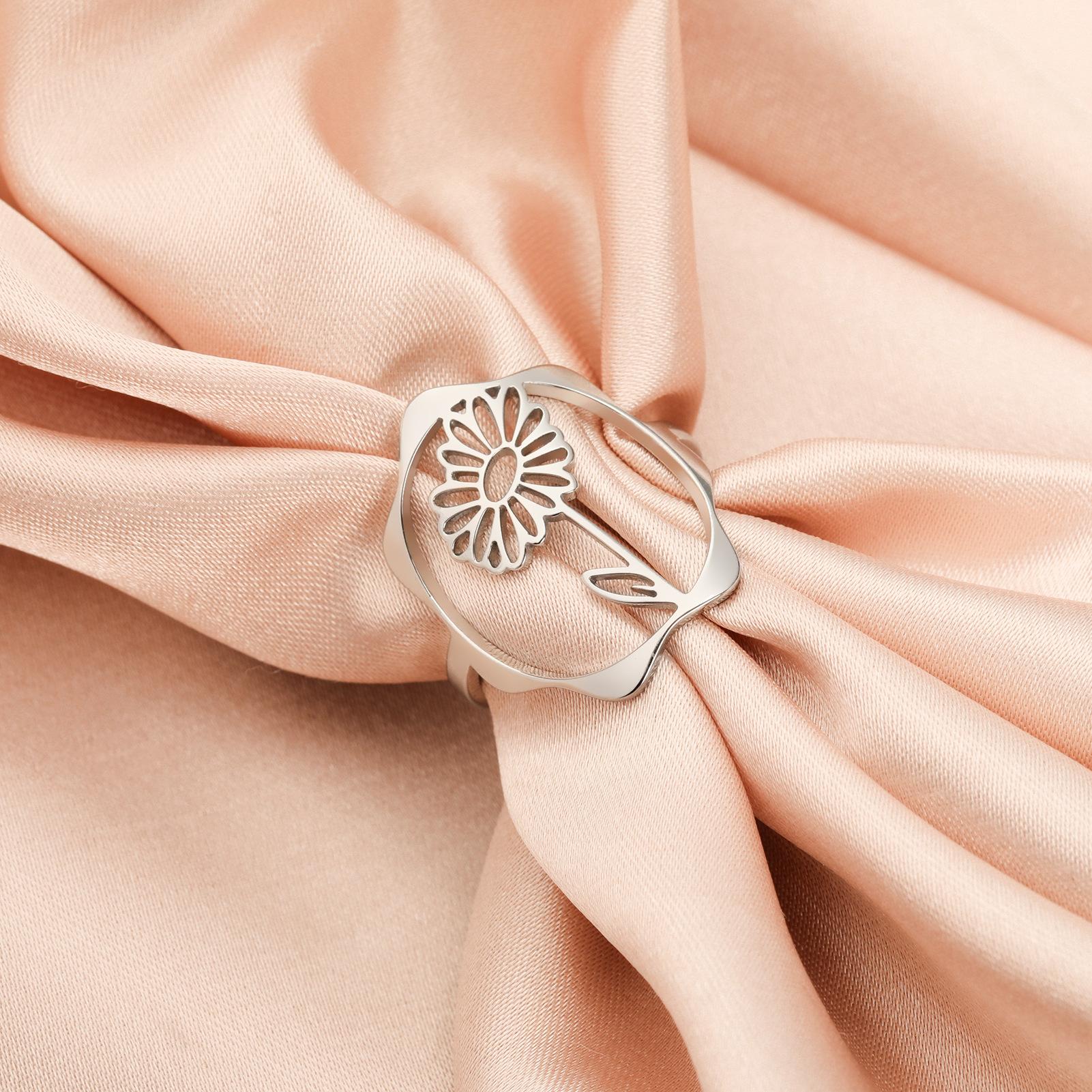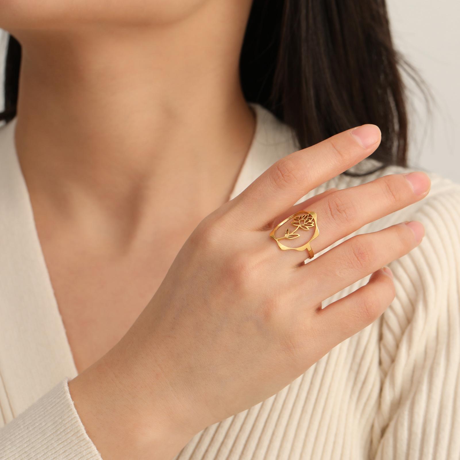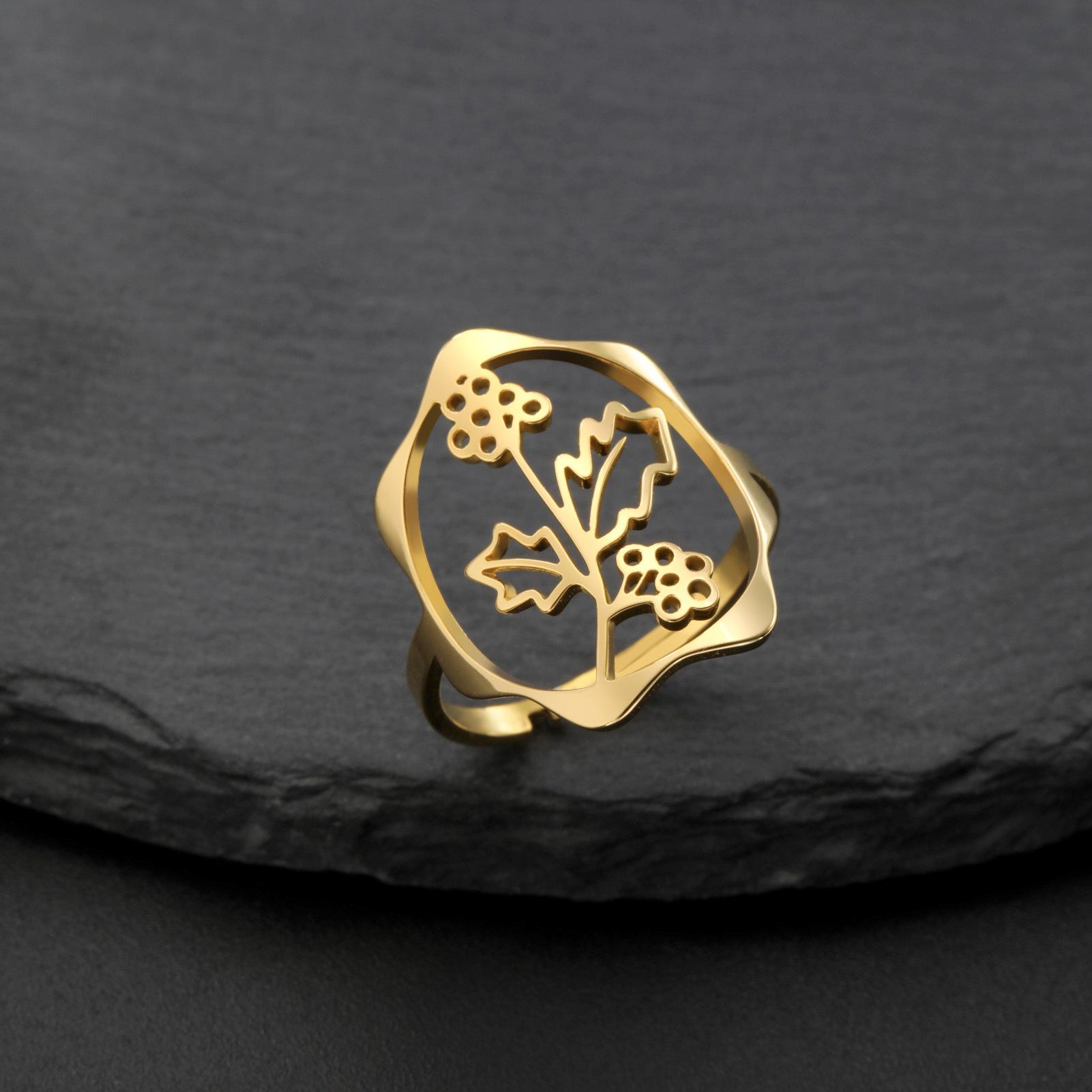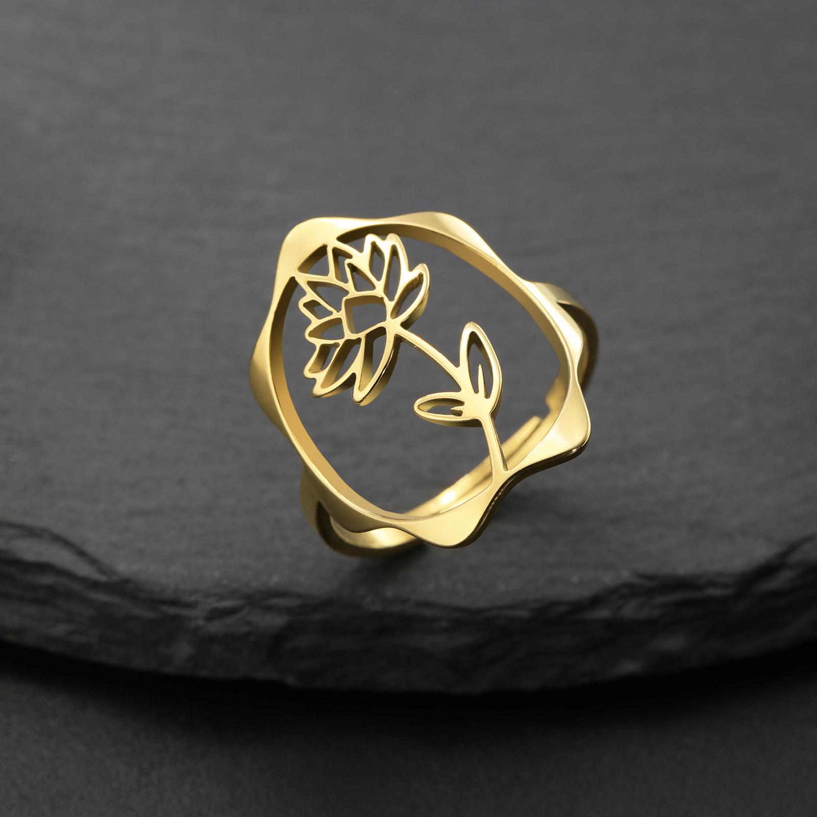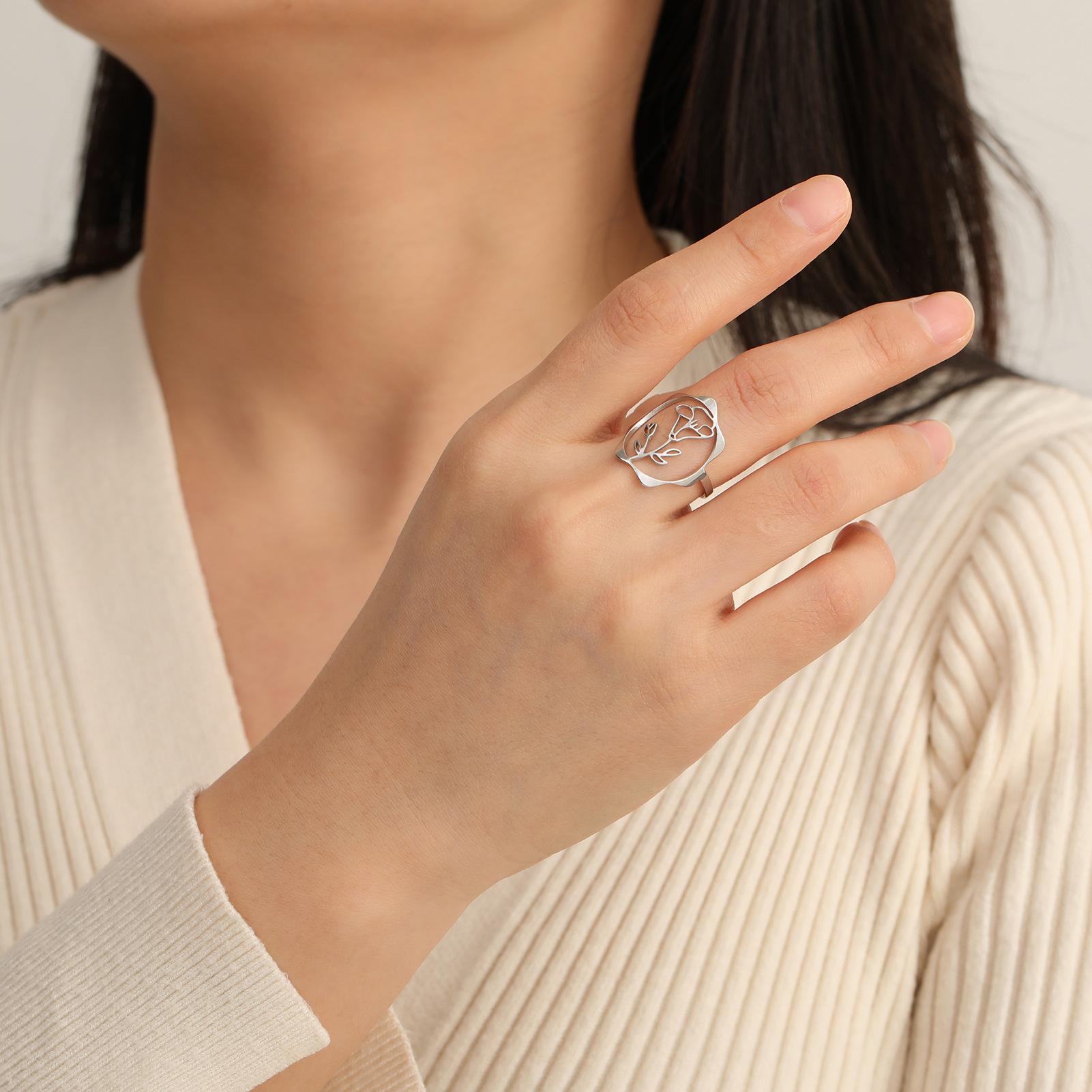 Anillo de flor joyería superventas moda simple estilo dulce acero inoxidable ajustable hueco anillo de flor de cumpleaños de diciembre