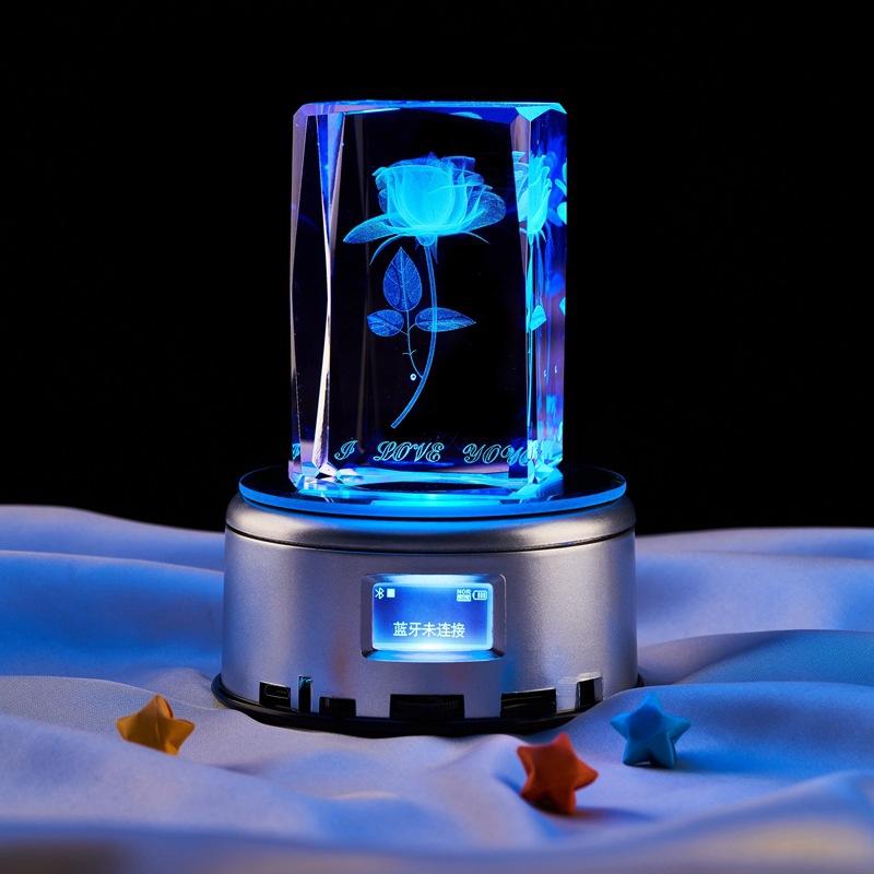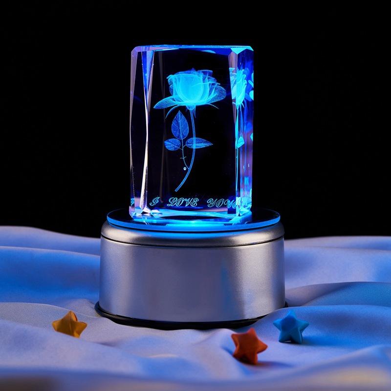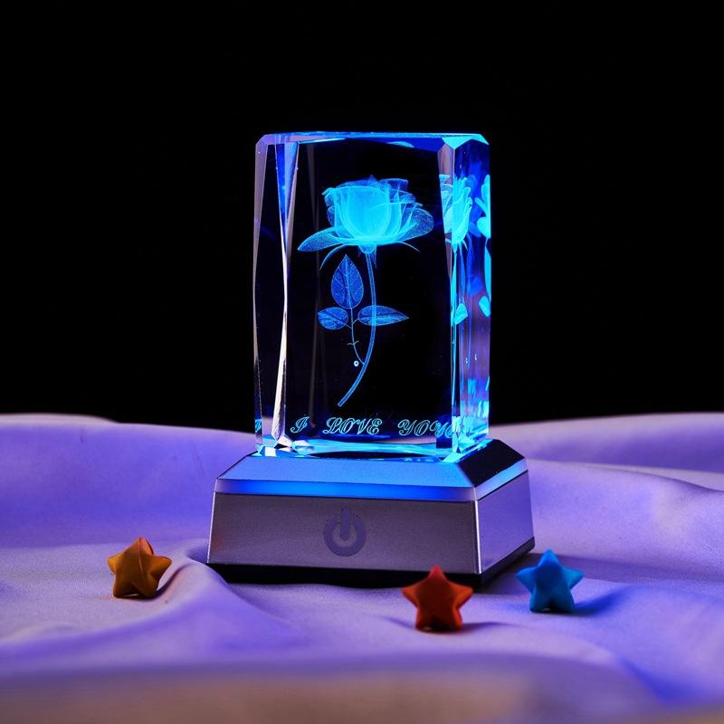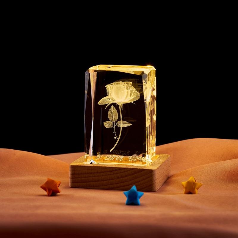 Cubo de cristal con grabado láser tridimensional 3D de rosa al por mayor transfronterizo, luz nocturna luminosa de ambiente romántico