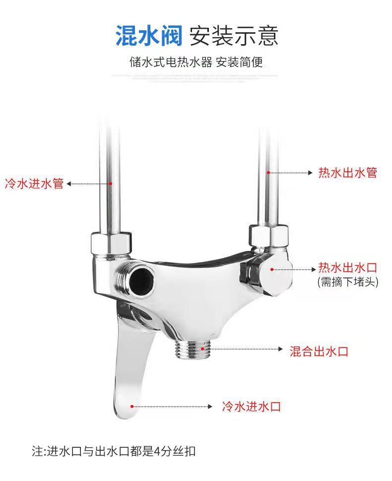 Calentador de agua eléctrico con válvula mezcladora en forma de U, grifo de ducha de cobre puro de montaje abierto, accesorios para ducha de baño Daquan