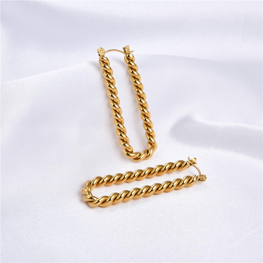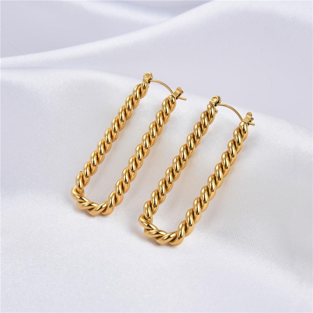 Pendientes populares estilo europeo y americano retorcidos chapados en oro de 18 quilates twist acero inoxidable acero titanio pendientes de dama