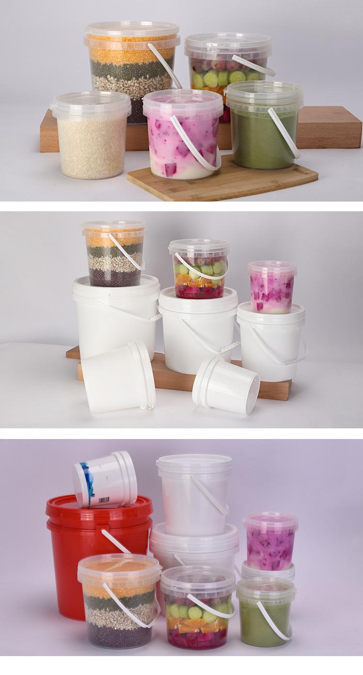 Cubo de hielo transparente portátil multifuncional con tapa de 0,3 L a 5 L, cubo para leche, té, fruta, cubo de plástico, cubo redondo pequeño