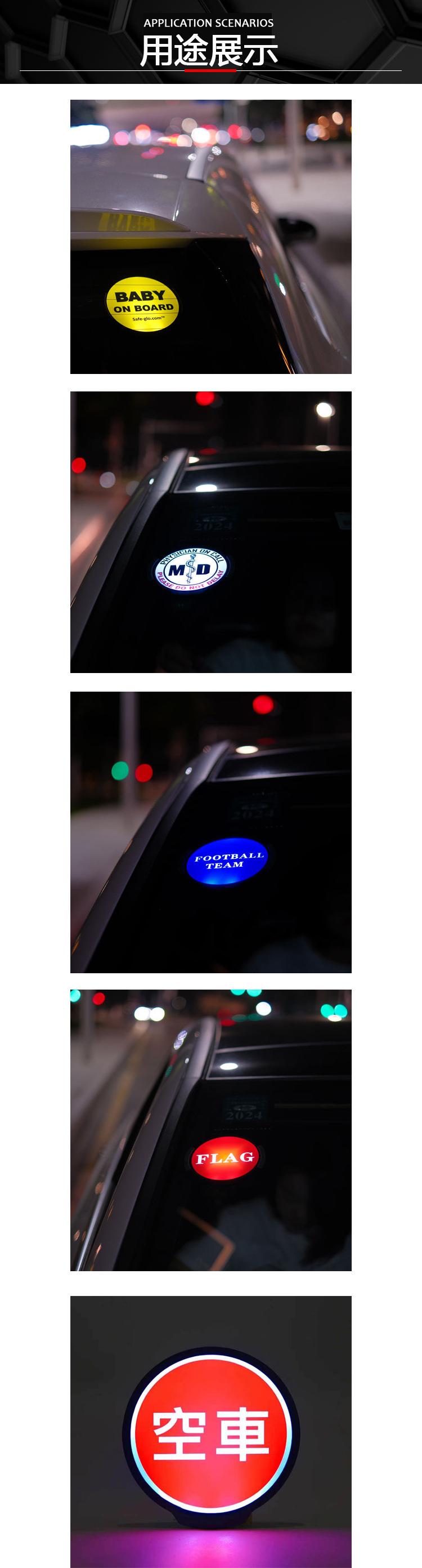 Esta es una calcomanía luminosa para coche con logotipo que se puede fabricar especialmente para equipos, eventos, grupos, etc., diseñada para proporcionar un efecto de exhibición único y personalizado para su vehículo. Utilizamos materiales de alta calidad y tecnología LED avanzada para garantizar la durabilidad y el efecto de exhibición del producto. Ya sea para uso comercial o decoración personal, nuestras calcomanías luminosas LED para coche pueden satisfacer sus necesidades.