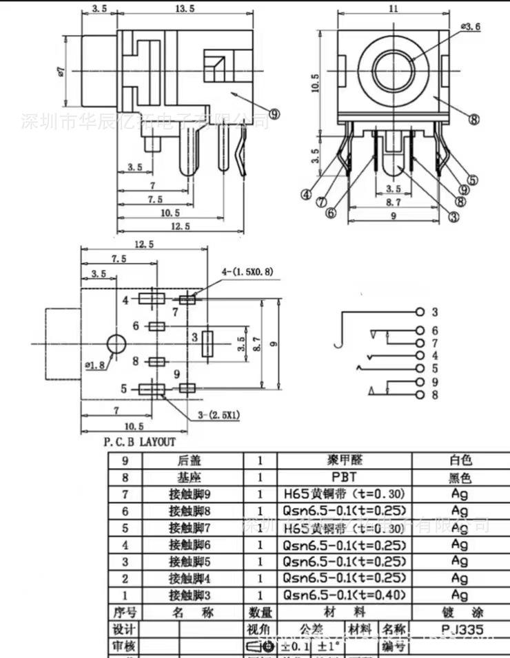 Conector de interfaz de audio para computadora de 3,5 mm, de canal simple y doble, PJ-335, con pin estéreo y boca redonda.