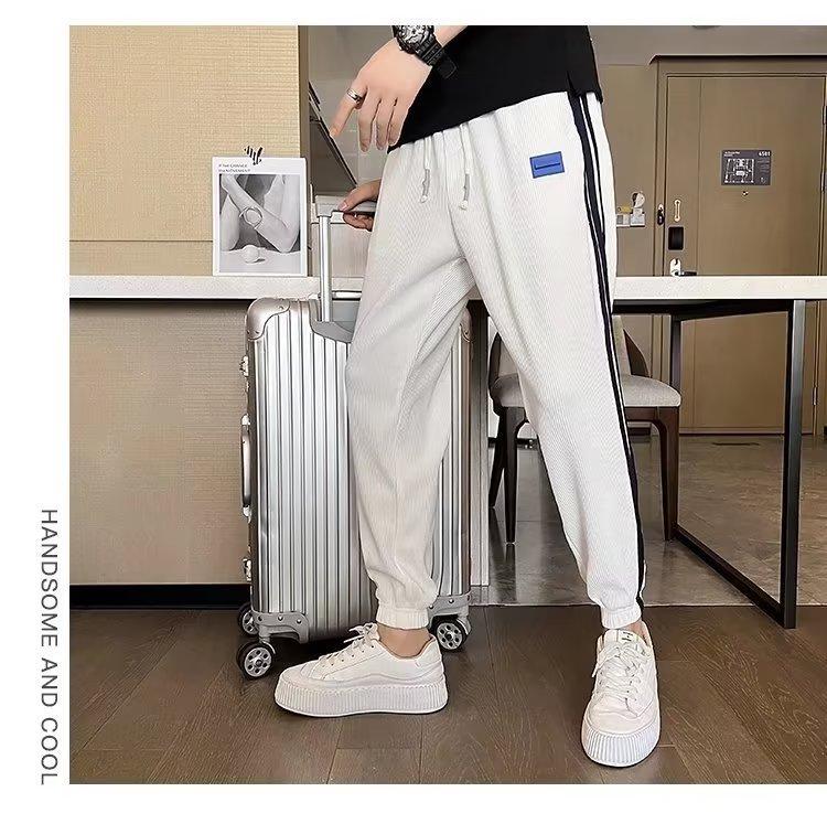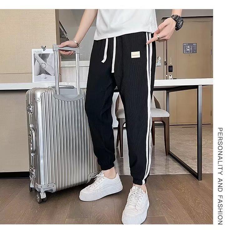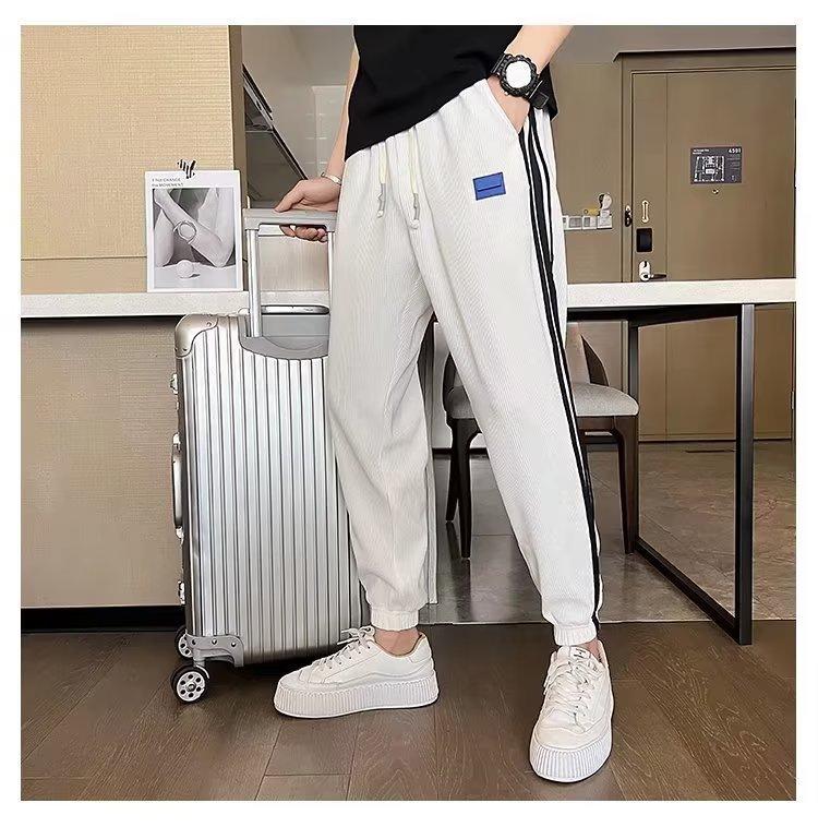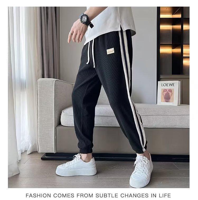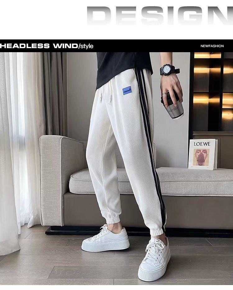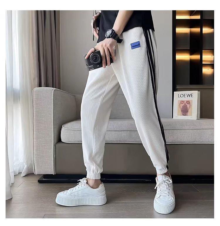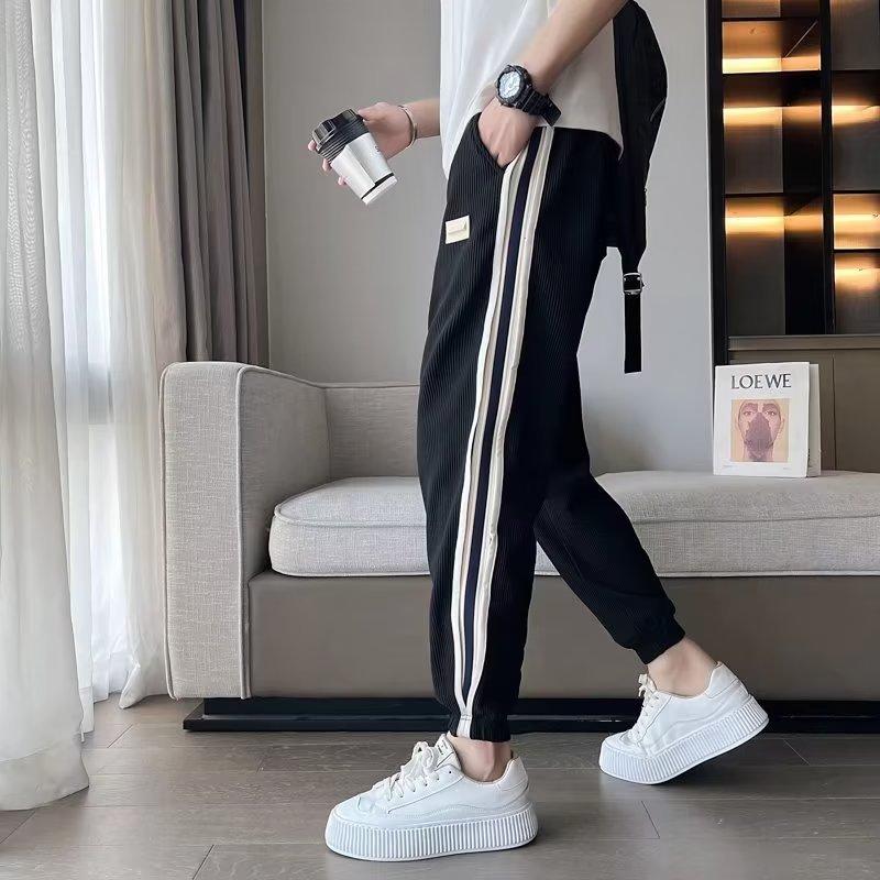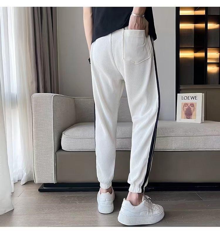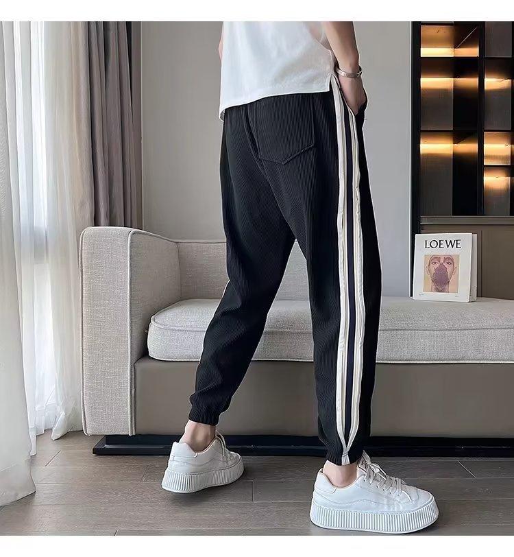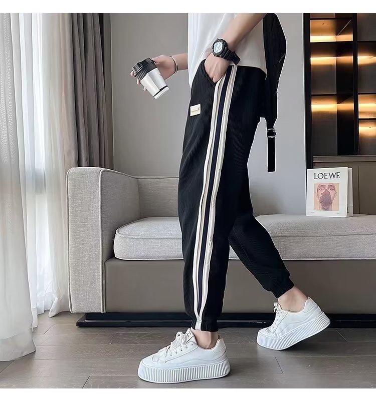 Pantalones casuales a rayas para hombre, pantalones de otoño finos de moda coreana, pantalones holgados de pierna ancha y recta para la calle.