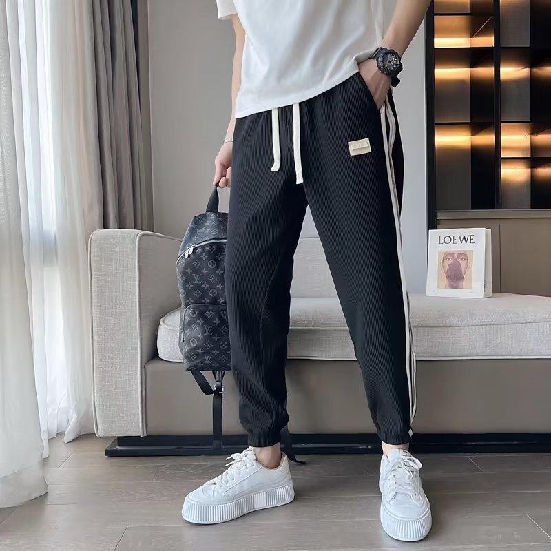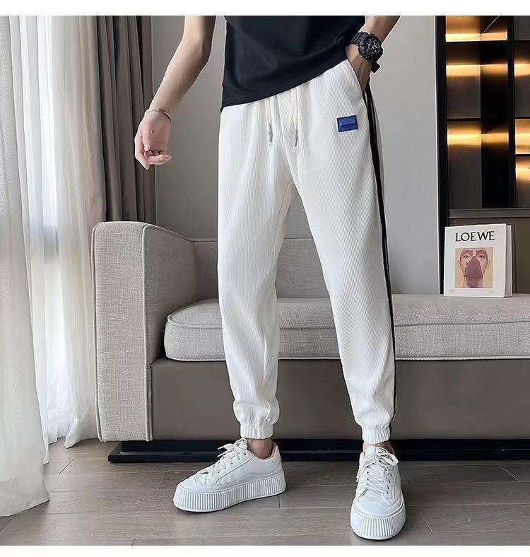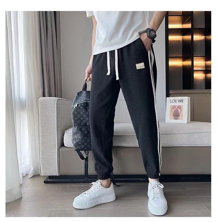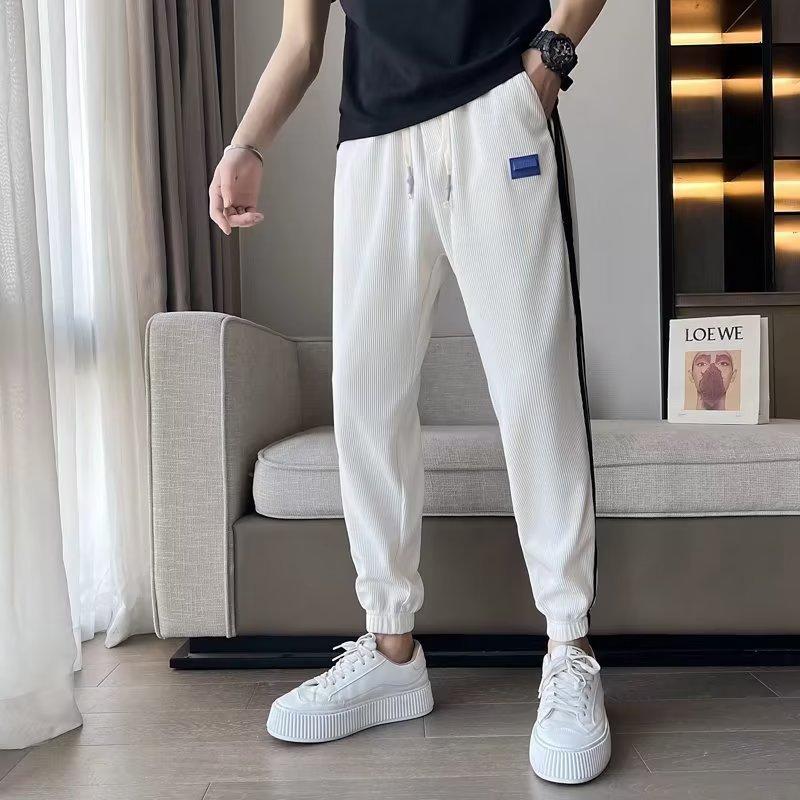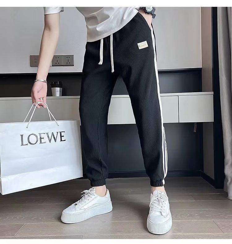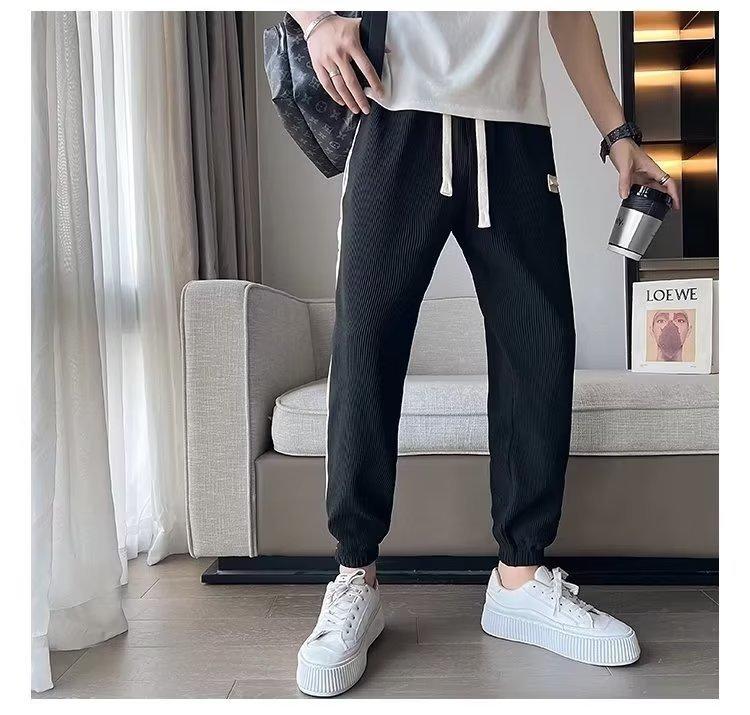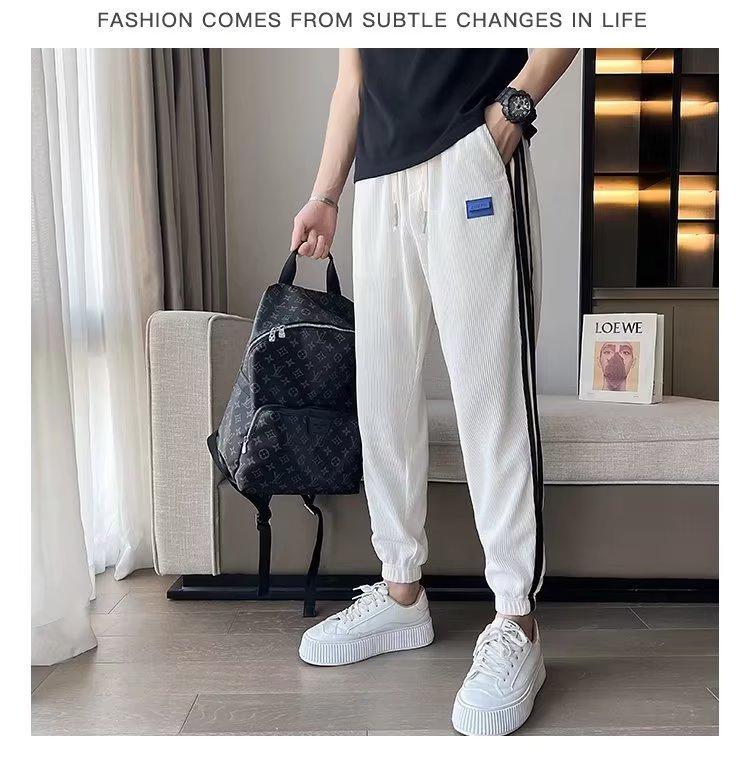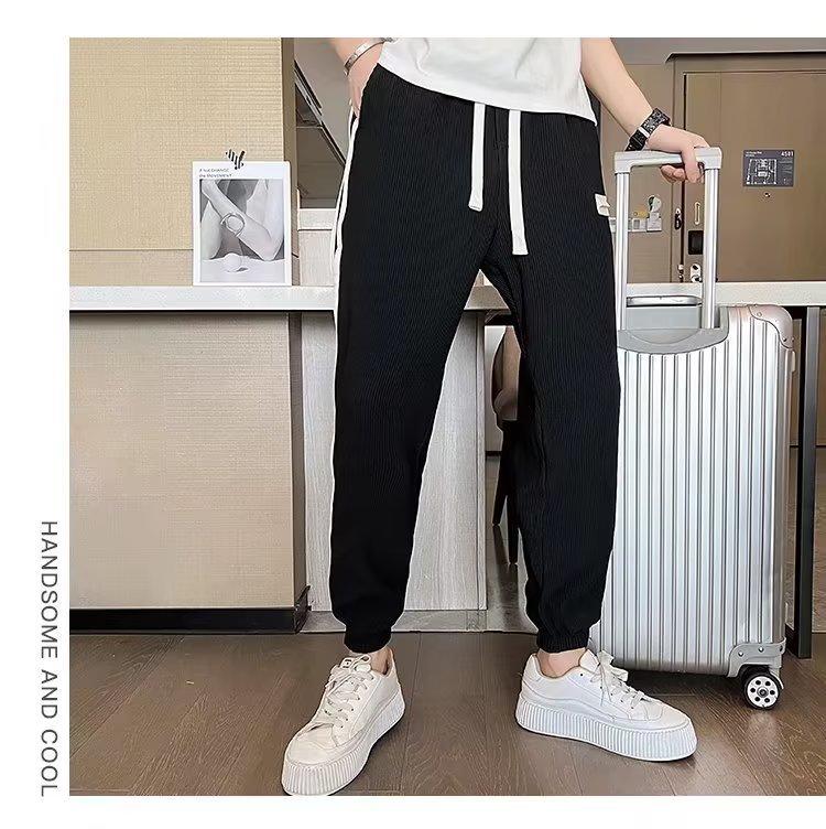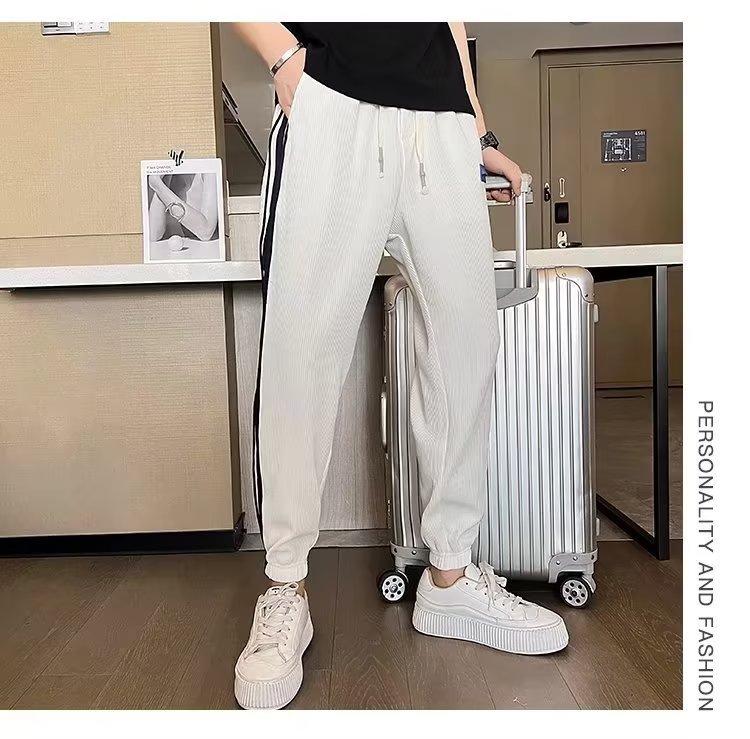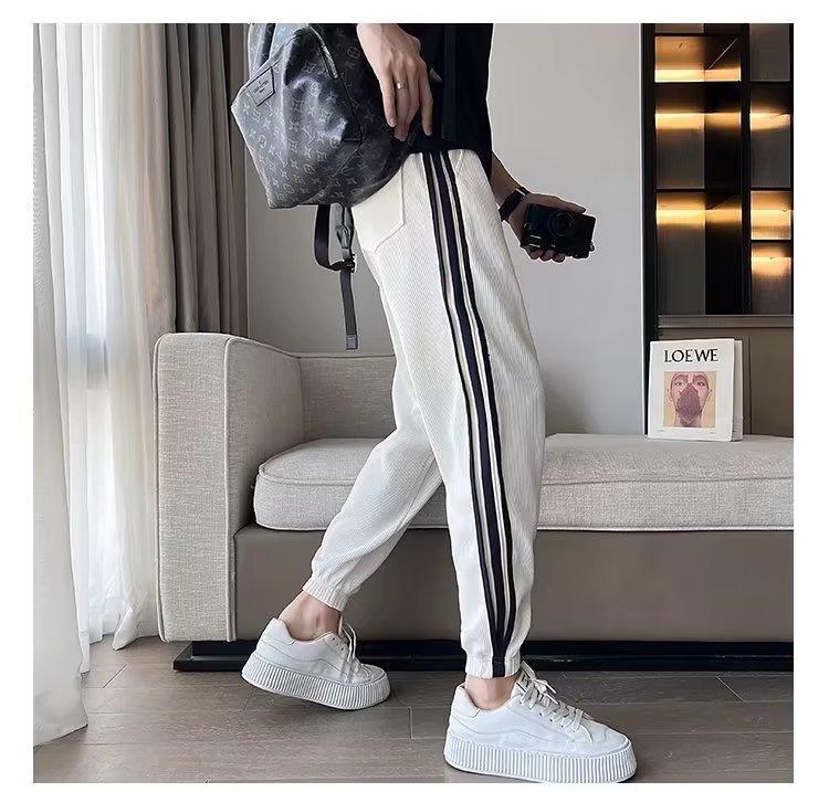 Pantalones casuales a rayas para hombre, pantalones de otoño finos de moda coreana, pantalones holgados de pierna ancha y recta para la calle.