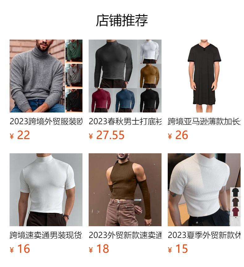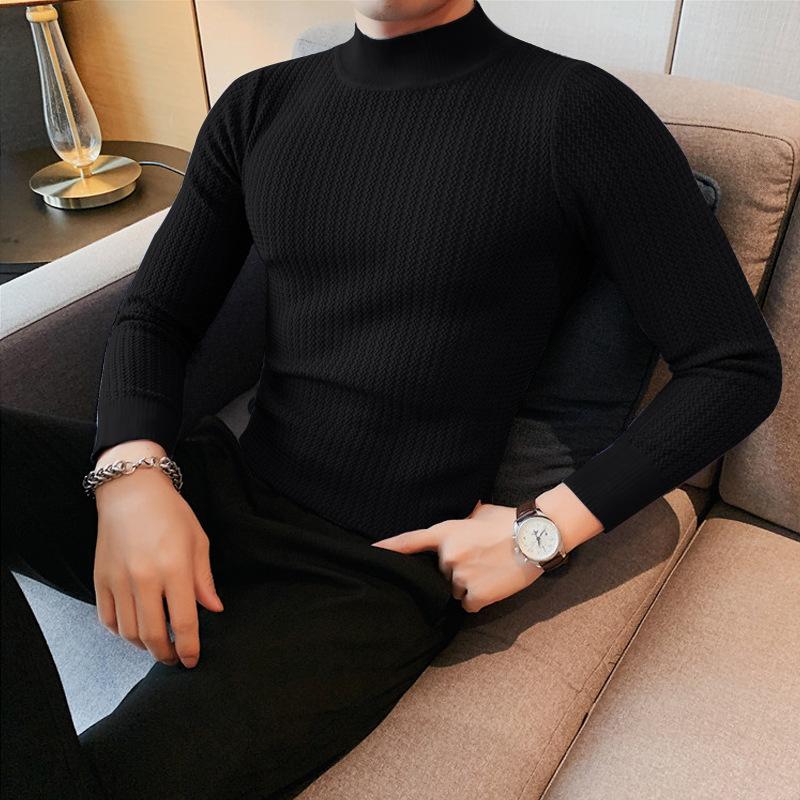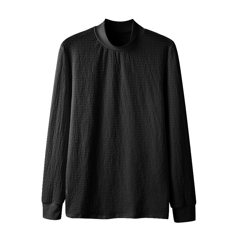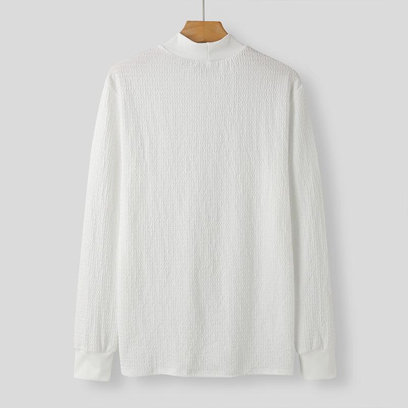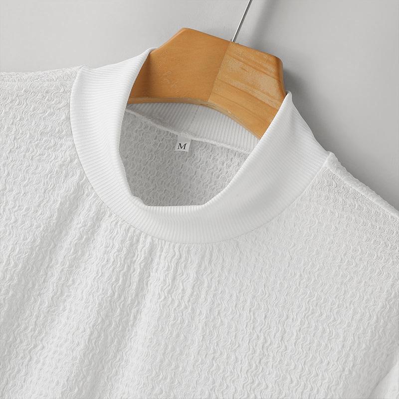 Otoño 2026 Nuevo Comercio Exterior Casual Simple Camiseta Básica de Punto Estilo Coreano para Hombre Cuello Alto Color Sólido Textura de Onda Camiseta