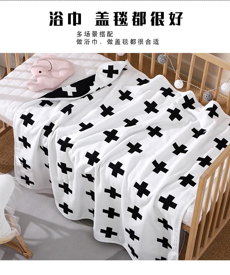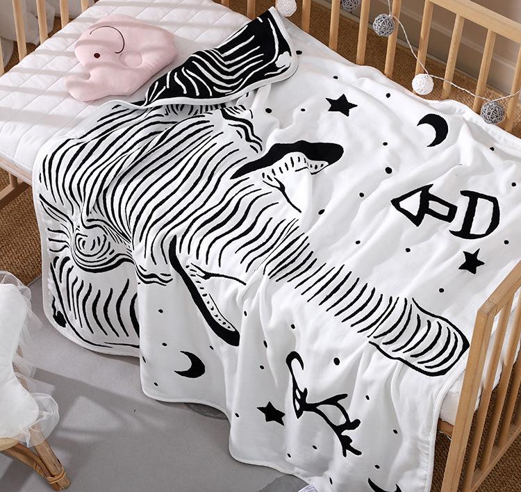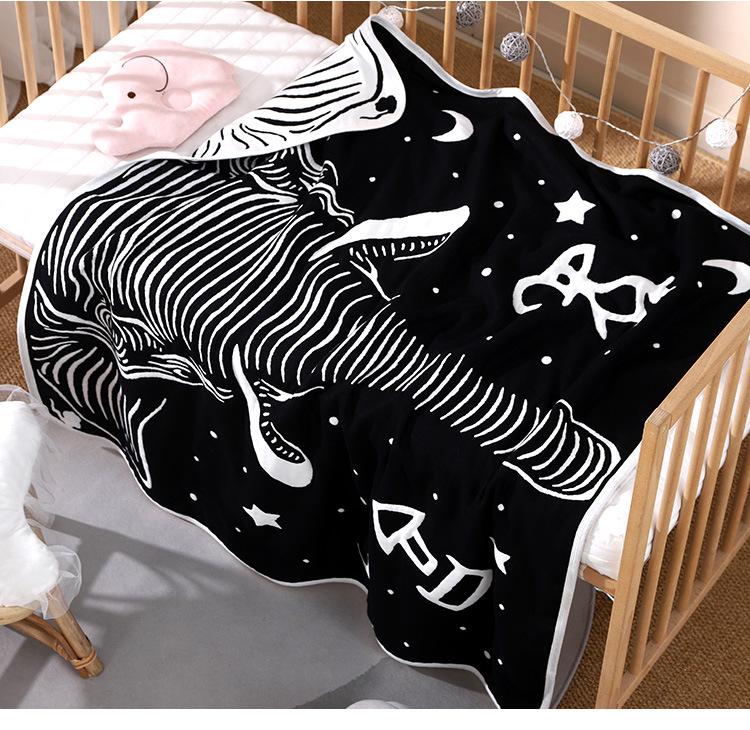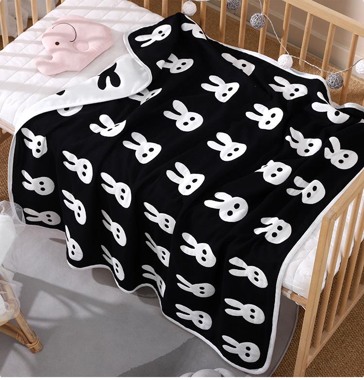 Manta de siesta para niños en blanco y negro en liquidación, manta de gasa de seis capas de algodón para bebé, toalla de baño para bebé, sábana de algodón