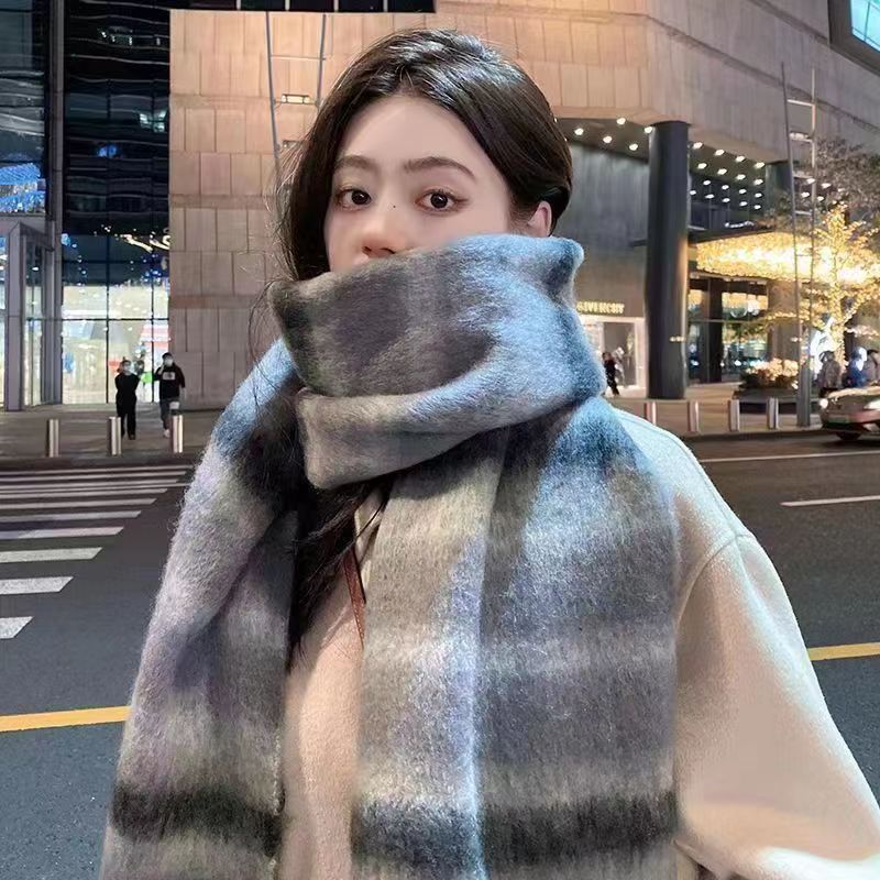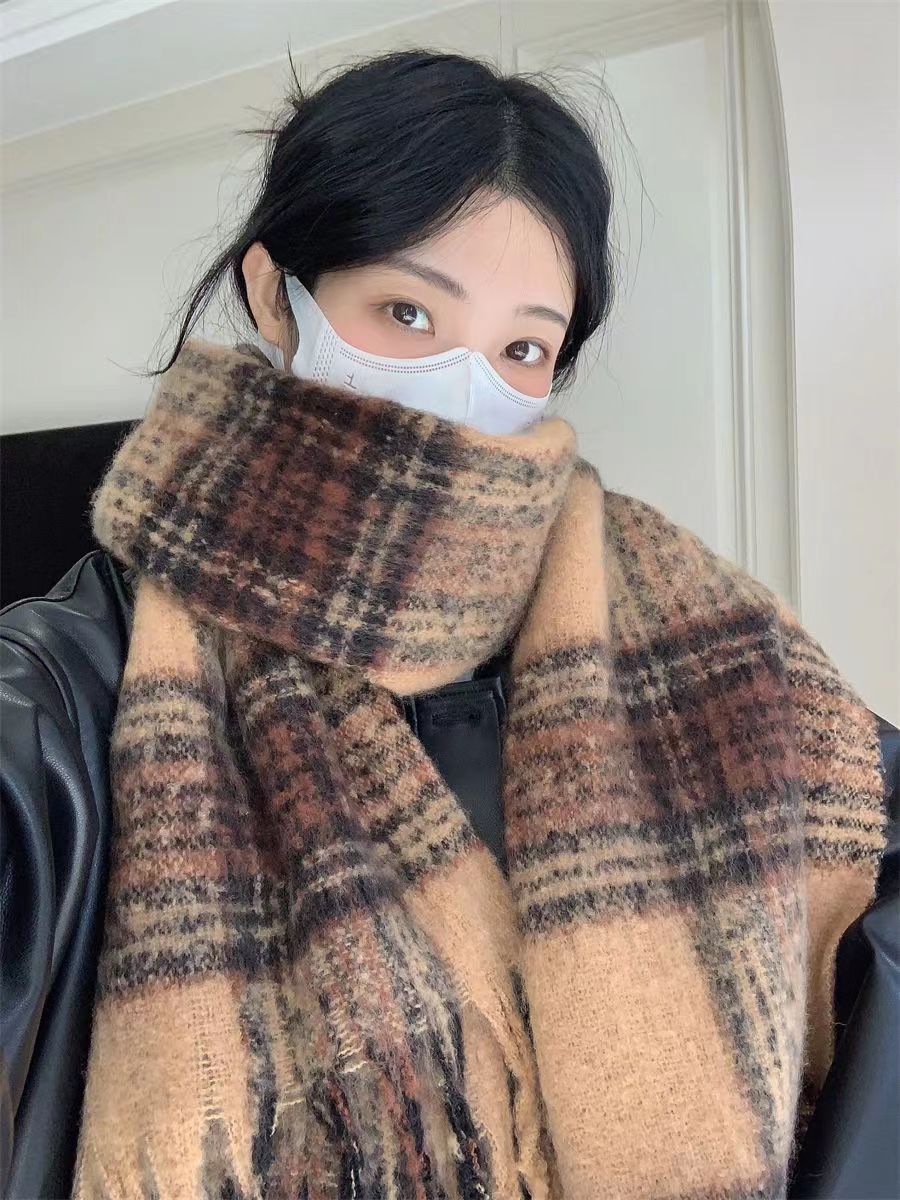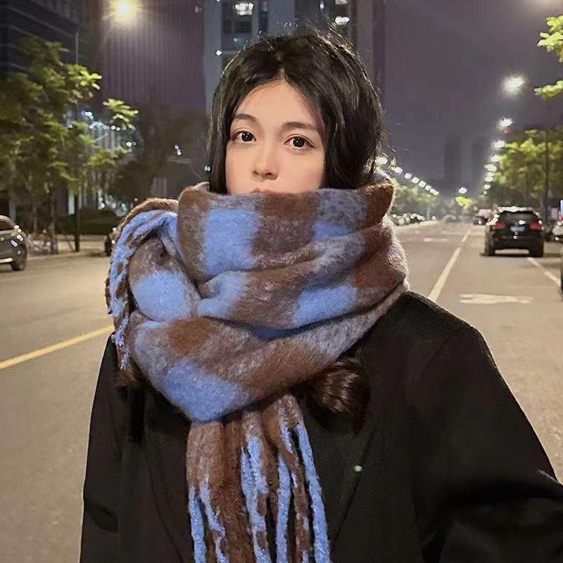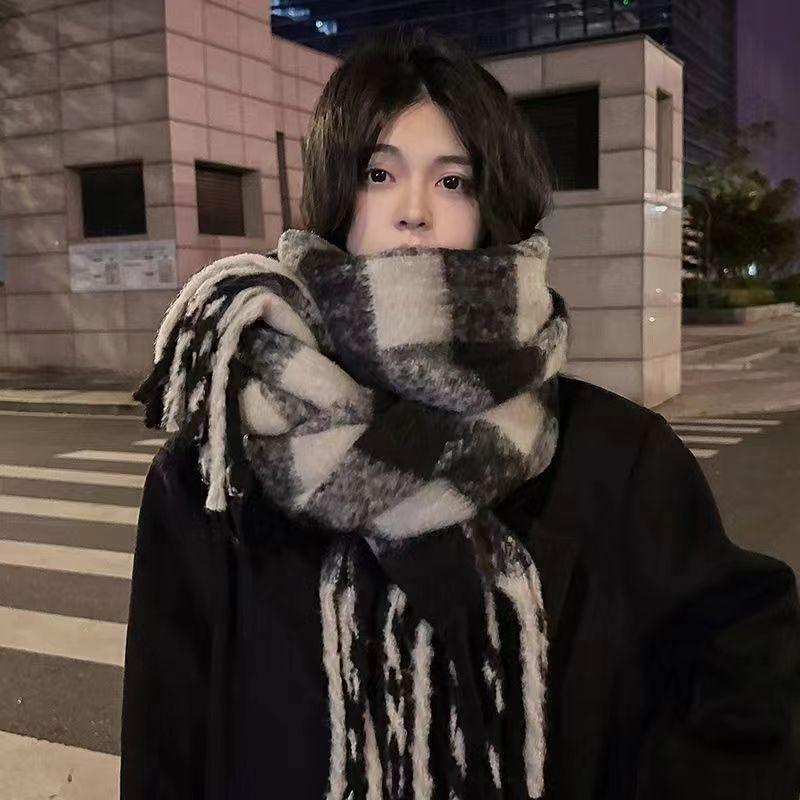 Bufanda a cuadros blancos y negros gruesa de alta calidad para mujer invierno pareja estilo coreano bufanda otoño e invierno 2023 Nuevo