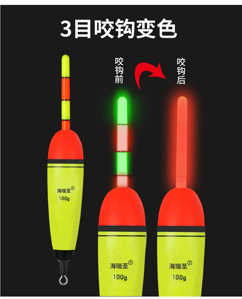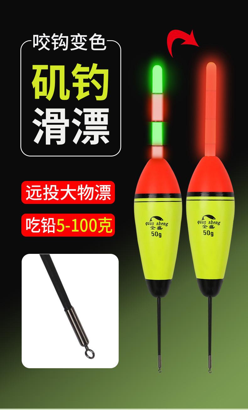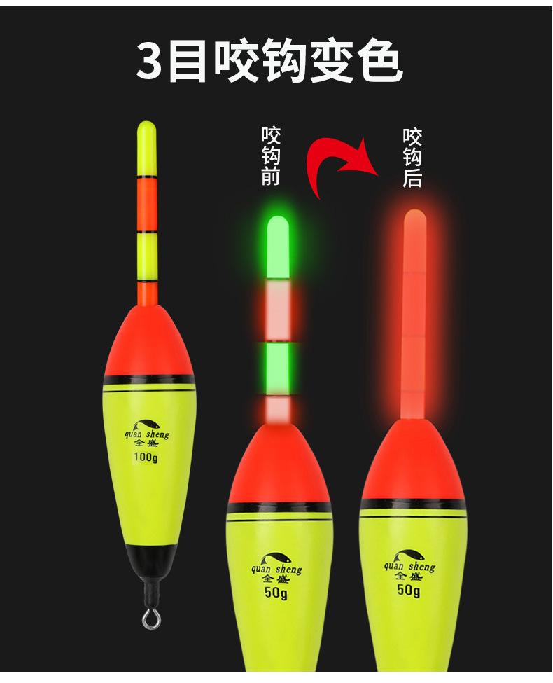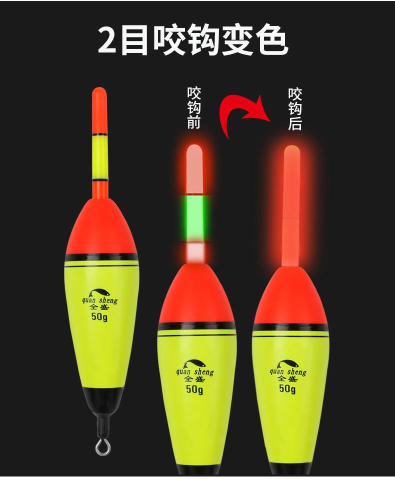 Flotador externo largo luminoso para pesca de deriva, flotador resbaladizo, flotador llamativo de dos ojos y tres ojos que cambia de color al morder, flotador de estallido