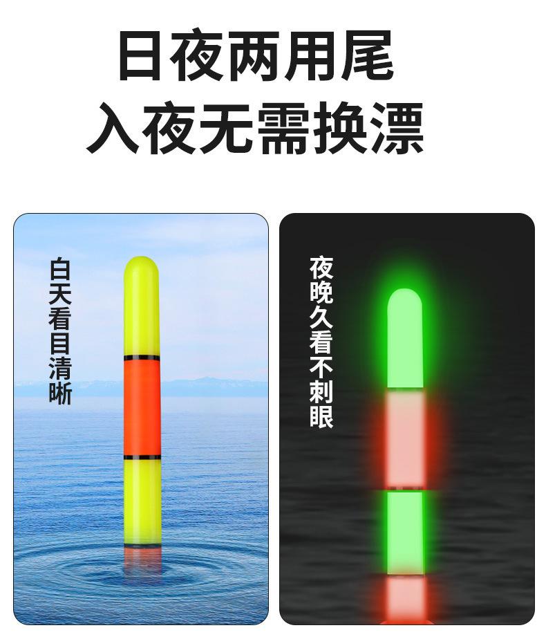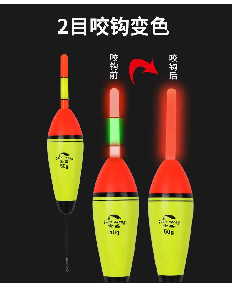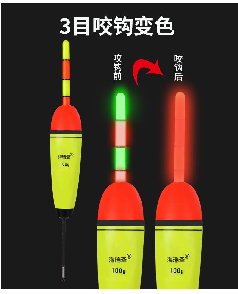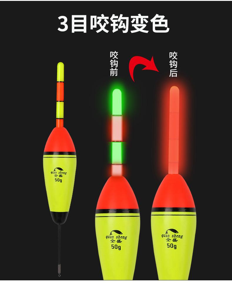 Flotador externo largo luminoso para pesca de deriva, flotador resbaladizo, flotador llamativo de dos ojos y tres ojos que cambia de color al morder, flotador de estallido
