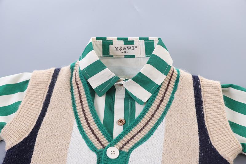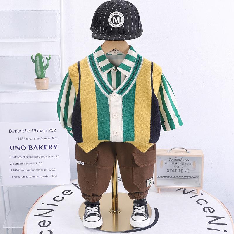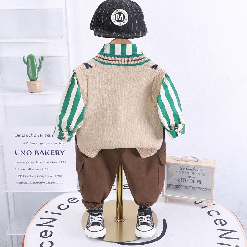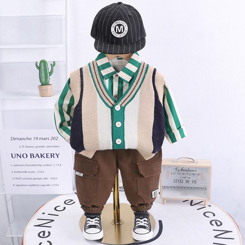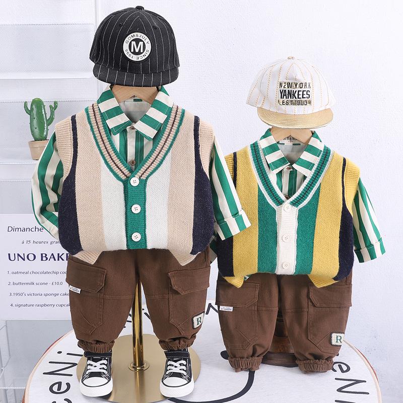 Ropa para niños, traje de primavera y otoño para niños, traje de tres piezas estilo súper occidental para bebés, ropa de otoño para niños, nueva moda coreana 2023