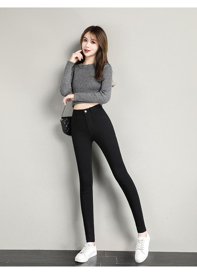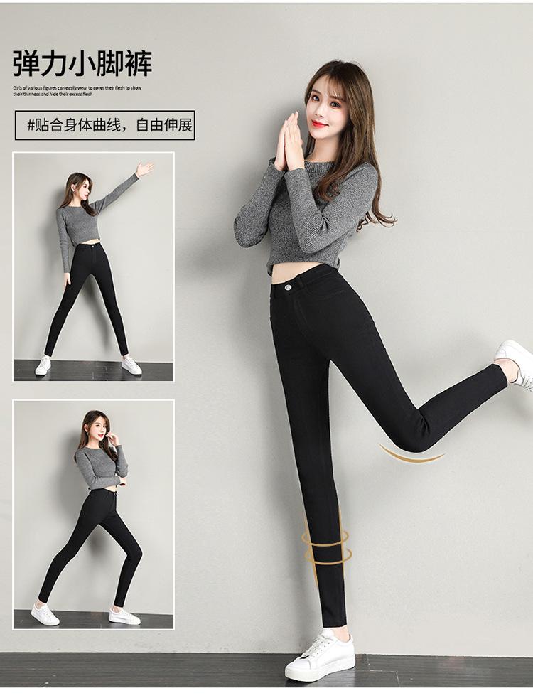 Pantalones negros pequeños de cintura alta para mujer, de moda de primavera y otoño, finos, elásticos, de pie pequeño, ajustados, mágicos, tipo lápiz, de uso exterior