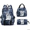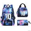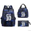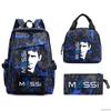 Mochila escolar maxi con estampado de Messi, estuche informal de 3 piezas, bolso de hombro, mochila