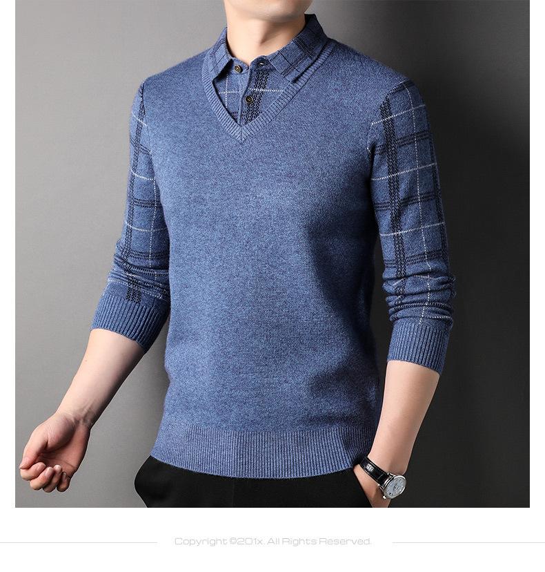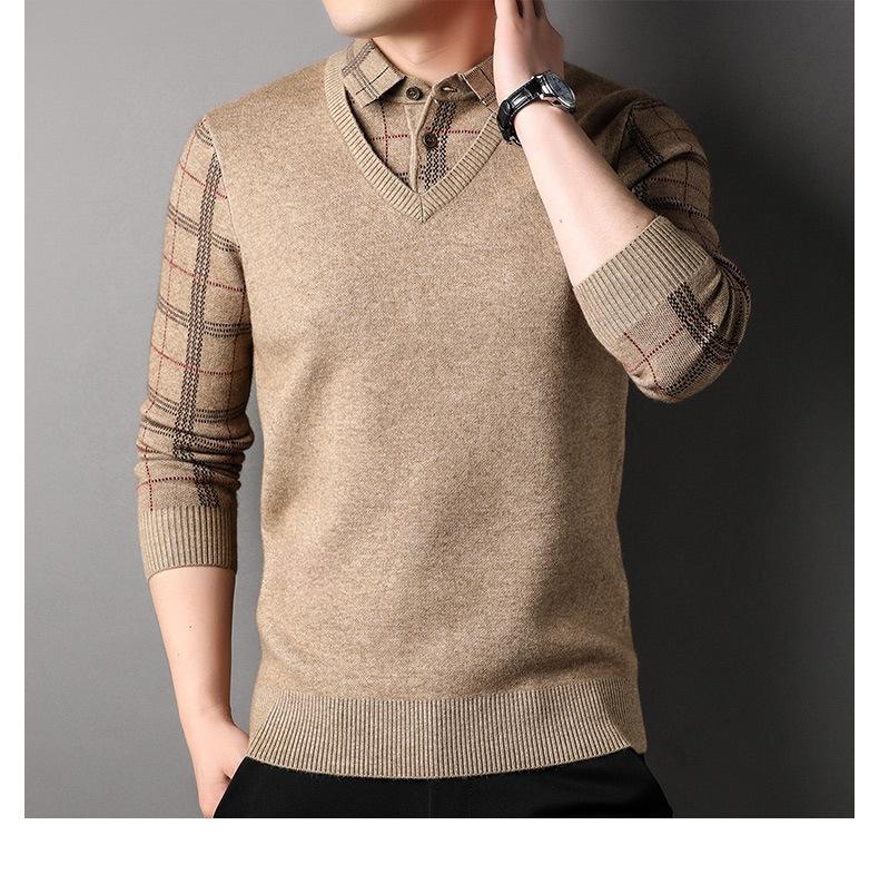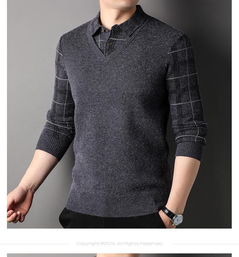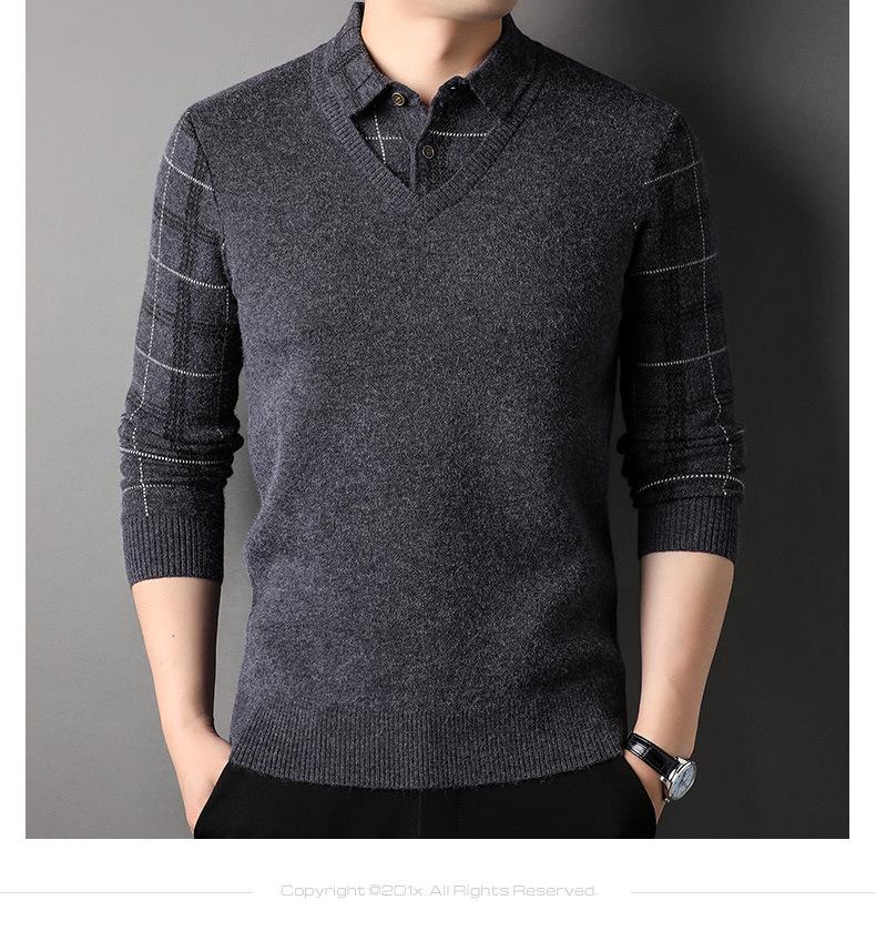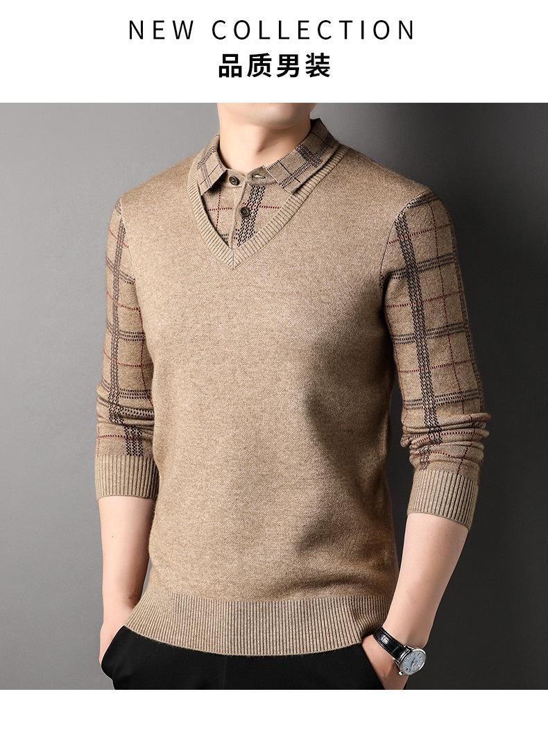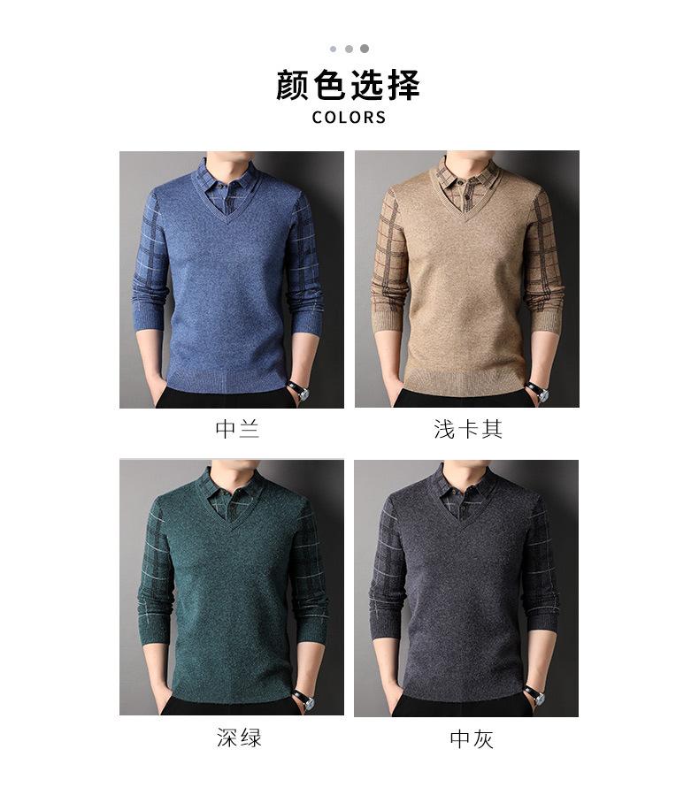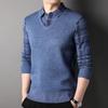 Camisa básica de manga larga de otoño para hombre, suéter holgado de dos piezas con costuras superiores a la moda para negocios, informal para hombre