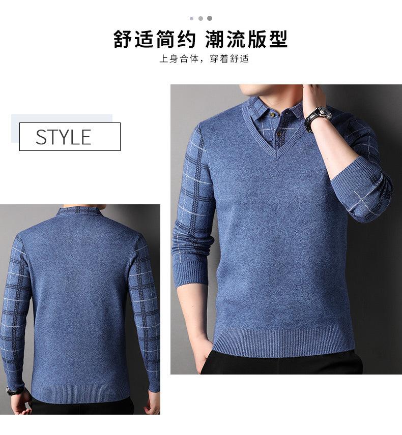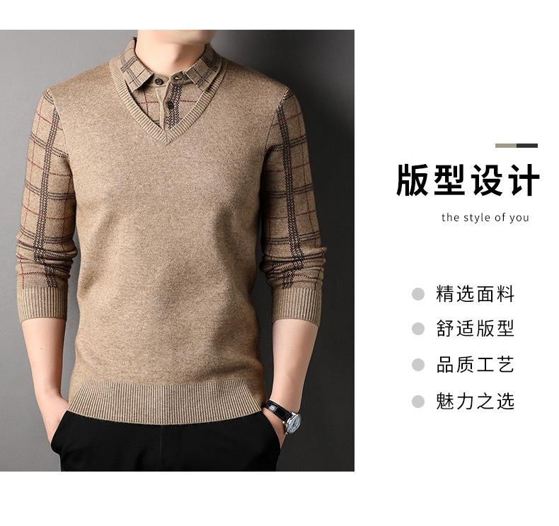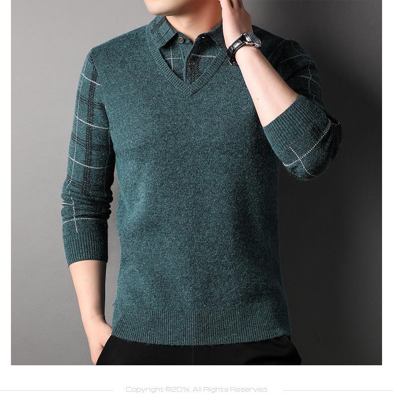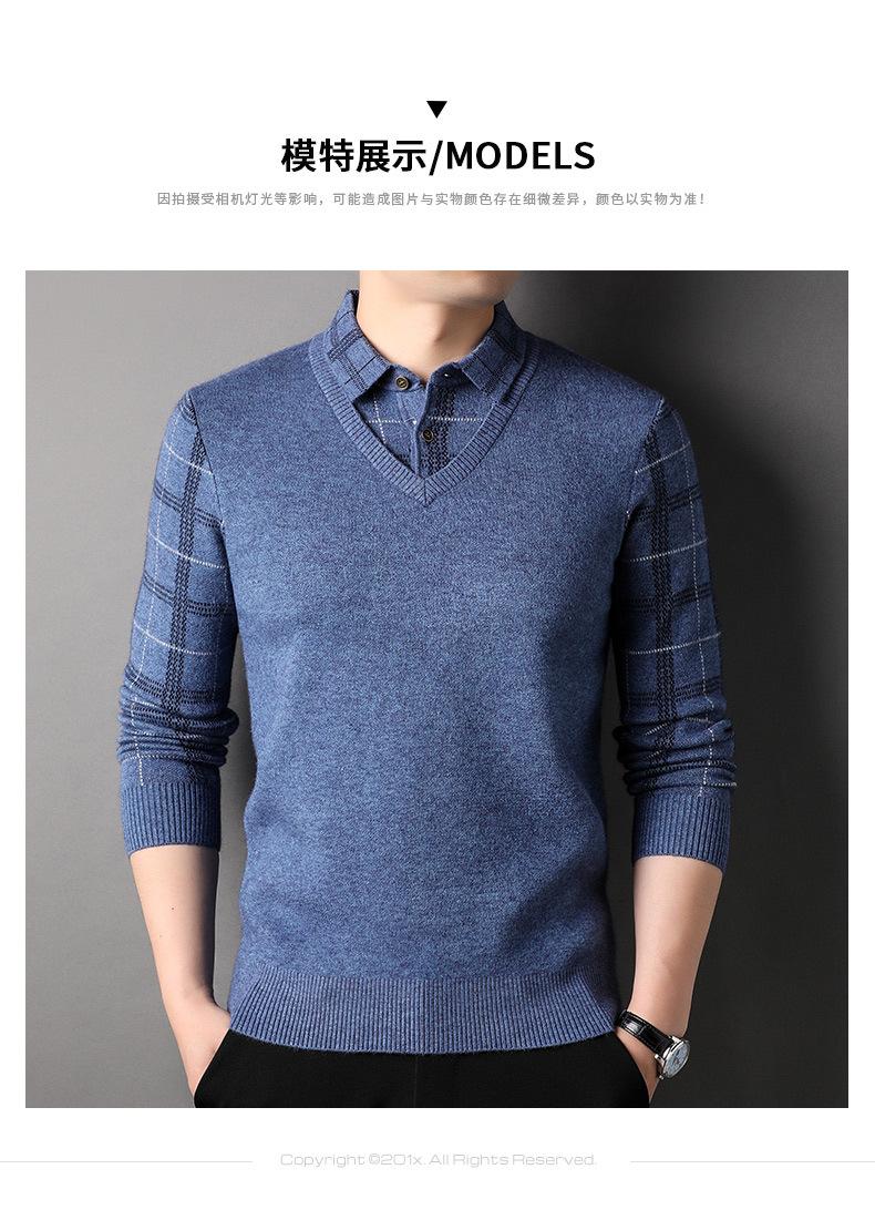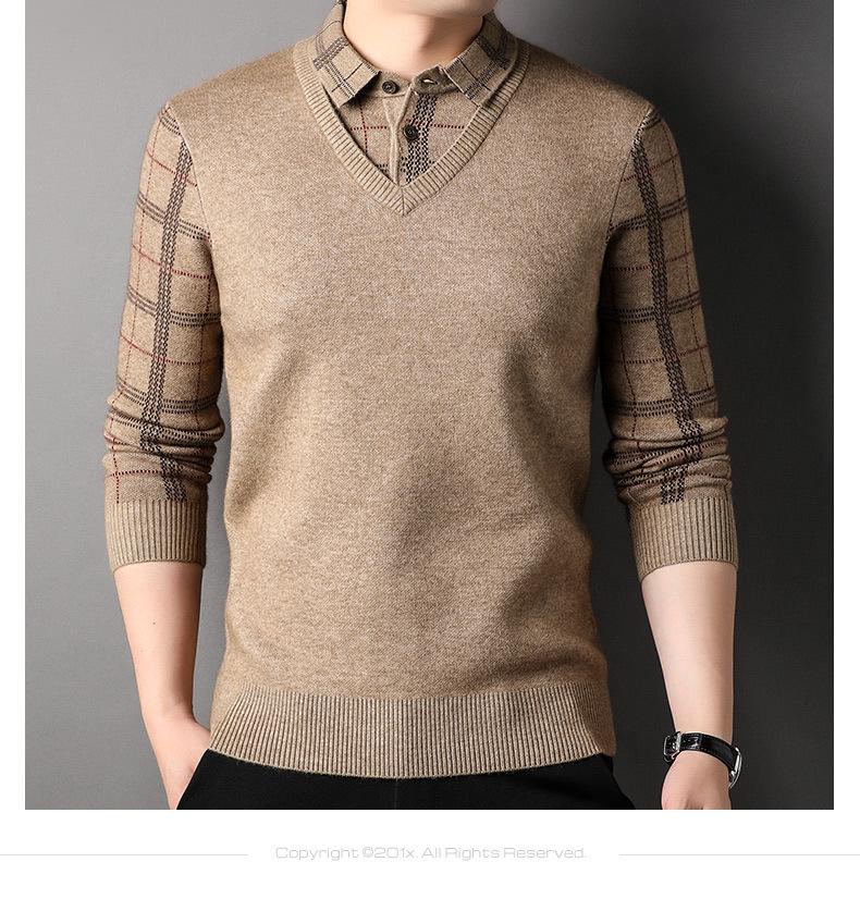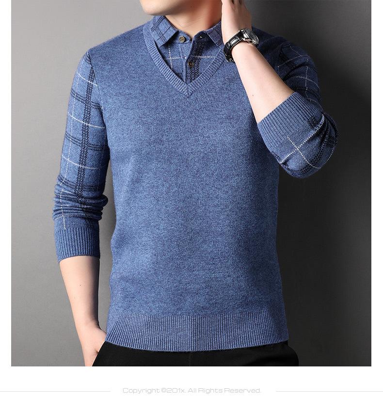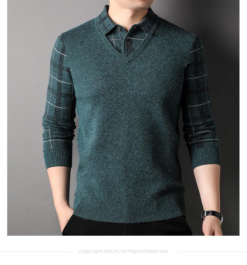 Camisa básica de manga larga de otoño para hombre, suéter holgado de dos piezas con costuras superiores a la moda para negocios, informal para hombre