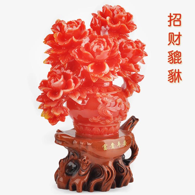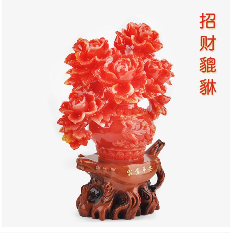 [Nombre del producto]: Accesorios para el hogar hechos a mano de resina creativa, imitación de jade, peonía de la suerte, bonsái, adornos auspiciosos.