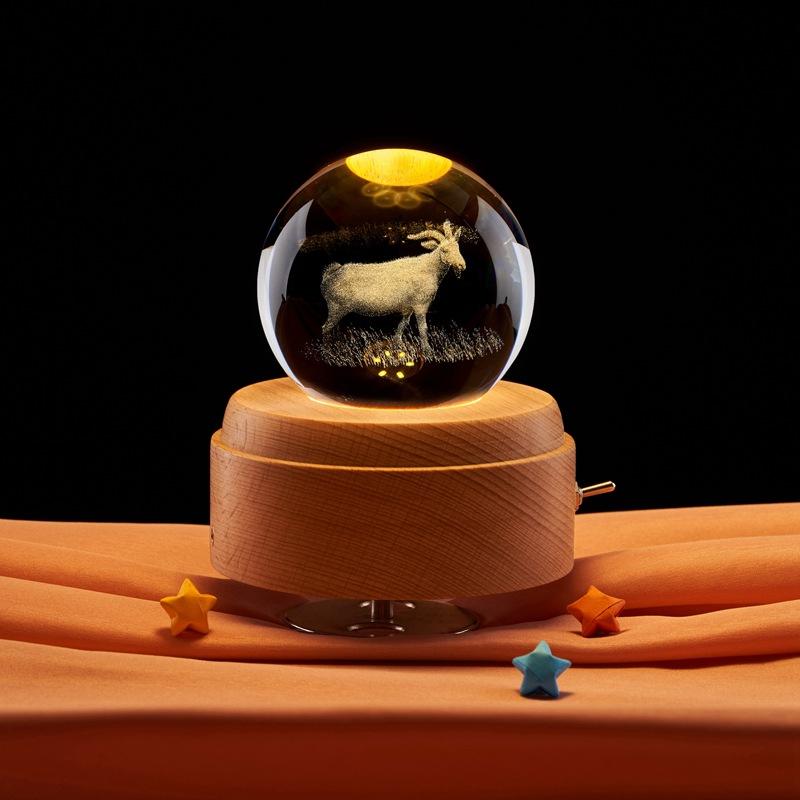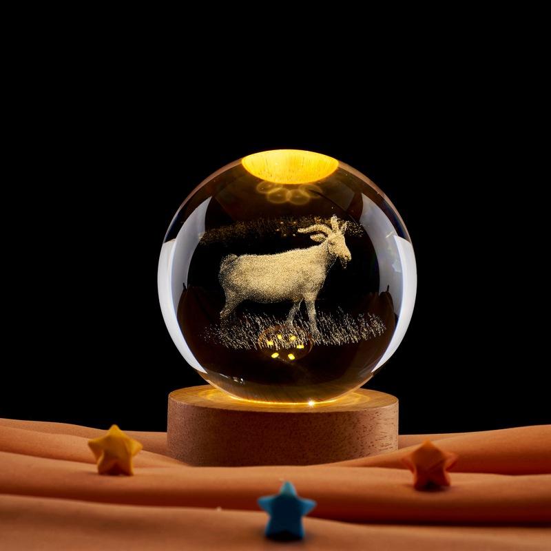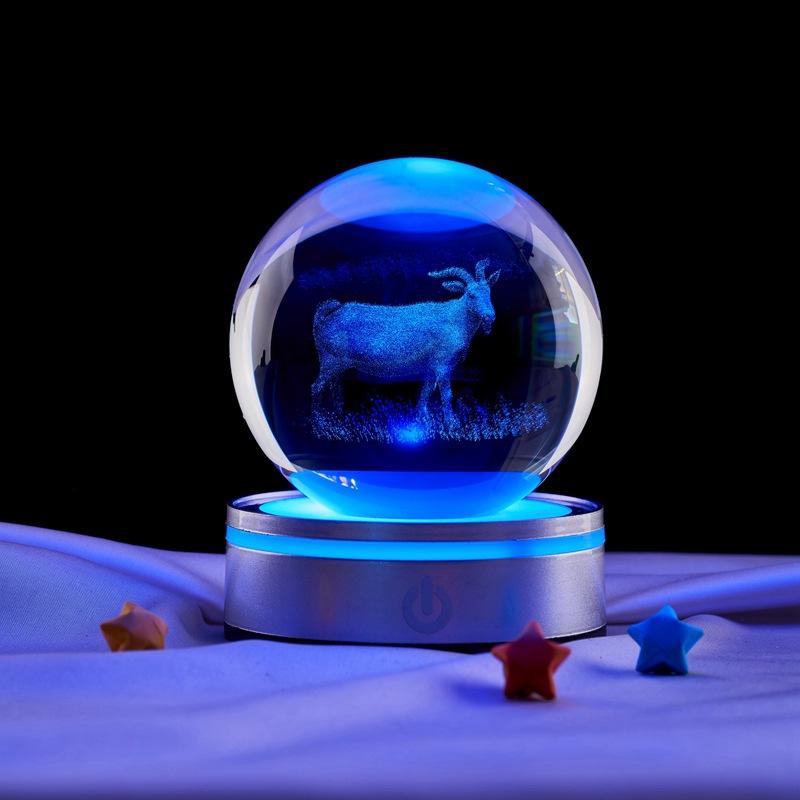 Bola de cristal luminosa de luz nocturna con grabado láser tridimensional 3D de cabra al por mayor de comercio exterior transfronterizo