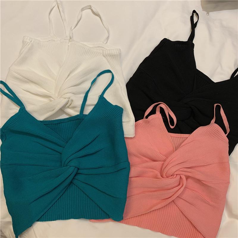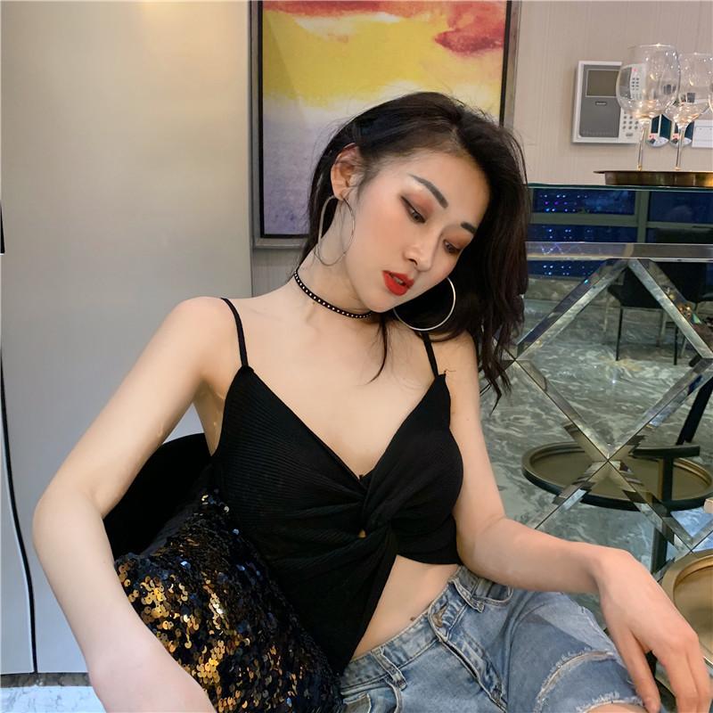 Compra Camisola Negra para Mujer con Cuello en V Profundo, Sexy y Versátil Top Tank Corto de Corte Cruzado para Mujer Ins al por mayor en Joom.pro