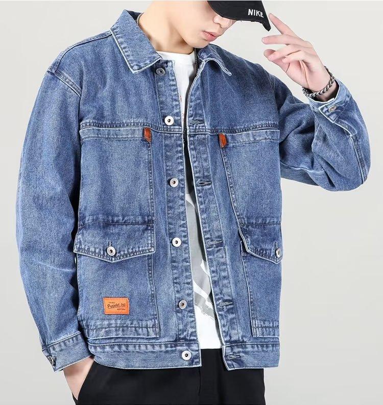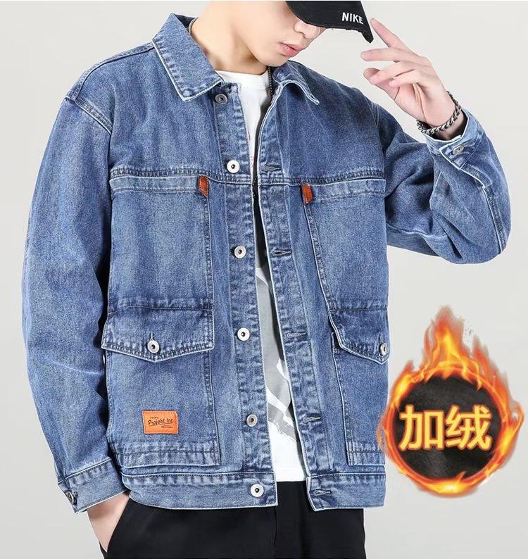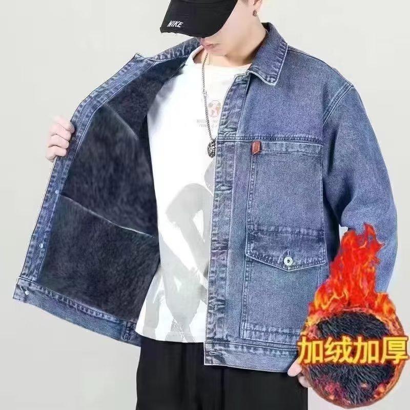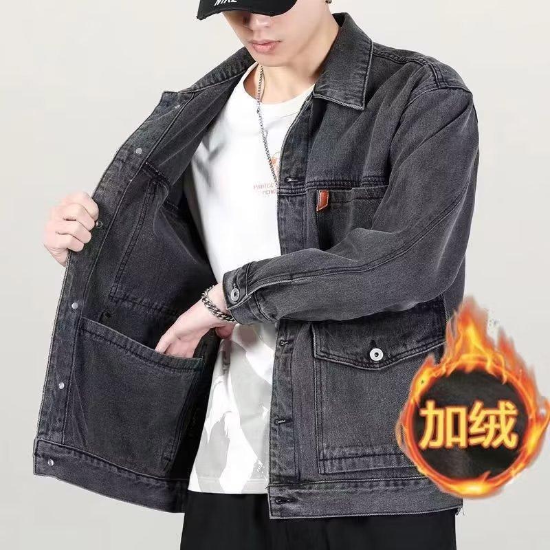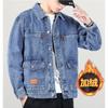 Chaqueta de mezclilla para hombre con forro polar más algodón, chaqueta para hombre otoño 2022 nueva holgada, chaqueta de trabajo de otoño e invierno