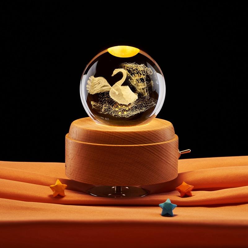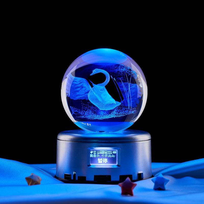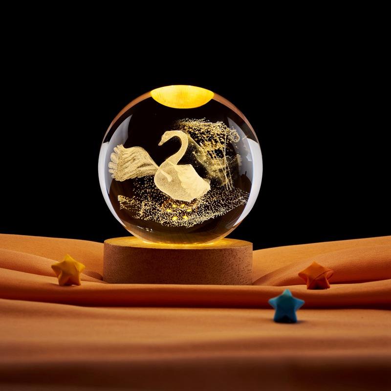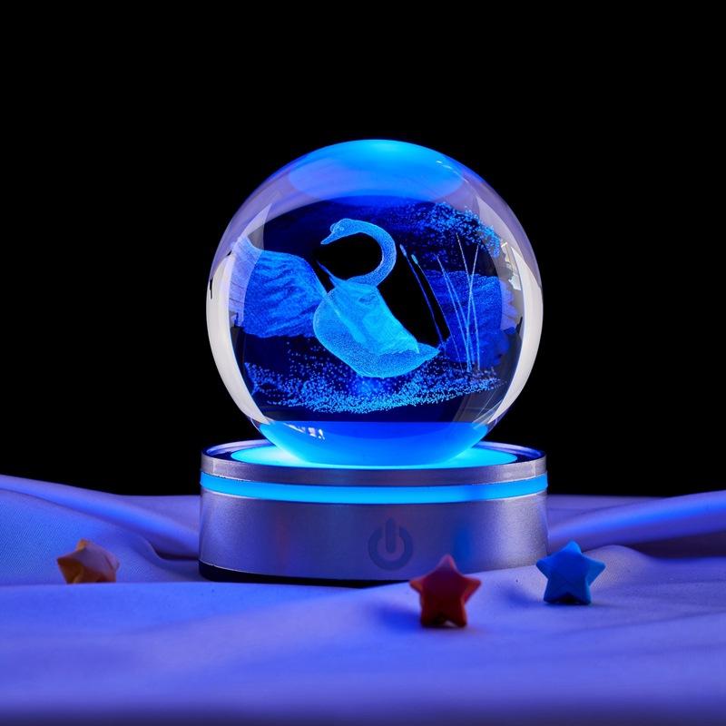 Venta al por mayor transfronteriza de cisne creativo 3D grabado láser tridimensional bola de cristal luz cálida curación estrella luz de noche