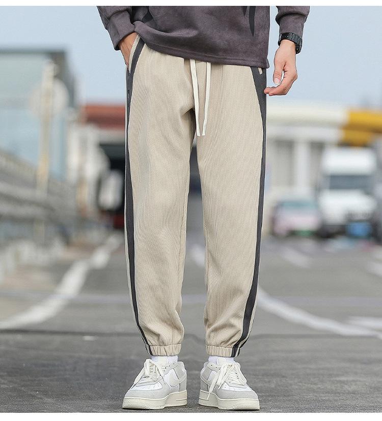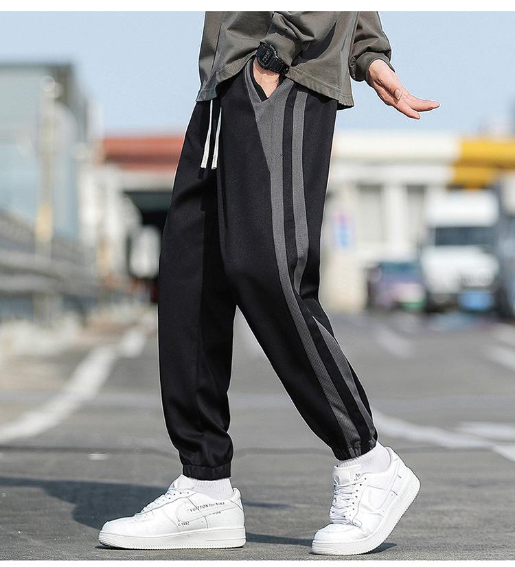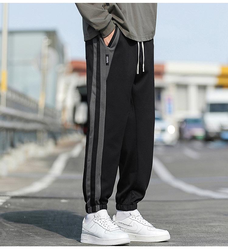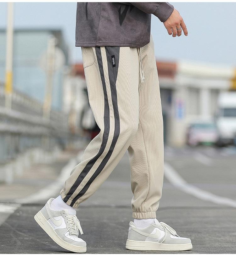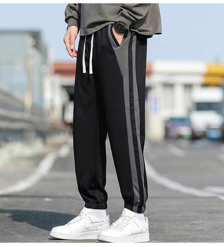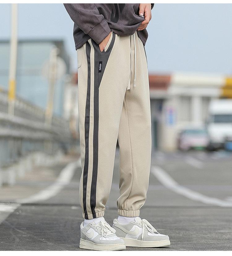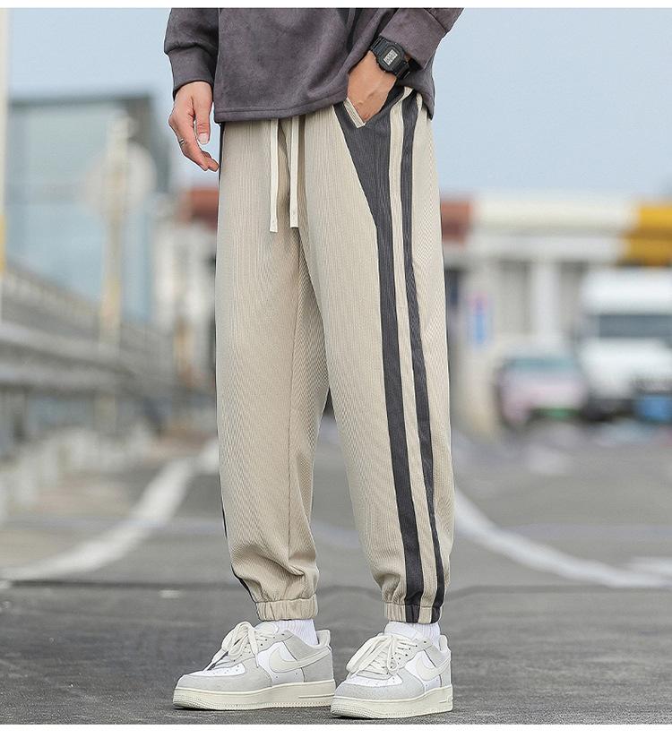 Pantalones cortos para hombre, novedad de primavera y otoño de 2023, con rayas laterales, holgados, combinables con todo, de marca de moda, con tobillos atados, pantalones deportivos casuales para hombre