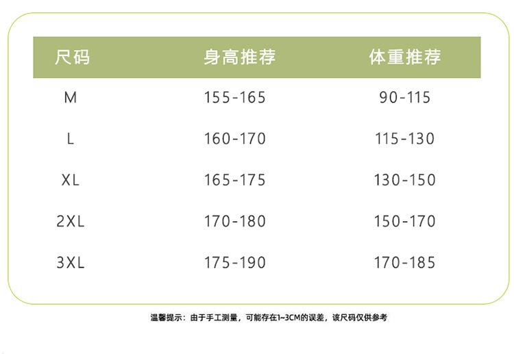 M size 45-60kg, L size 60-67.5kg, Xl code 67.5-77.5kg, Xxl size 77.5-82.5kg, Xxxl code 82.5-94kg