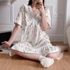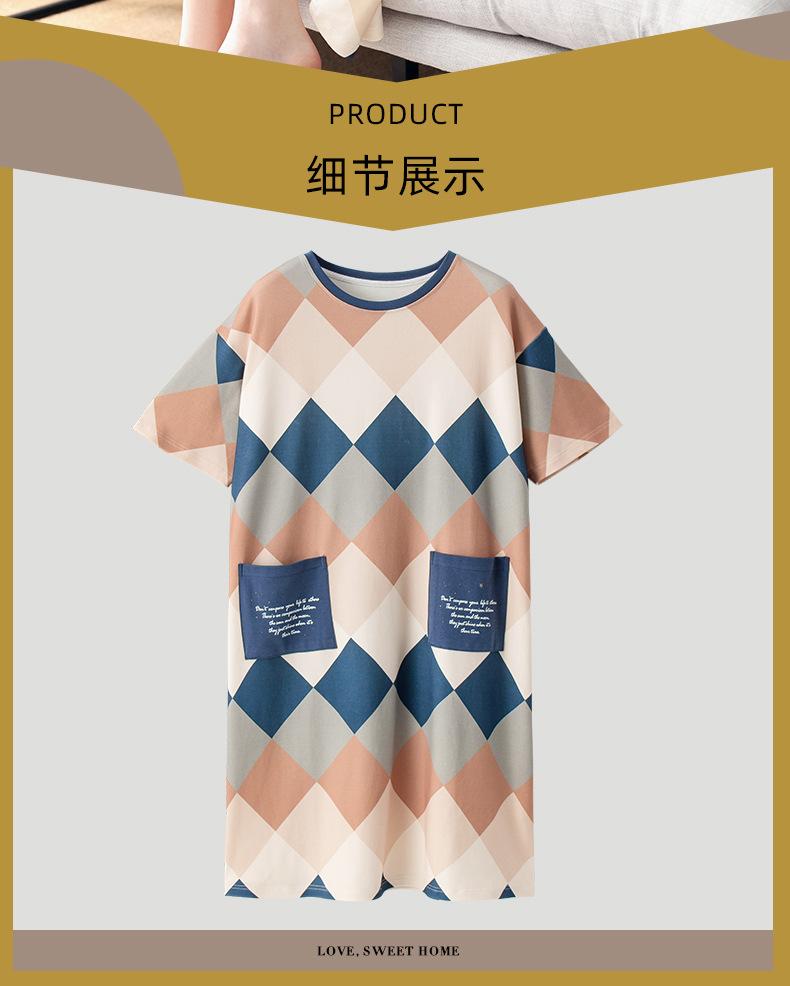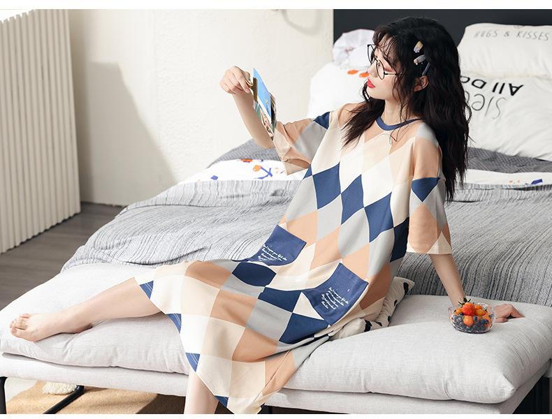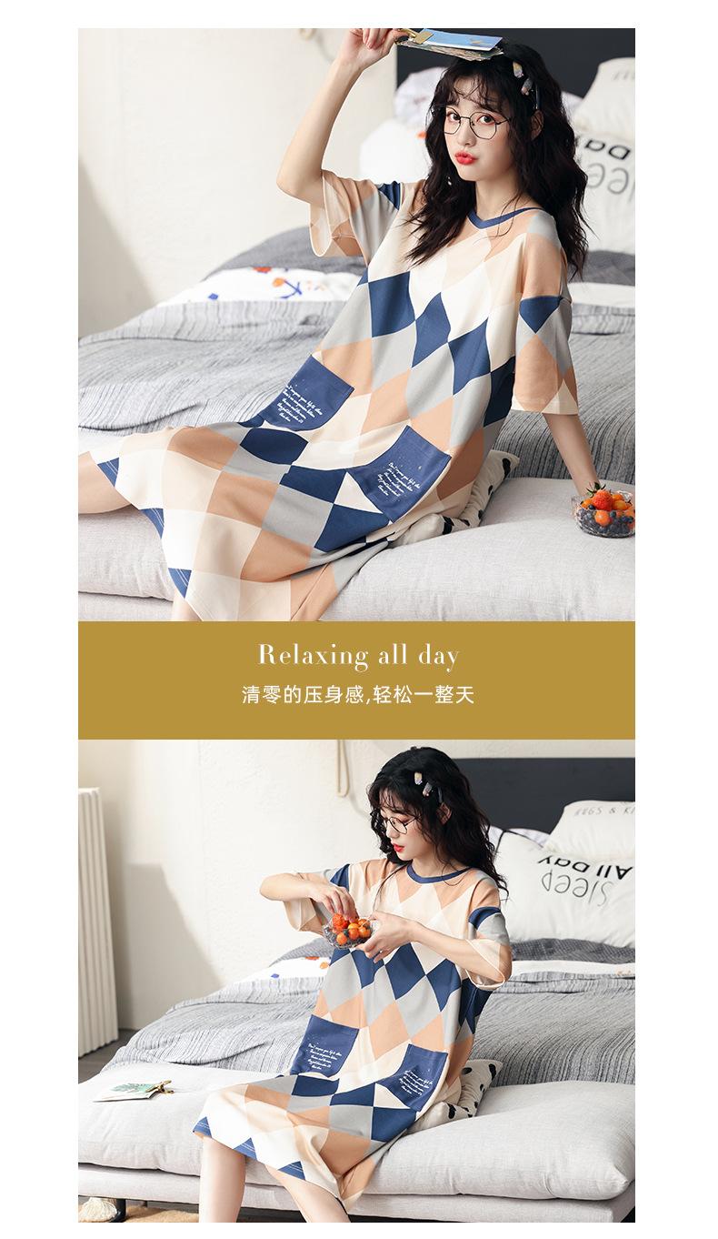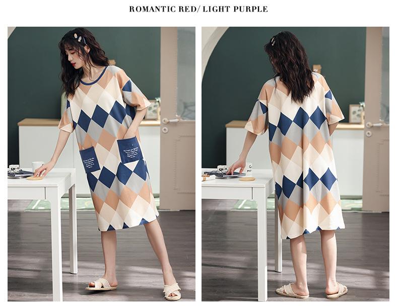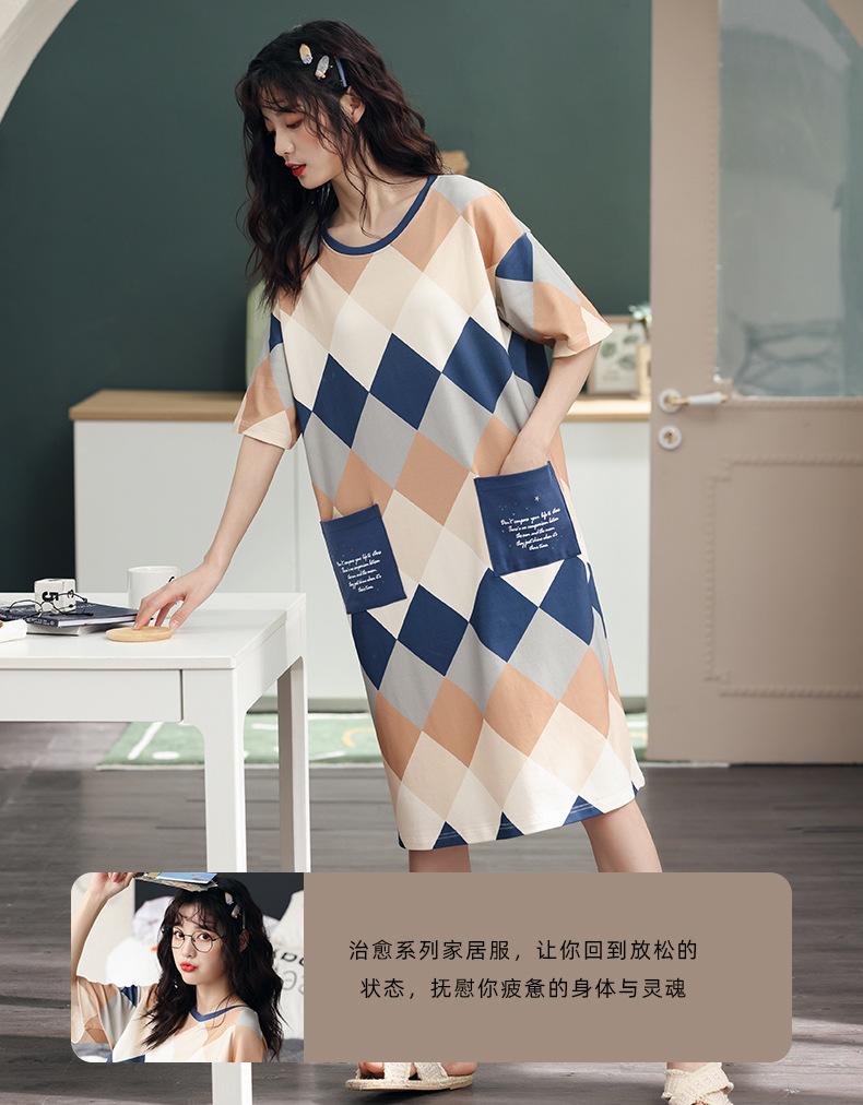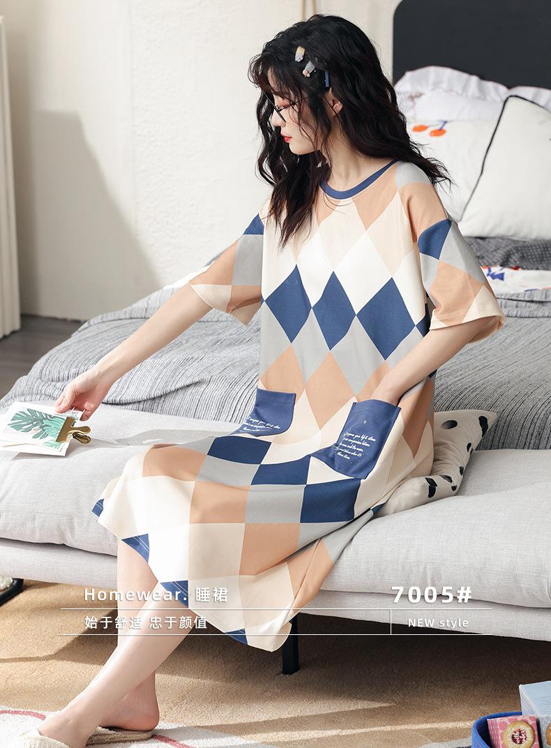 [Algodón puro] Camisón largo de manga corta de verano para mujer, holgado, informal, para el hogar, pijama