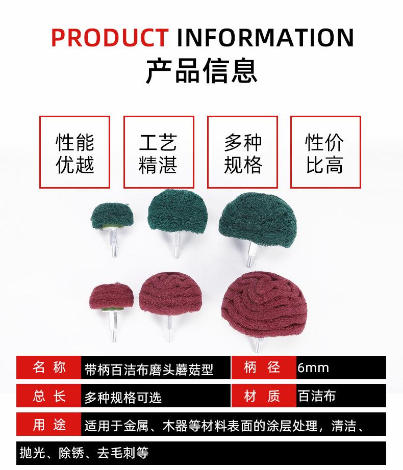 Cabezal de pulido de estropajo con mango de 6 mm, rueda de dibujo de pulido de acero inoxidable de metal, rueda de pulido de cabeza de hongo, cabezal de pulido de taladro eléctrico