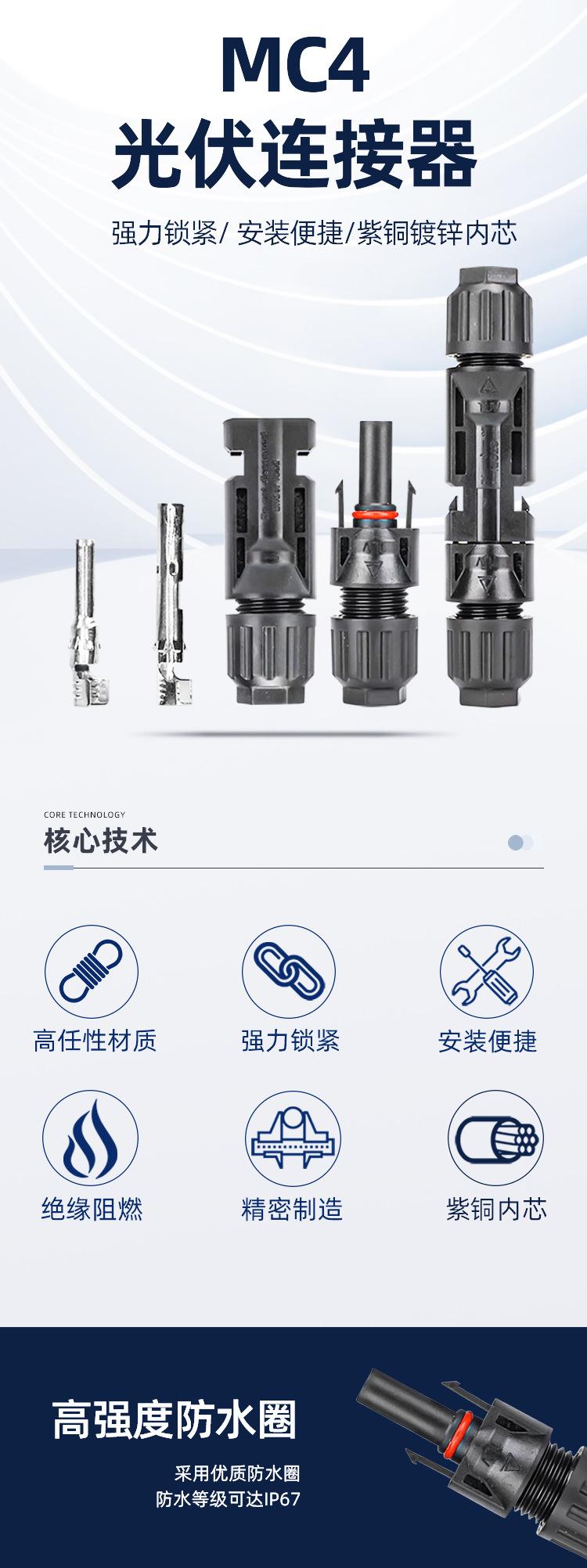 Conector de cable fotovoltaico enchufe rápido conector MC4 para cable fotovoltaico impermeable cobre estañado adaptador de enchufe para panel fotovoltaico