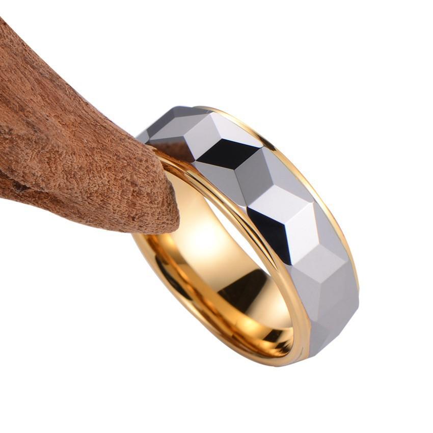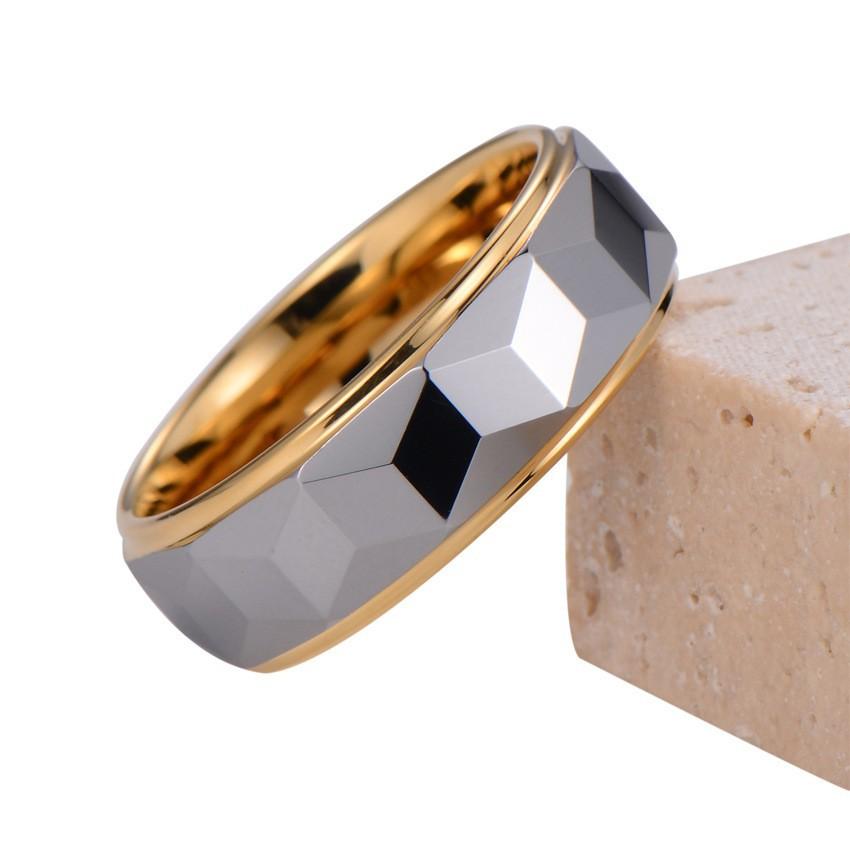2025 Nuevo Anillo de Acero de Tungsteno para Hombre de 8 mm de Ancho con Diseño Dorado, Simple, Resistente al Desgaste, Hipoalergénico, Joyería Diaria para Negocios