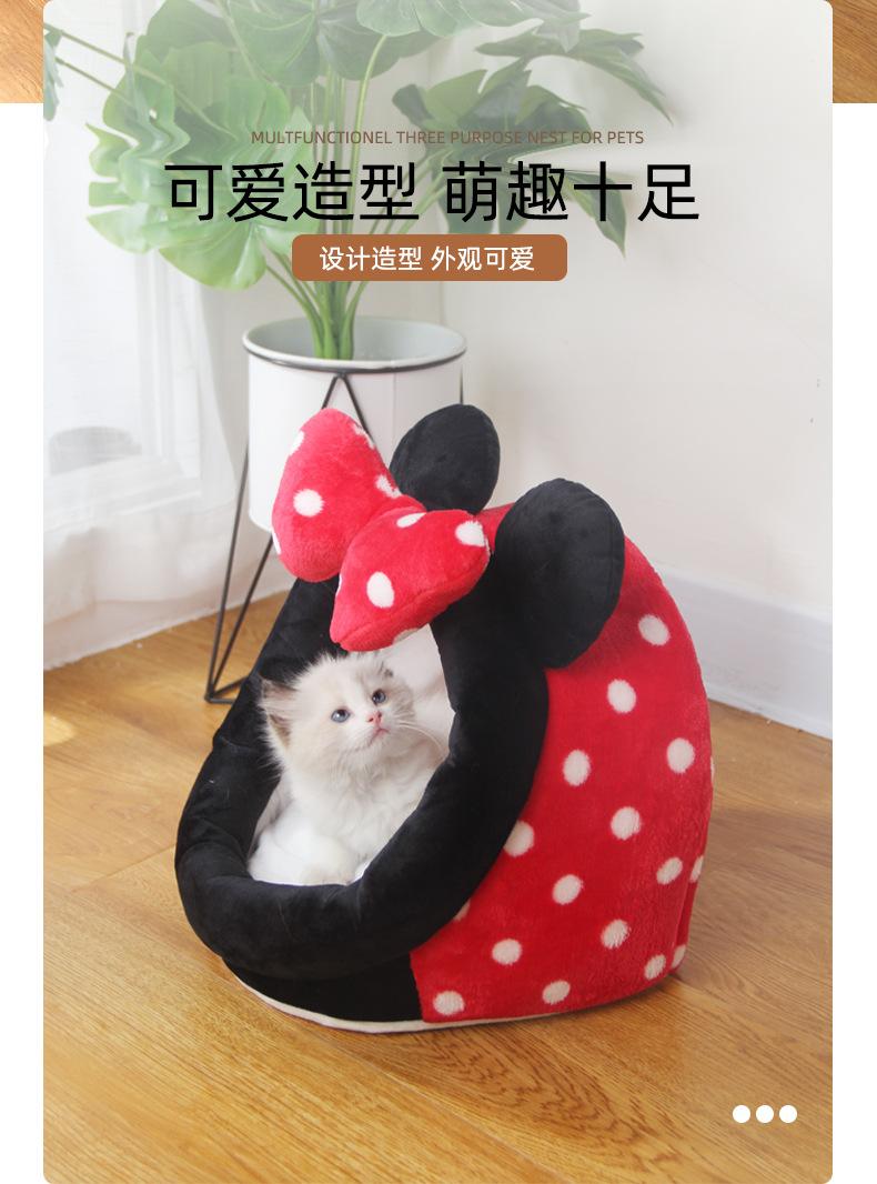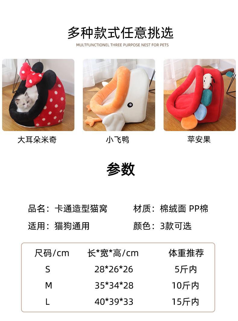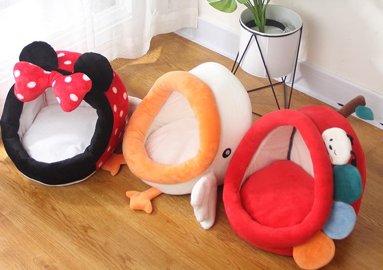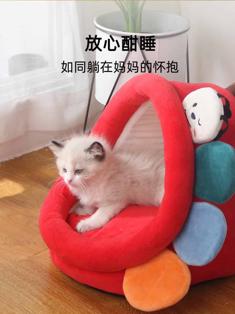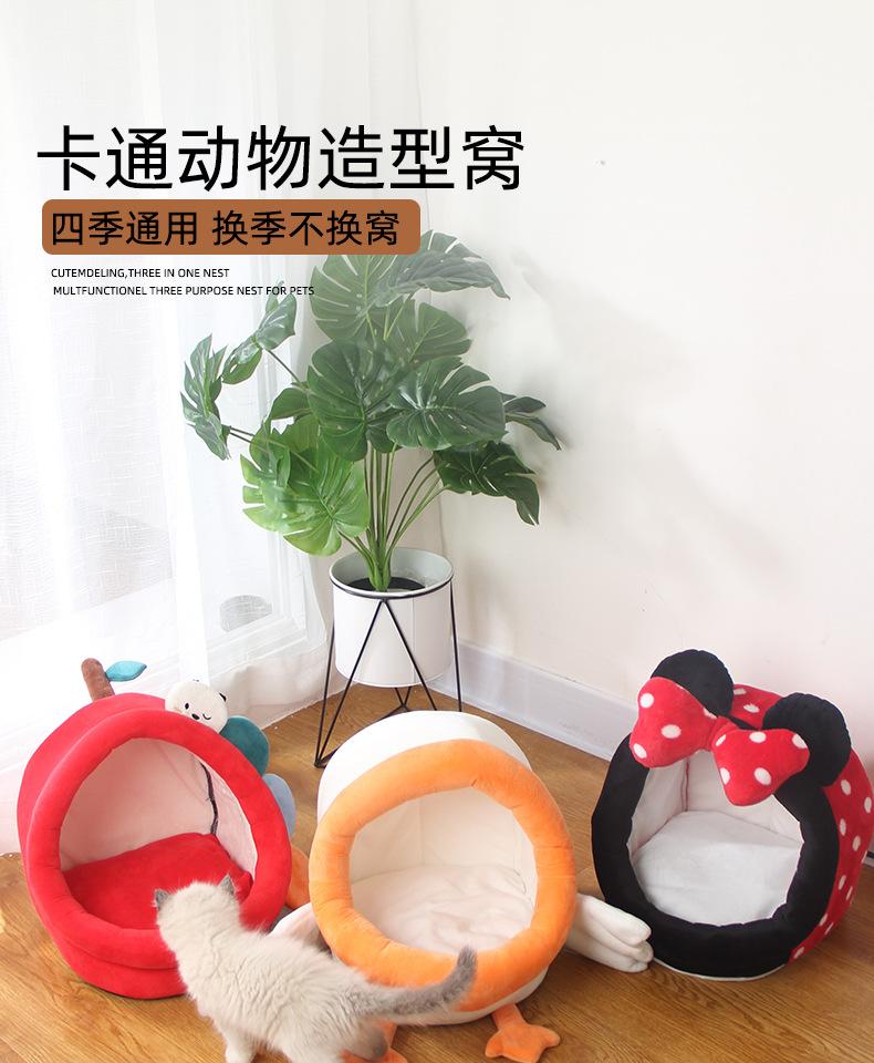 Nueva caricatura lindo nido para mascotas de cuatro estaciones algodón gamuza algodón PP mascota gato nido semicerrado suministros para mascotas