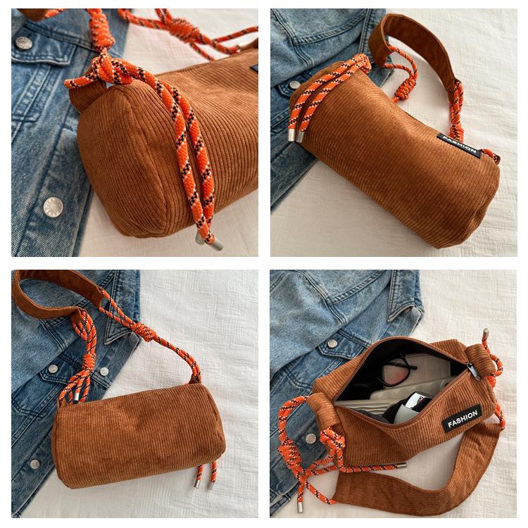 Bolso de tela esmerilado para mujer, bolso cilíndrico de moda tipo almohada, nuevo bolso de mujer elegante, informal, de gran capacidad y combinable, 2024