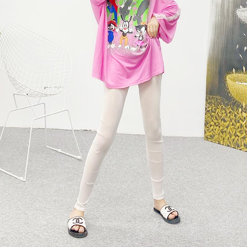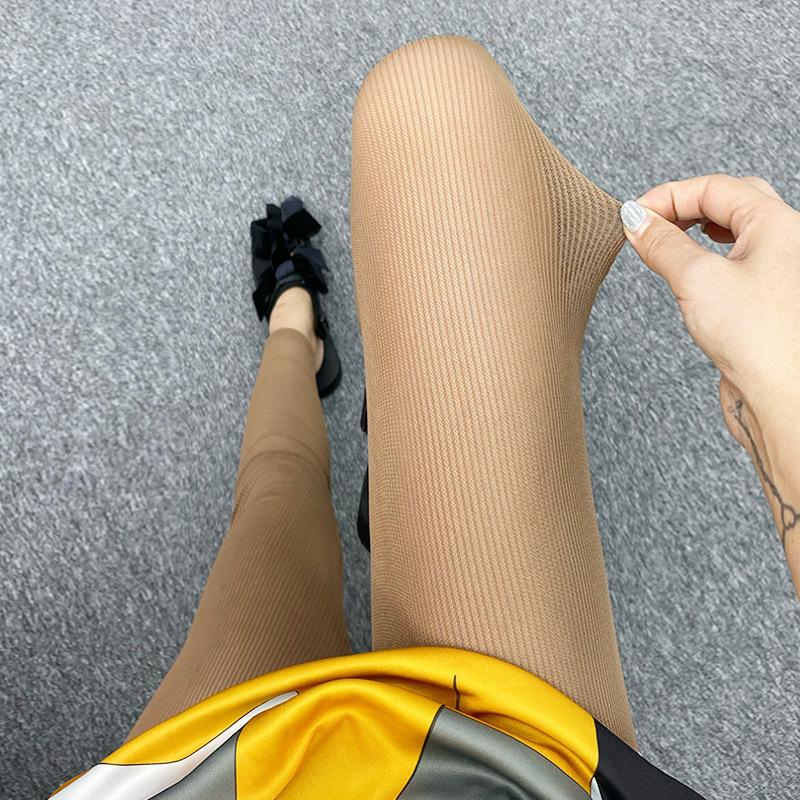 Leggings de malla para mujer, ropa exterior de verano, finos, de cintura alta, con hilo que penetra la piel, adelgazantes, elásticos y grandes, pantalones cortos de moda para 2025