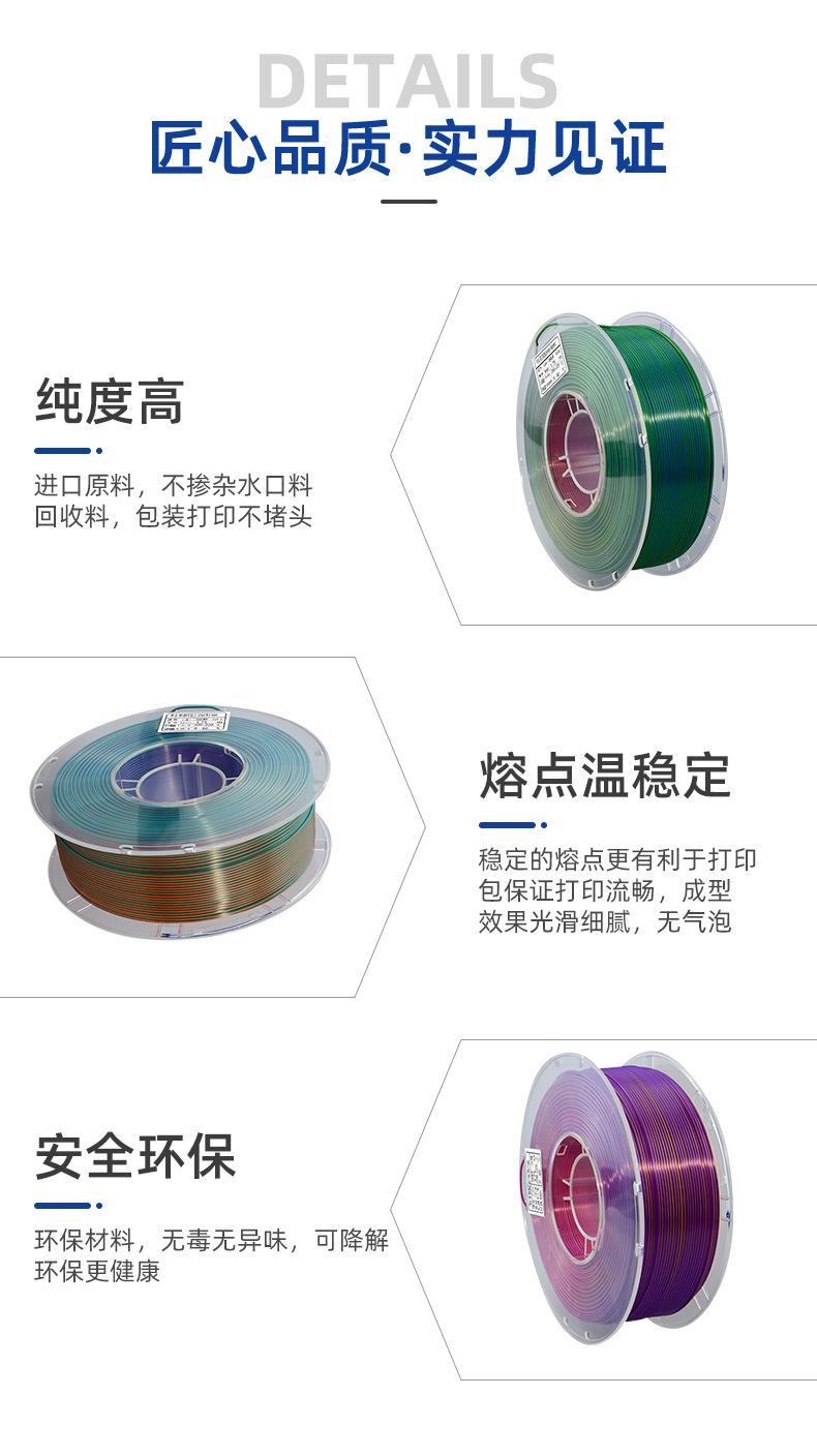 Consumibles de Impresión 3D de Seda PLA Seda Material de Línea de Impresión Tricolor Impresión Material de Línea de Seda Consumibles para Impresora 3D