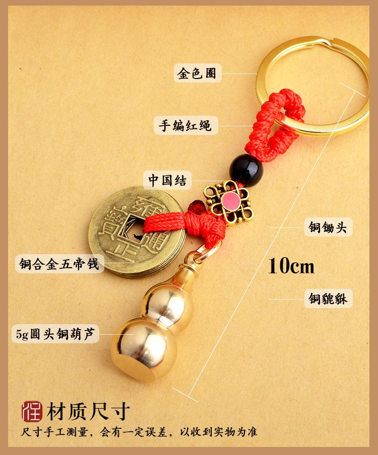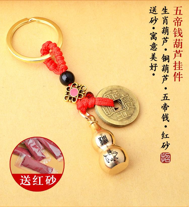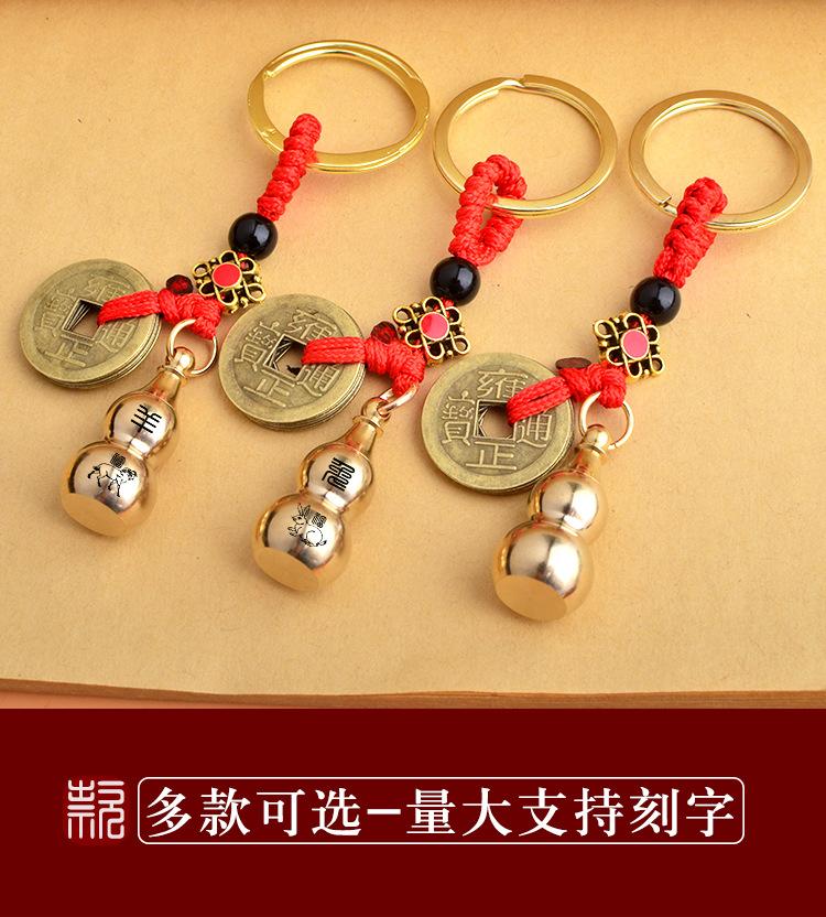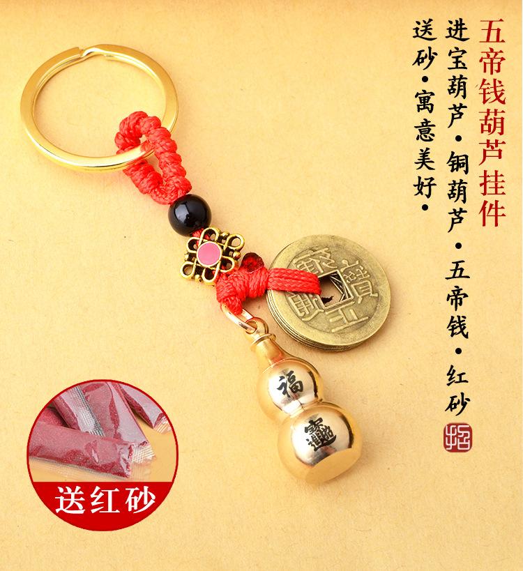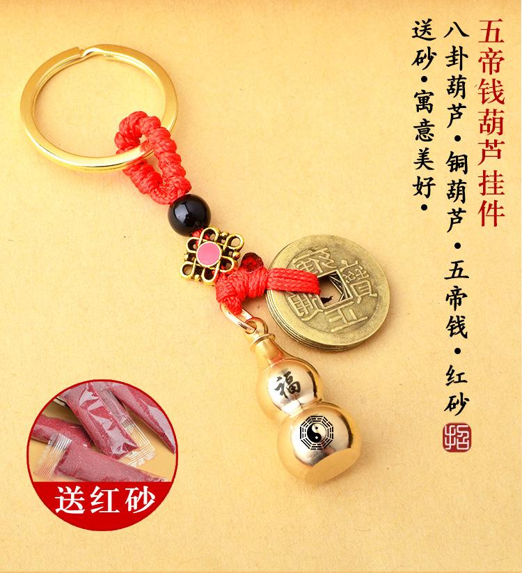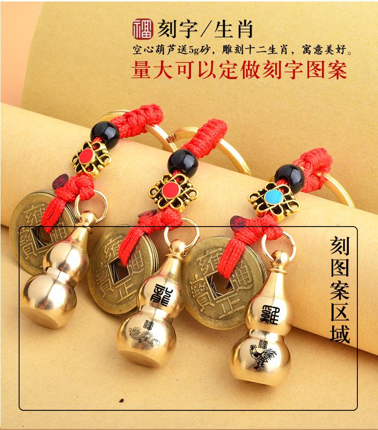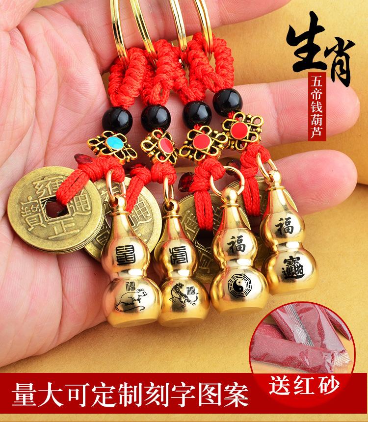 Llavero con forma de calabaza de cobre con forma de cinco emperadores, accesorios para regalos, fabricantes de Yiwu, productos pequeños al por mayor