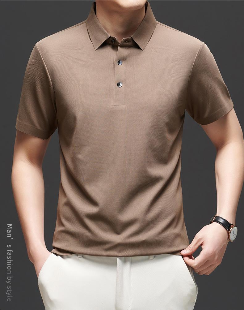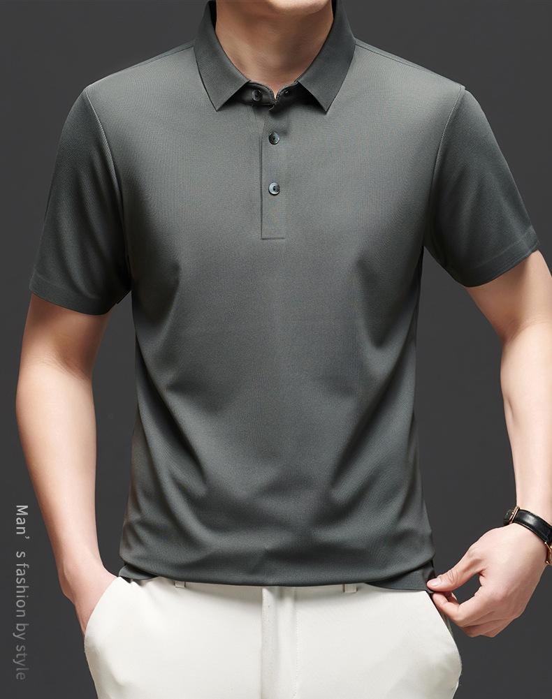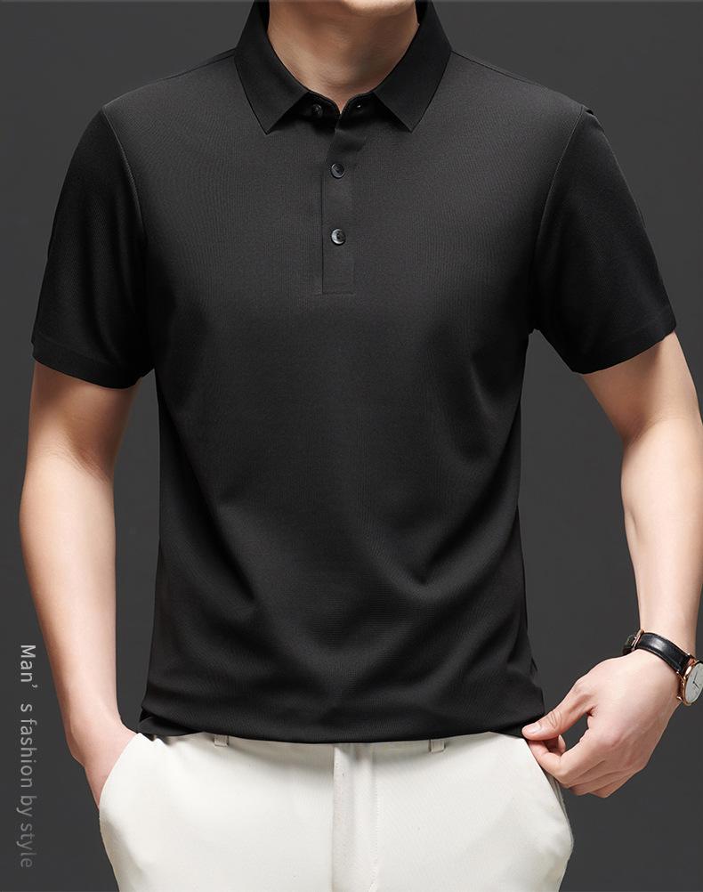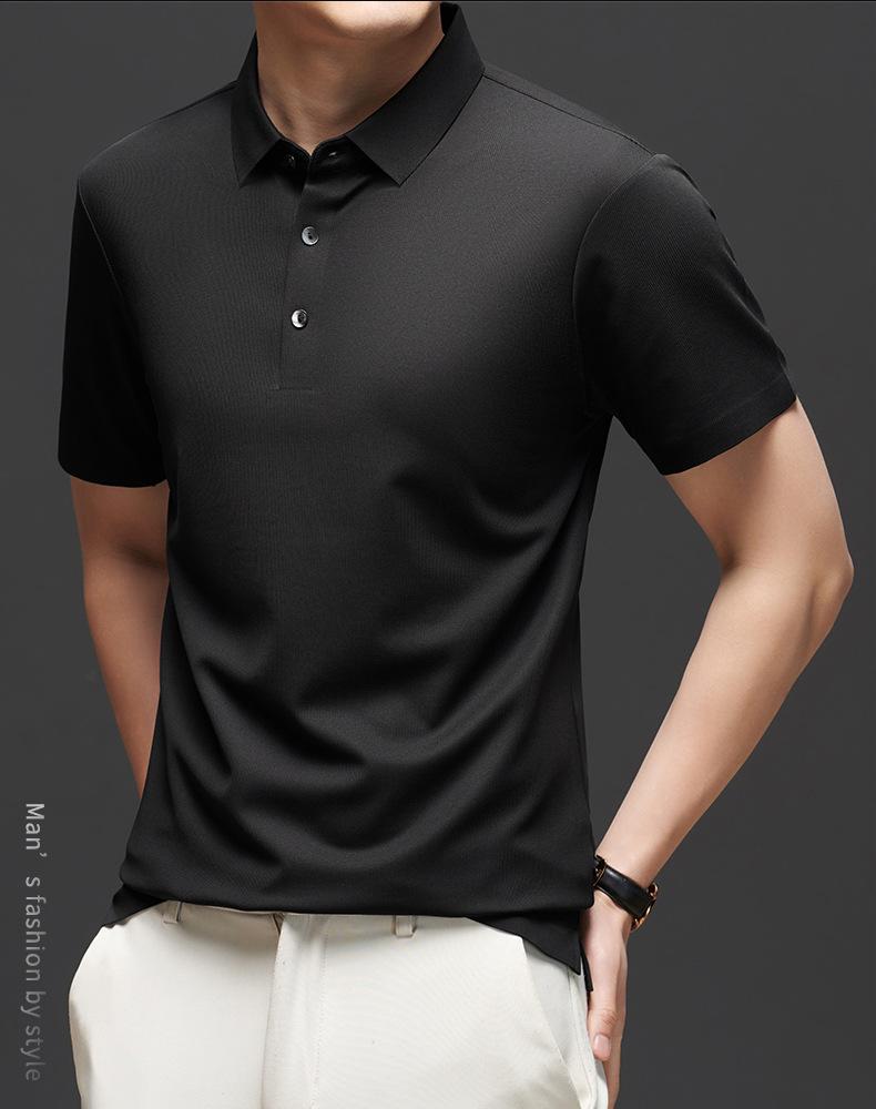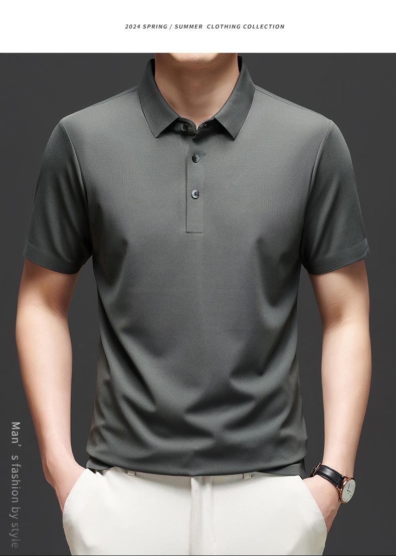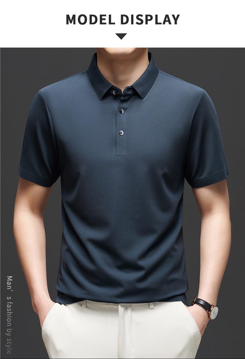 Camiseta de Verano para Hombre 2025 Poliéster Súper Elástica Color Sólido Ligera Business Casual Manga Corta Sin Costuras Laminada Transpirable Camisa Polo