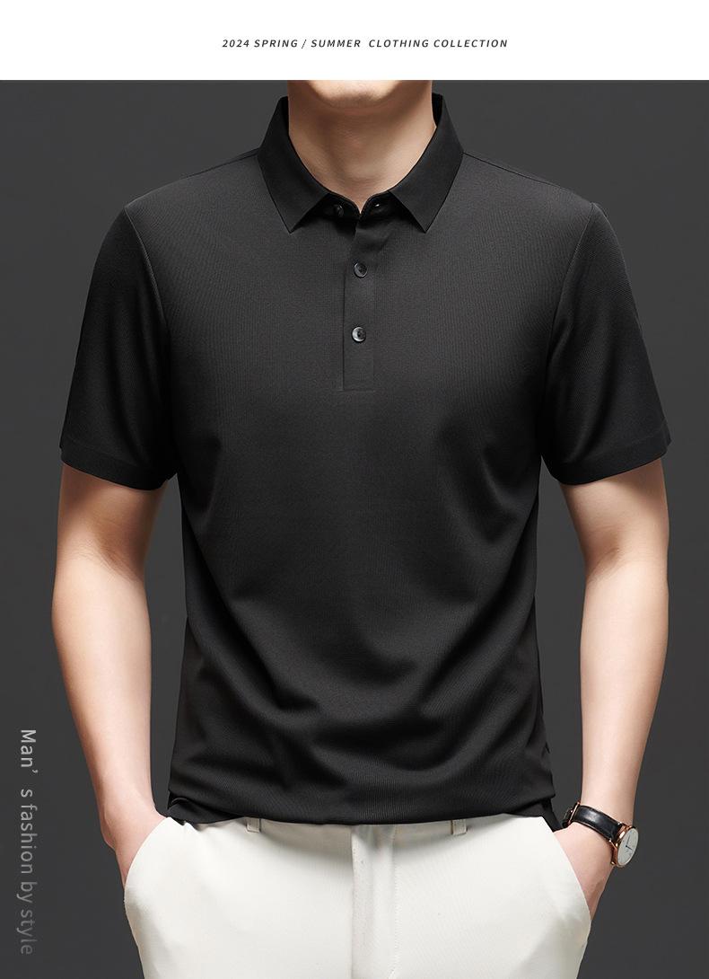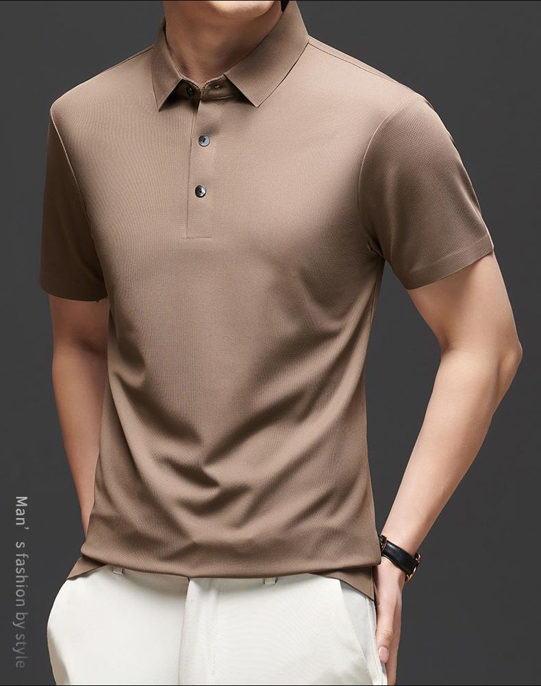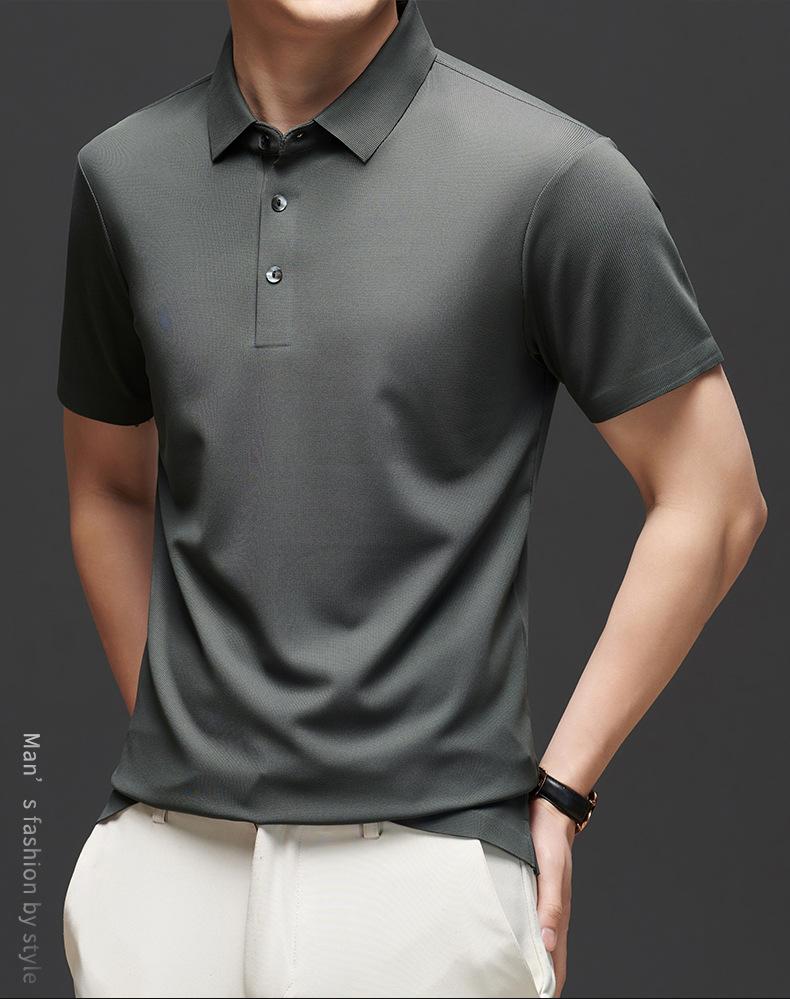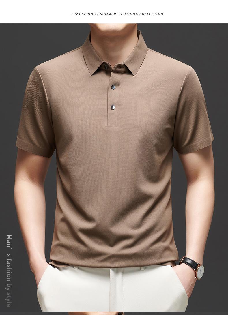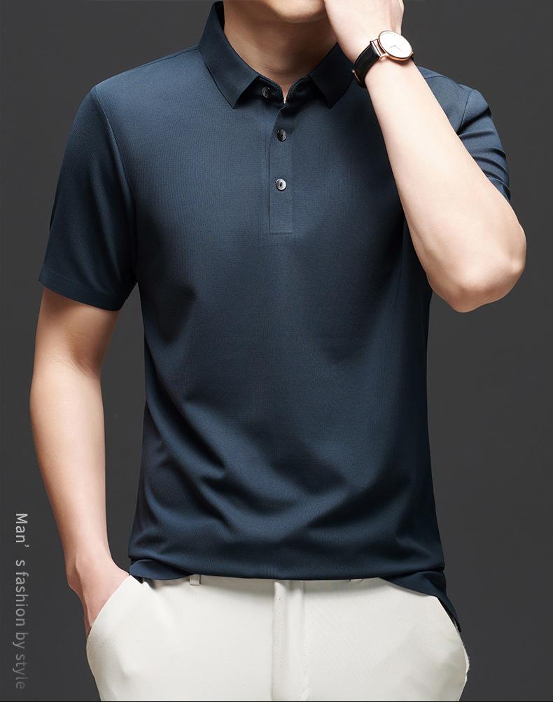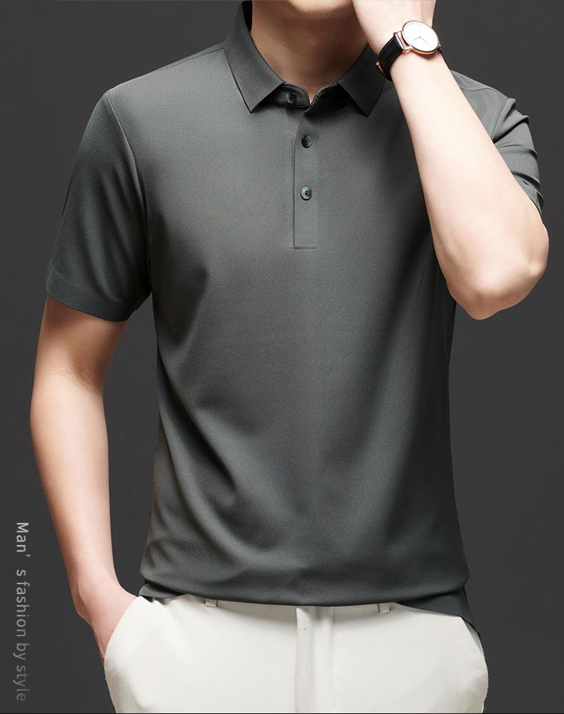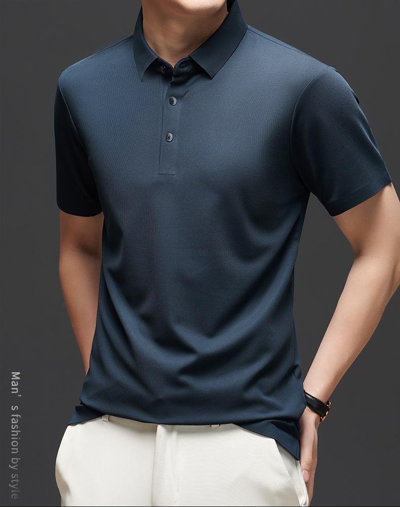 Camiseta de Verano para Hombre 2025 Poliéster Súper Elástica Color Sólido Ligera Business Casual Manga Corta Sin Costuras Laminada Transpirable Camisa Polo