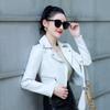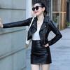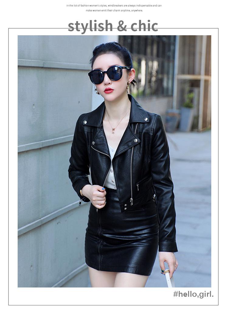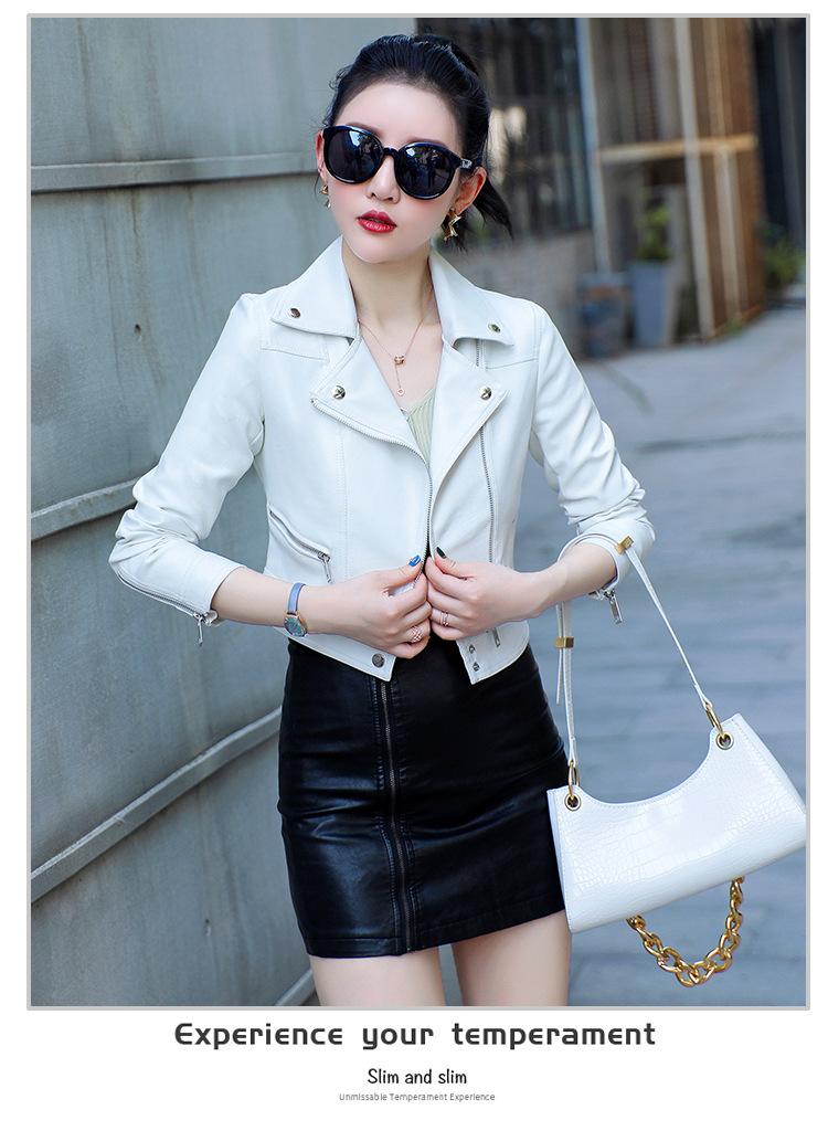 Abrigo Corto de Cuero PU para Mujer 2023 Primavera y Otoño Estilo Coreano Cuello de Traje Chaqueta de Motociclista Guapo Petite Tooling Cartera