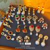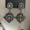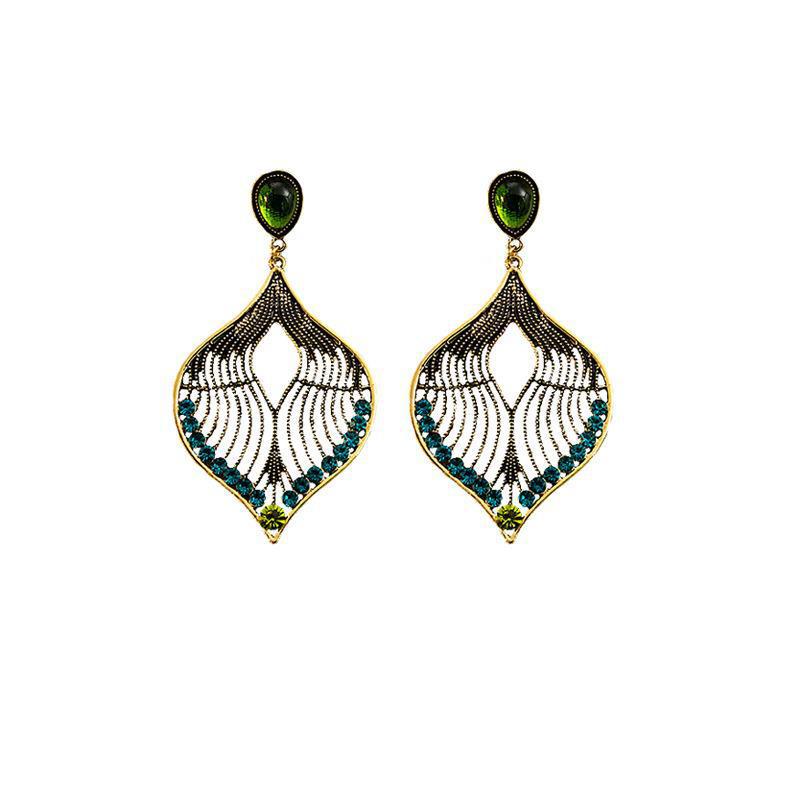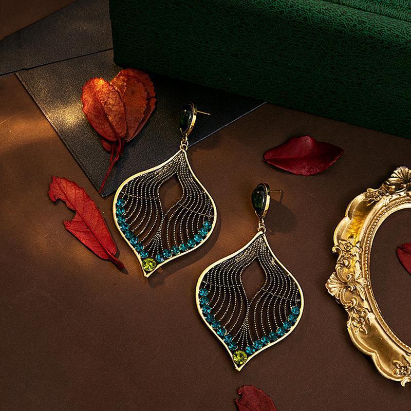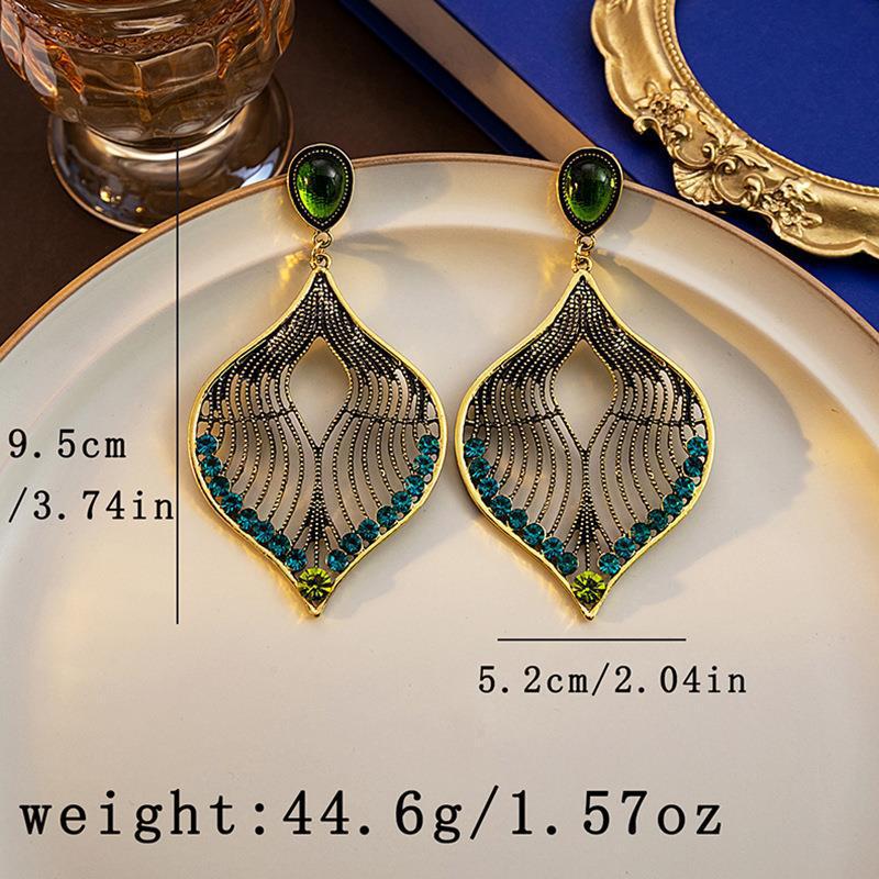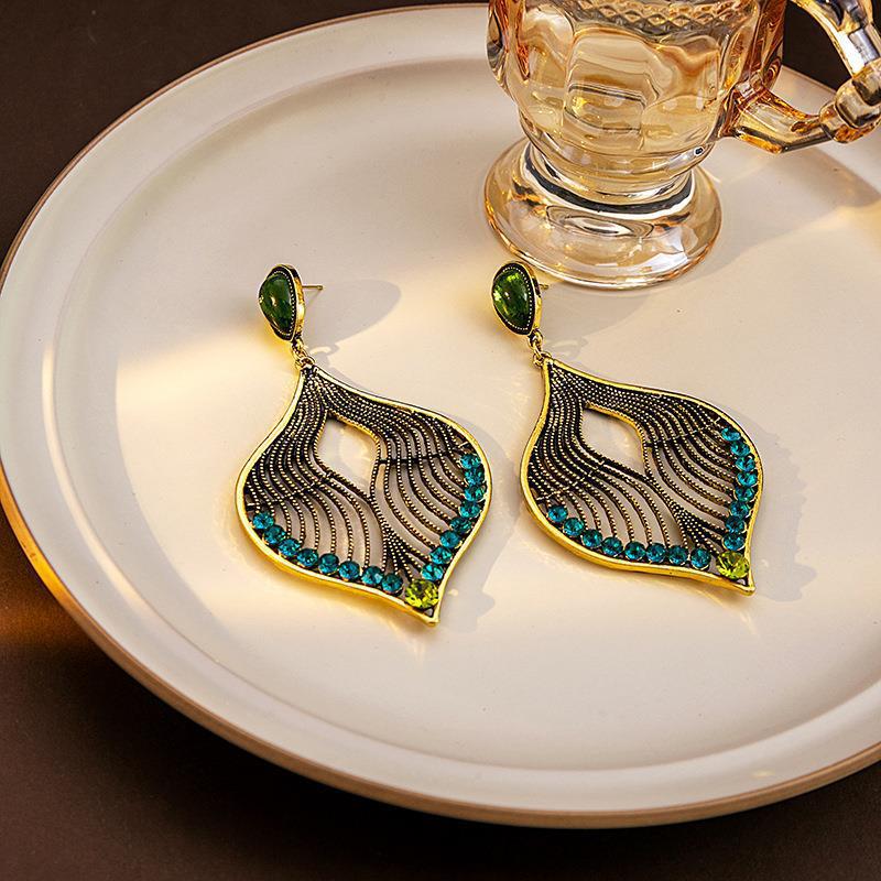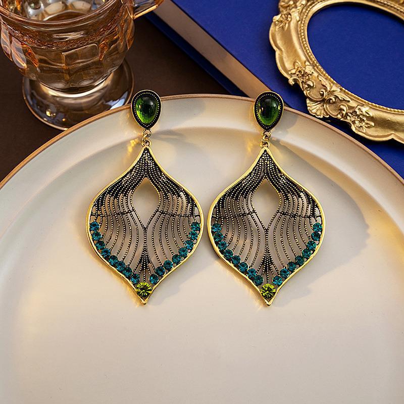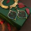 Pendientes colgantes de diamantes antiguos de media aguja de plata, estilo retro, estilo corte, exagerados, huecos, estilo europeo y americano, con hojas distintivas.