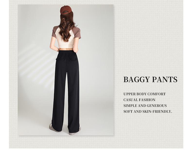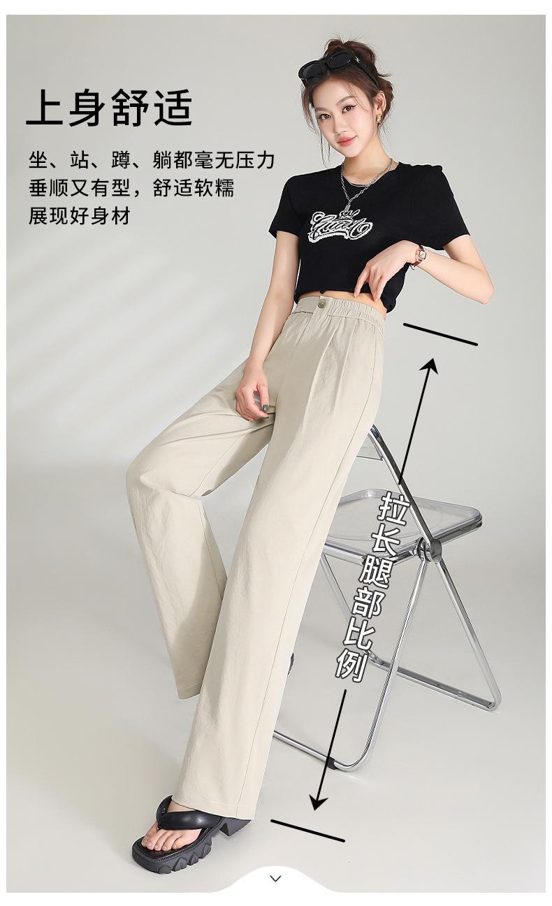 Pantalones anchos con sensación de hielo de primavera y verano para mujer, novedad de 2024, pantalones casuales holgados de cintura alta que adelgazan, pantalones estrechos y rectos de arrastre 2587