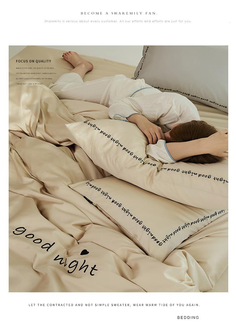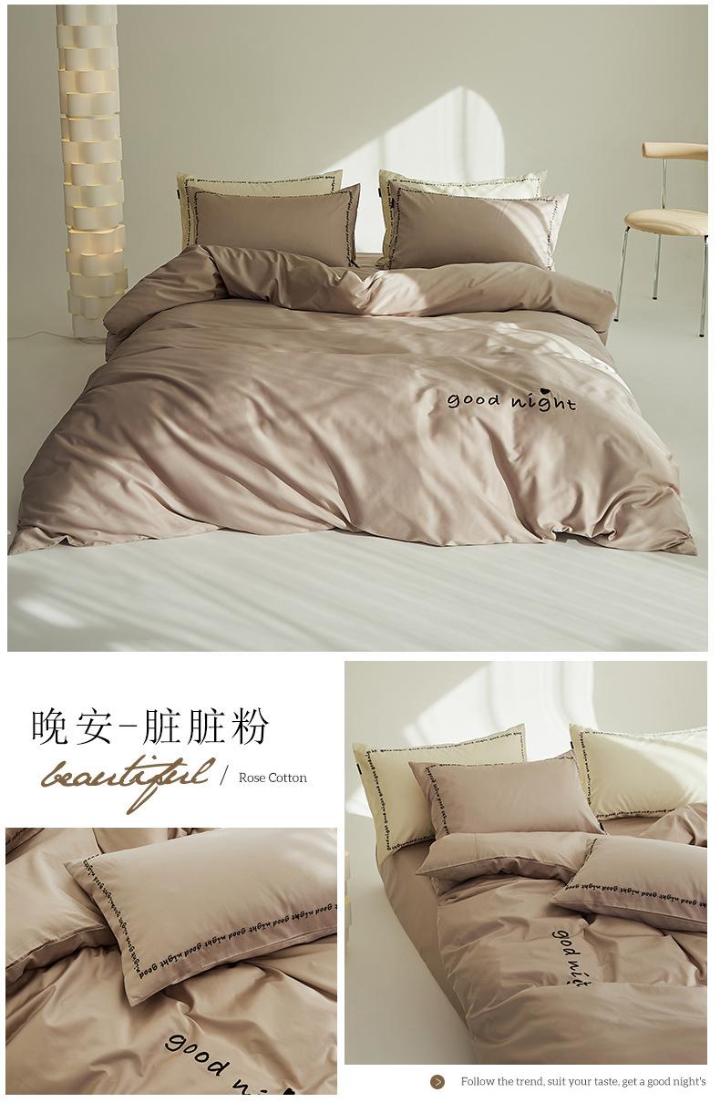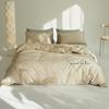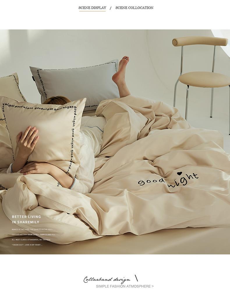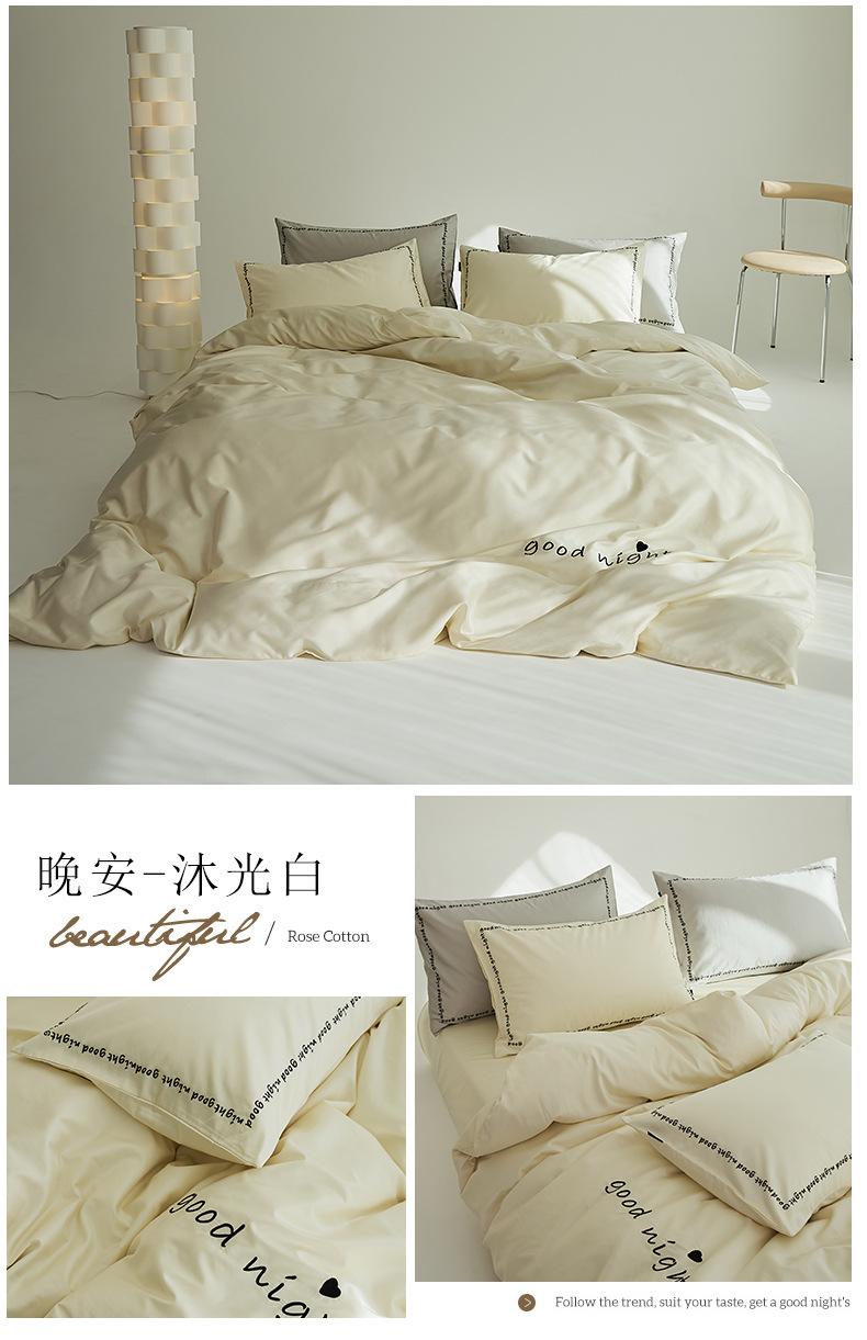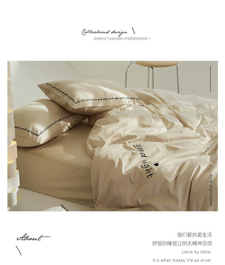 Juego de cama de algodón de cuatro piezas, estilo lujoso y ligero, con bordado de letras, estilo años 40, funda de edredón, estilo cama para dormir desnudo, juego de cuatro piezas