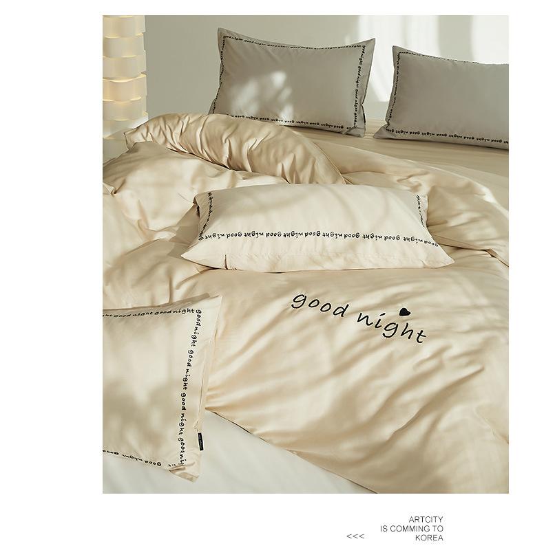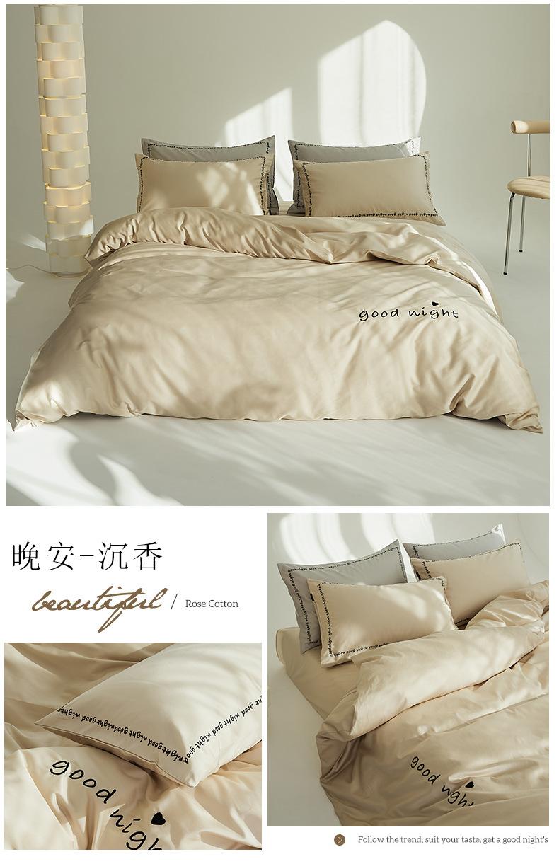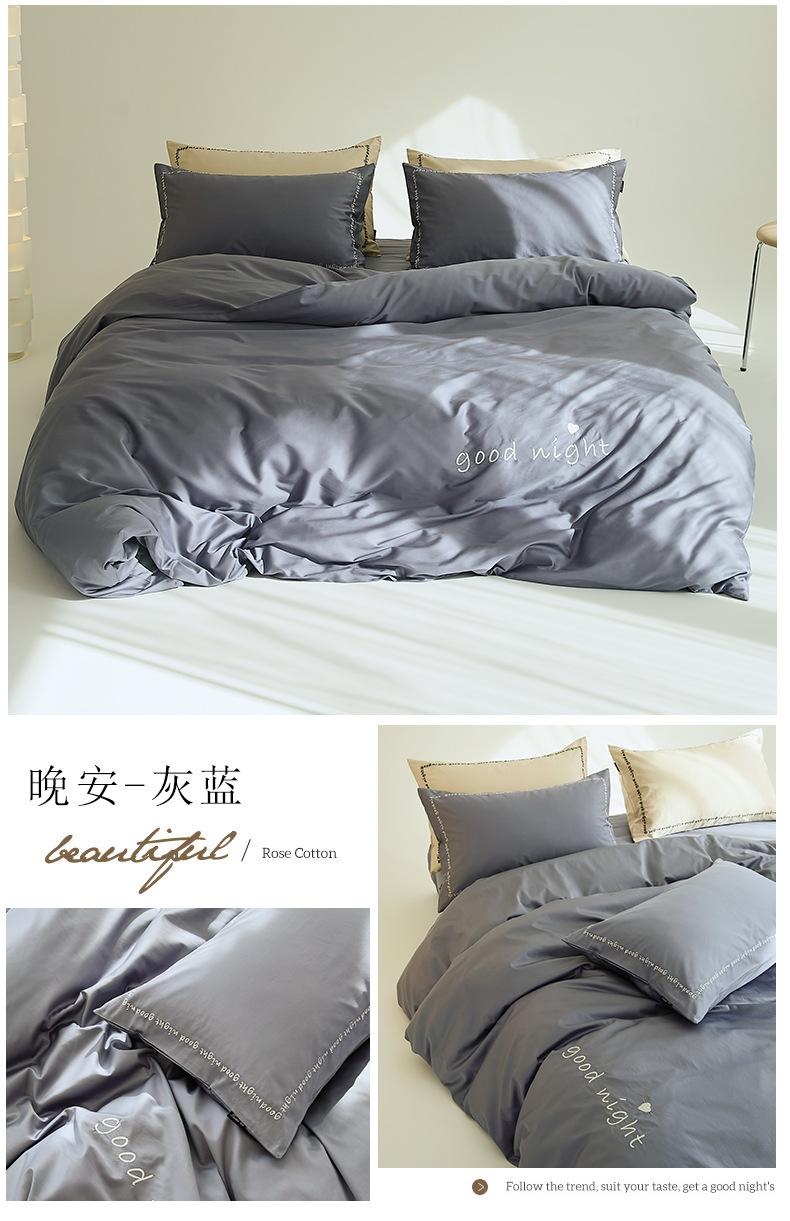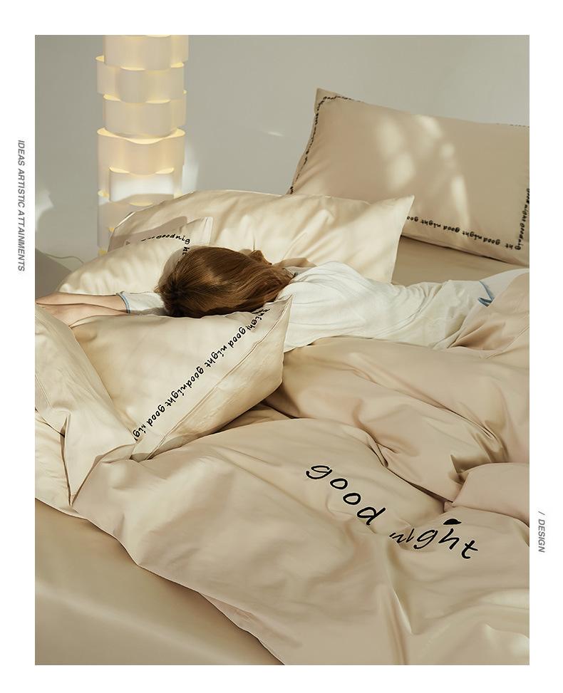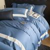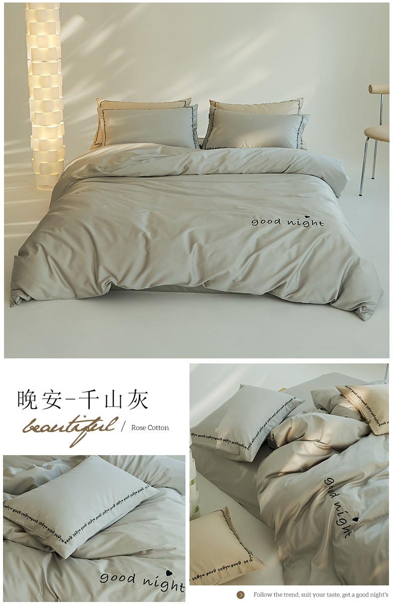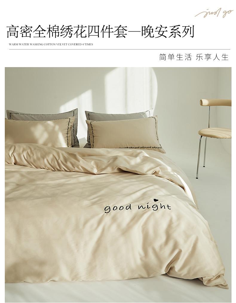 Juego de cama de algodón de cuatro piezas, estilo lujoso y ligero, con bordado de letras, estilo años 40, funda de edredón, estilo cama para dormir desnudo, juego de cuatro piezas