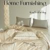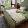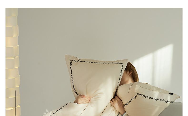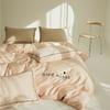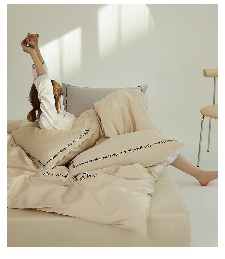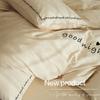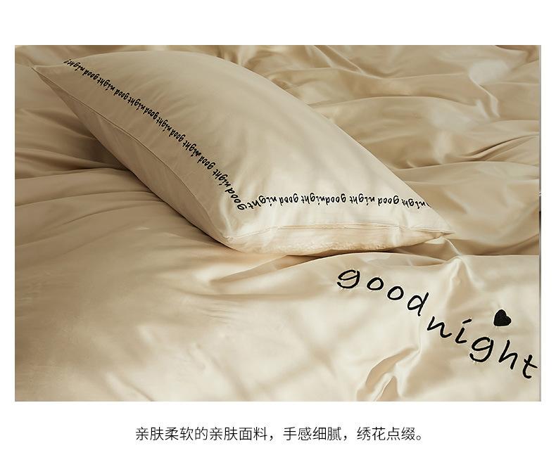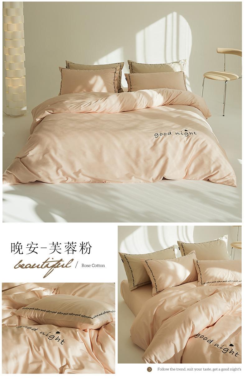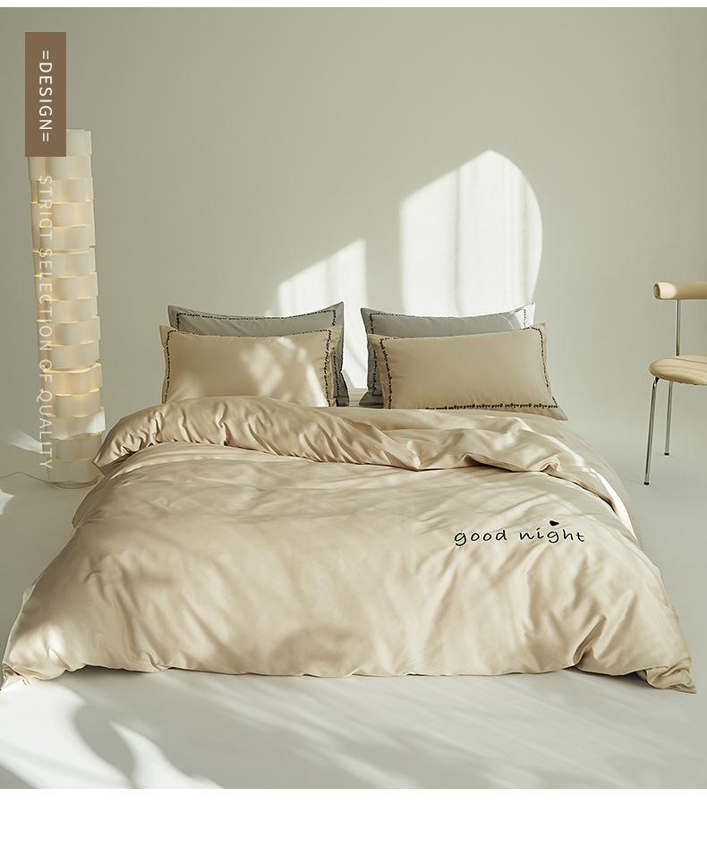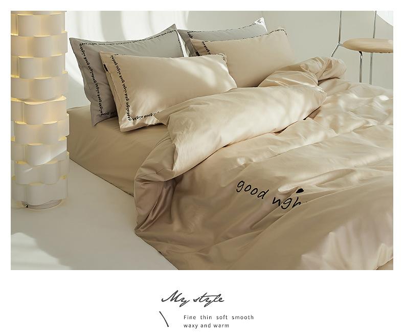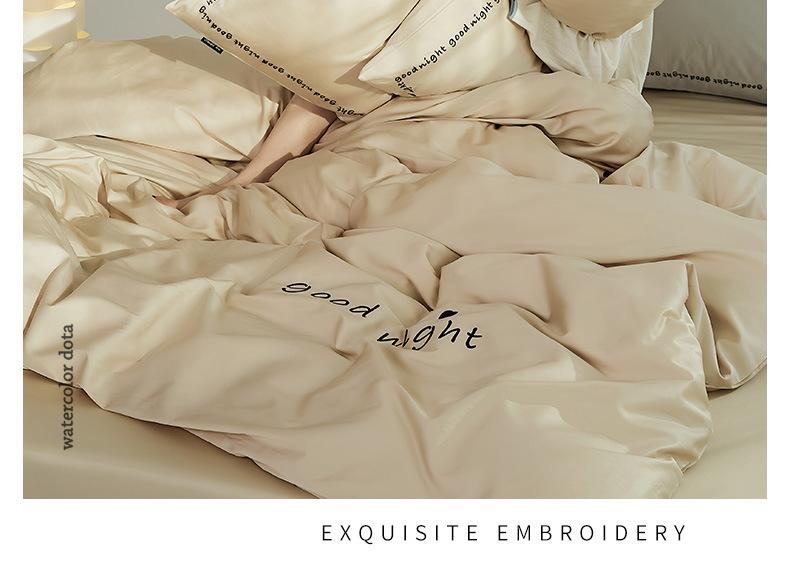 Juego de cama de algodón de cuatro piezas, estilo lujoso y ligero, con bordado de letras, estilo años 40, funda de edredón, estilo cama para dormir desnudo, juego de cuatro piezas