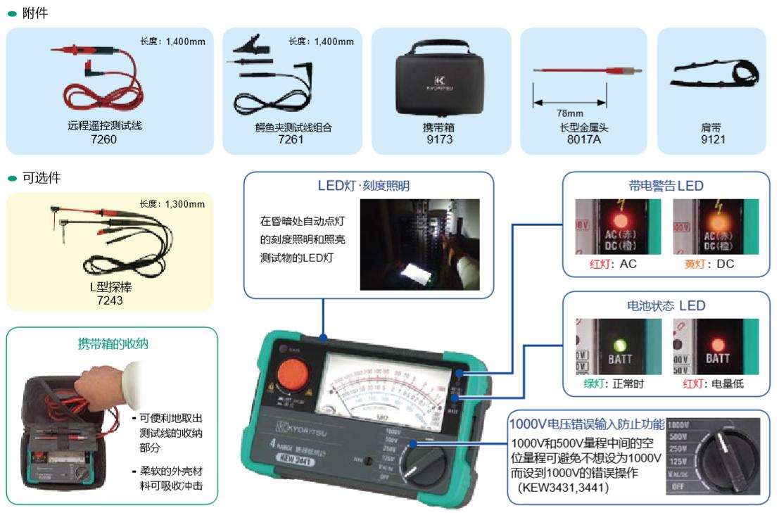 • Cables de prueba para conmutación de prueba remota y un estuche de transporte simple para extracción/almacenamiento.