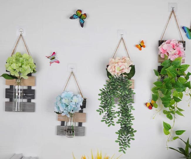 Planta verde artificial colgante de Amazon, simulación de hoja de Sophora japonica, colgante de pared de ratán, planta verde protectora, rosa verde, decoración colgante de pared