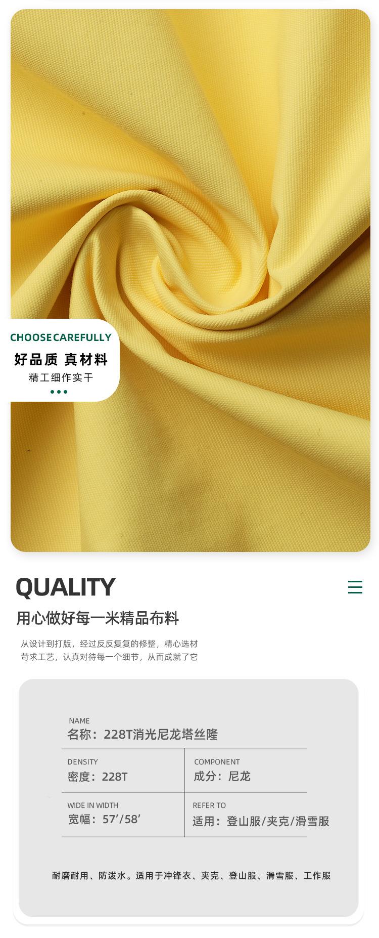 Chaqueta de esquí Taslon elástica de cuatro lados de nailon mate 228T, traje de montañismo, tela impermeable