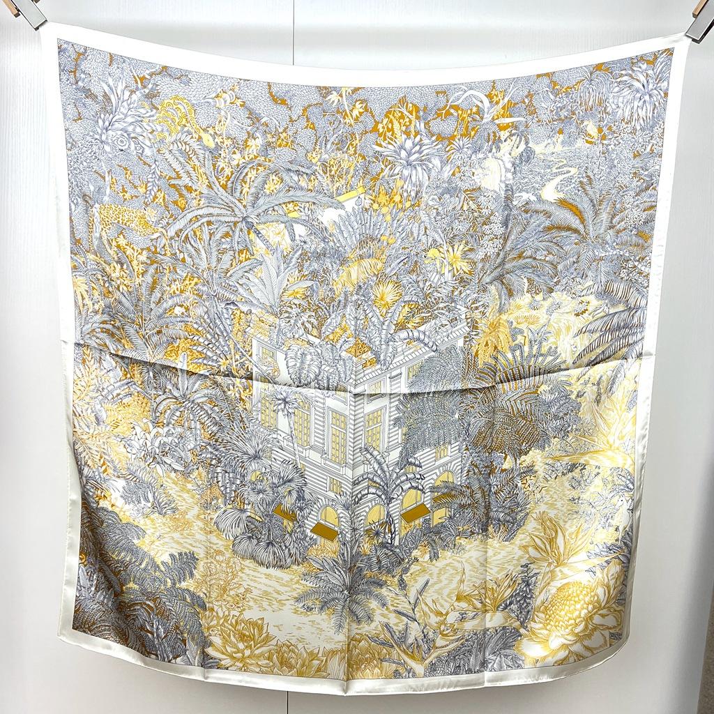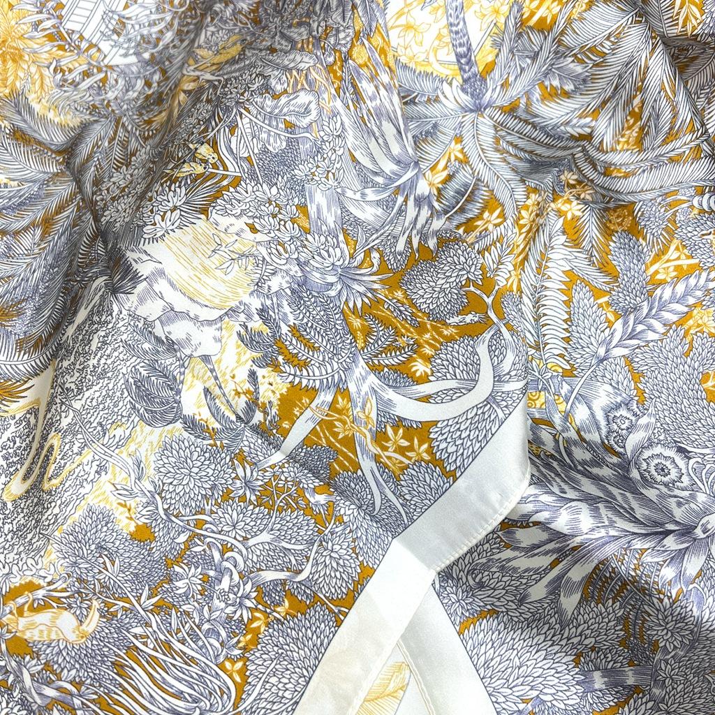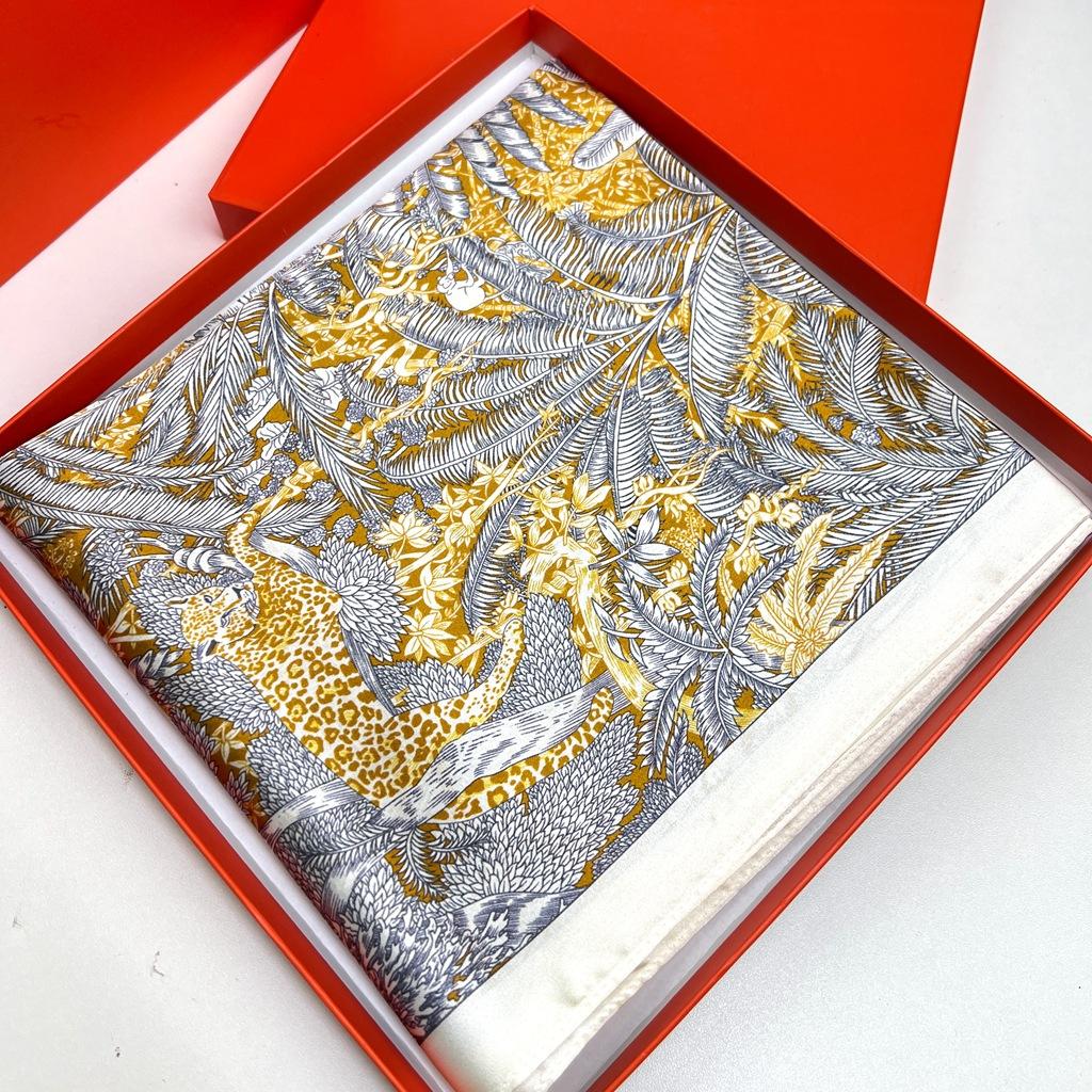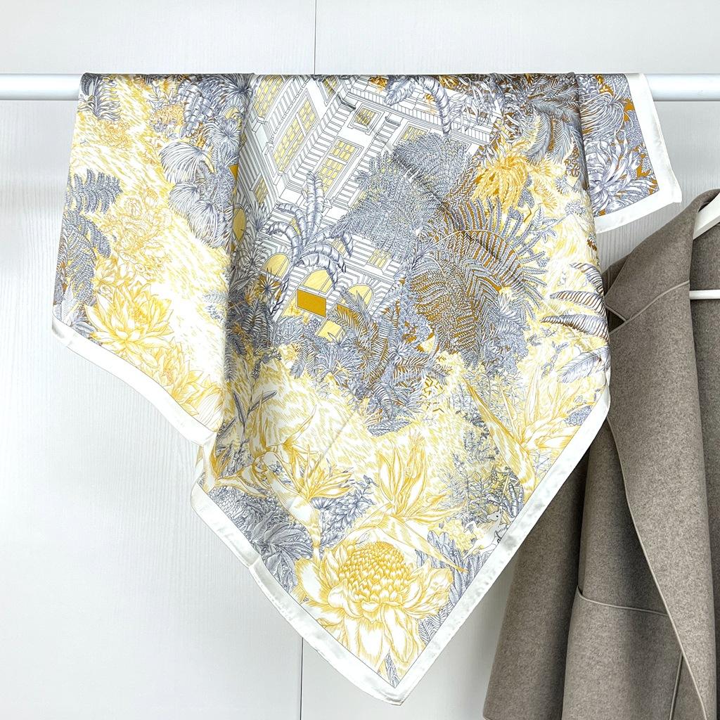 Bufanda cuadrada grande de seda 100 % para mujer, primavera y otoño, estilo occidental, moda de seda morera, color beige y blanco, 90 cm, chal de invierno