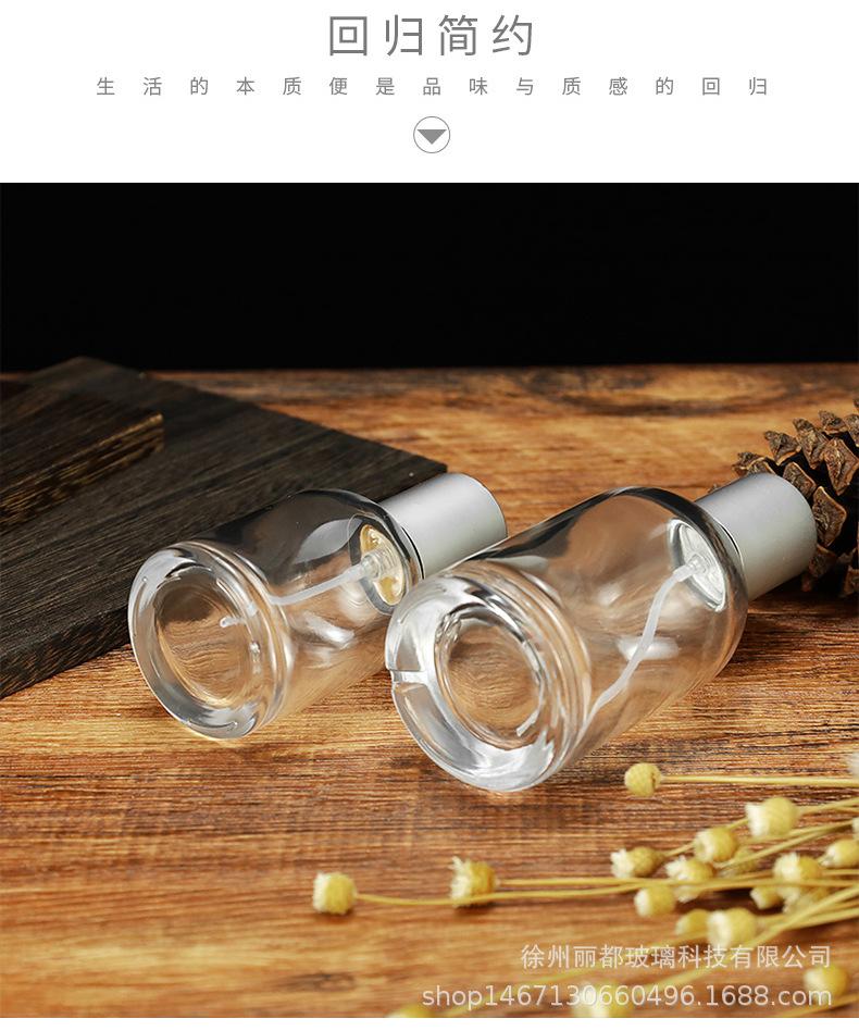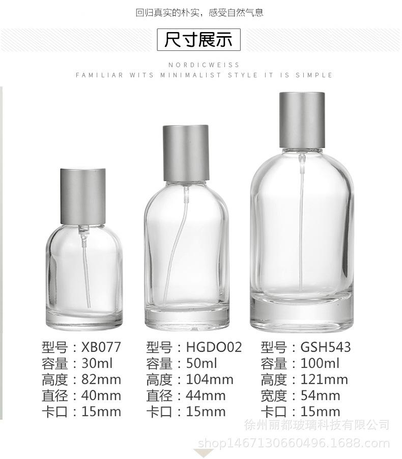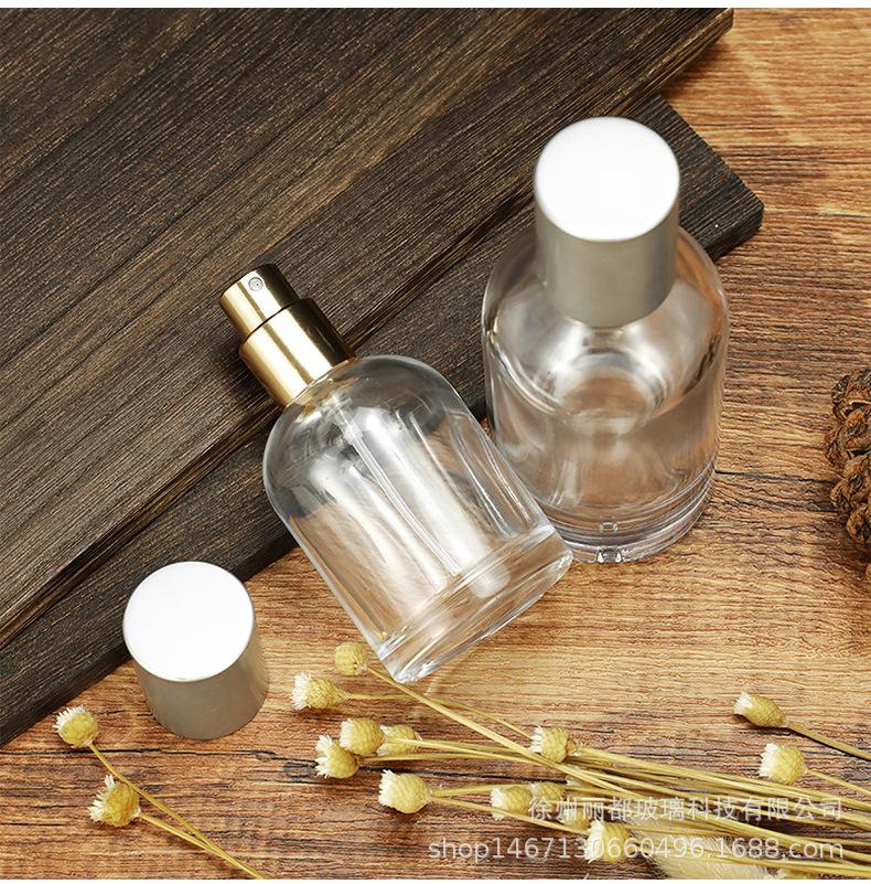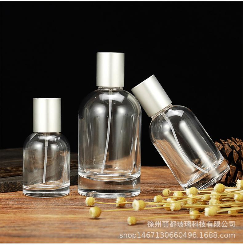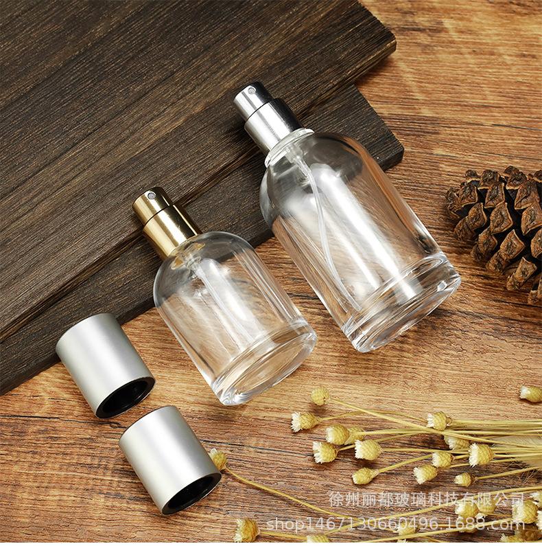 Botella de perfume al por mayor, botella de vidrio de 30 ml y 50 ml, botella hidratante transparente con bayoneta, botella vacía con atomizador, 100 unidades